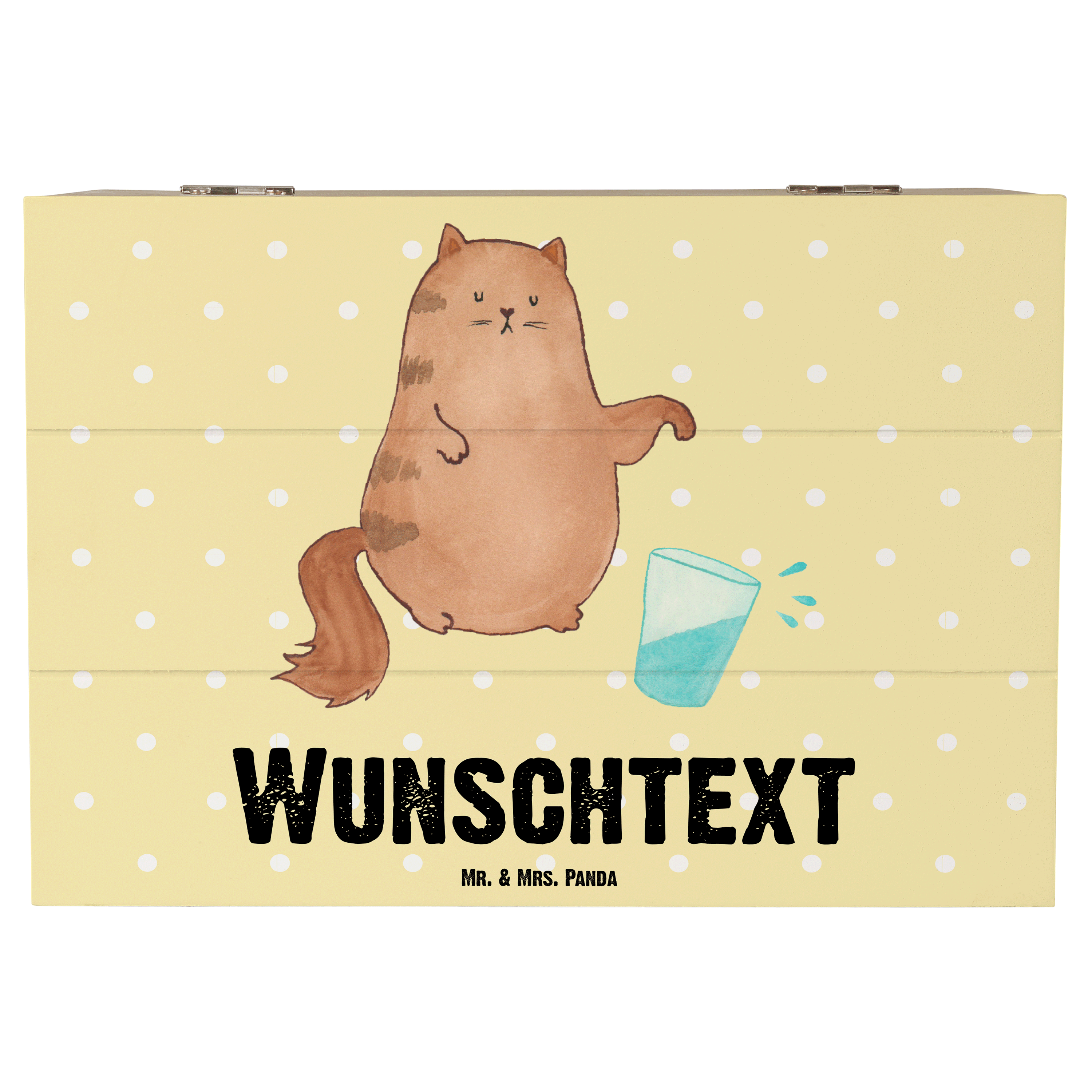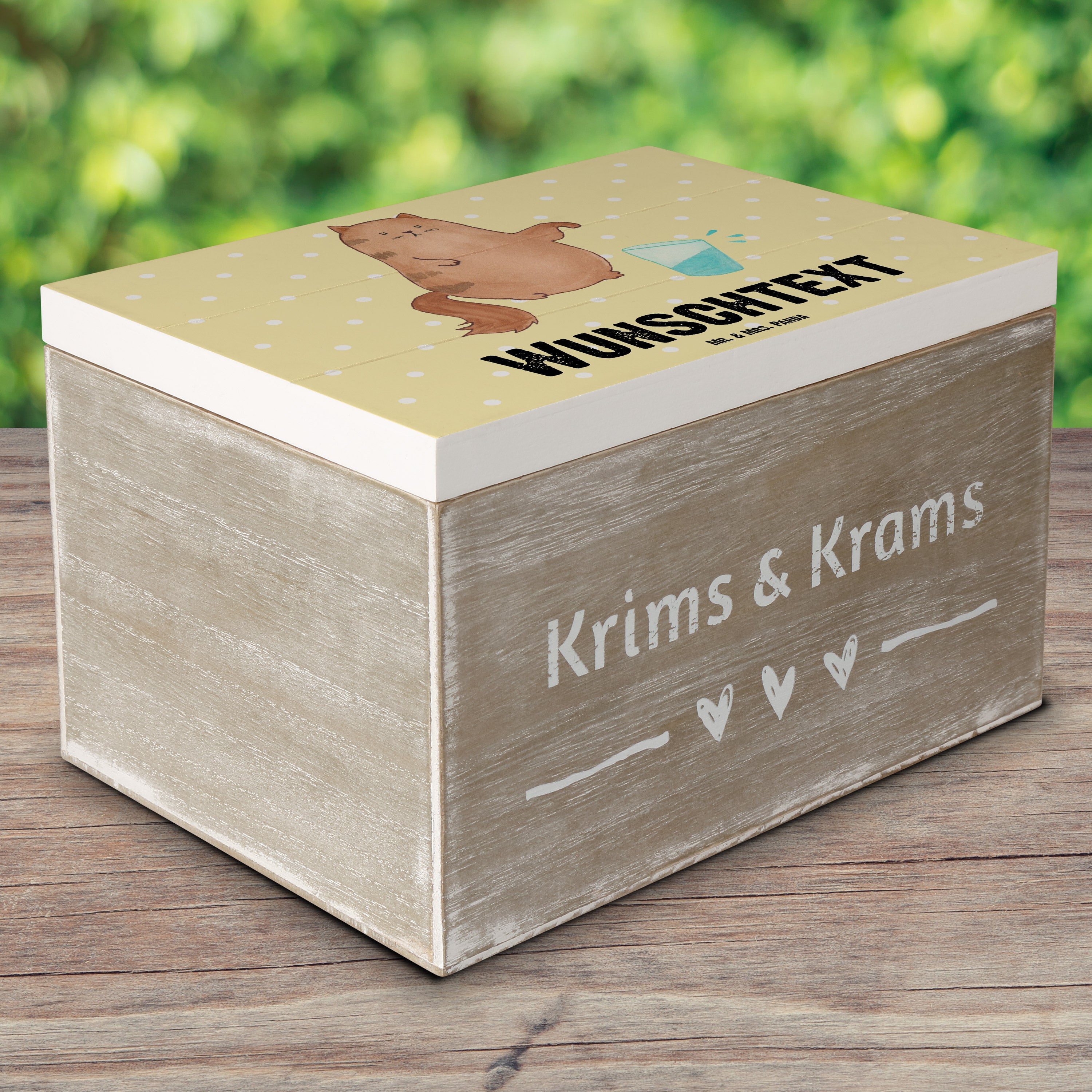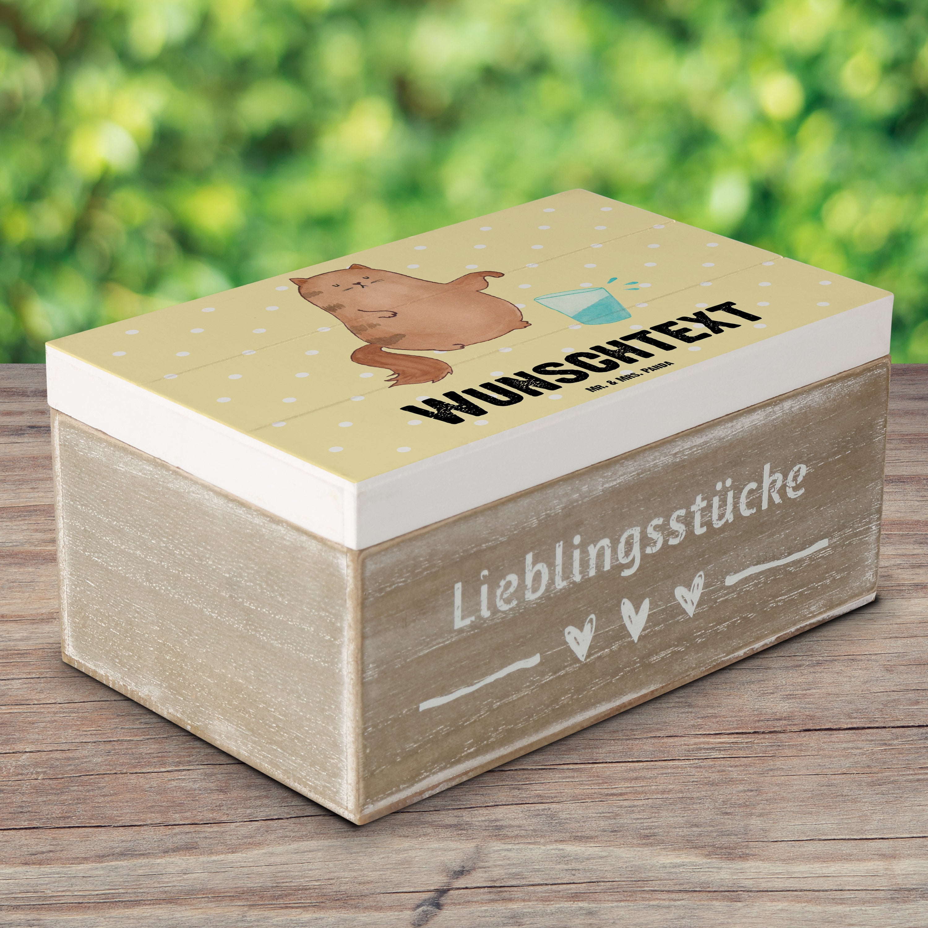 Personalisierte Holzkiste Katze Wasserglas - Weiß - 19 x 12 cm
