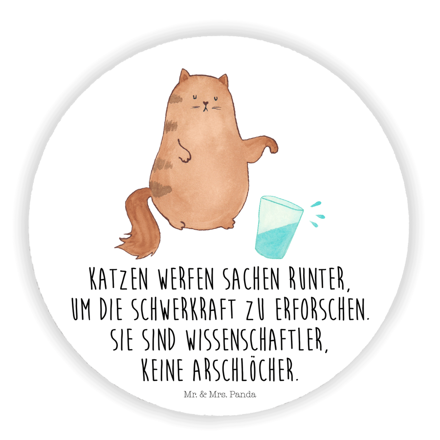 Rund Magnet Katze Wasserglas - mit Spruch - Weiß