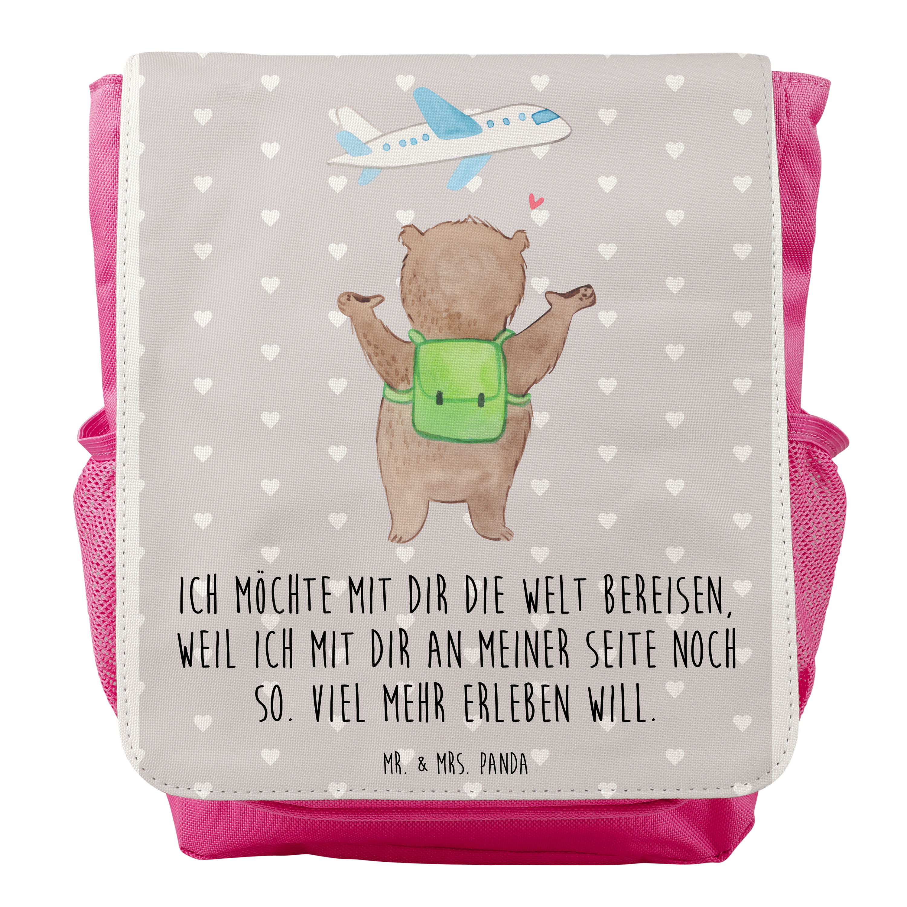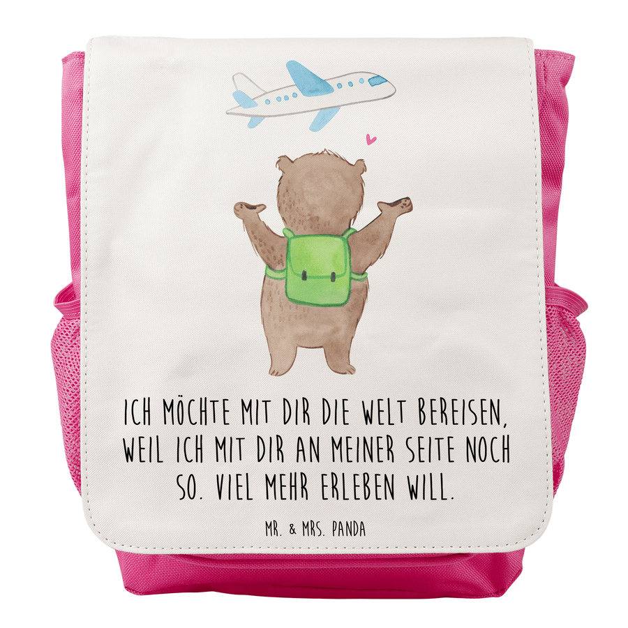 Kinderrucksack Bär Flugzeug - mit Spruch - Weiß