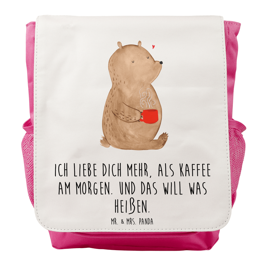 Kinderrucksack Bär Morgenkaffee - mit Spruch - Weiß