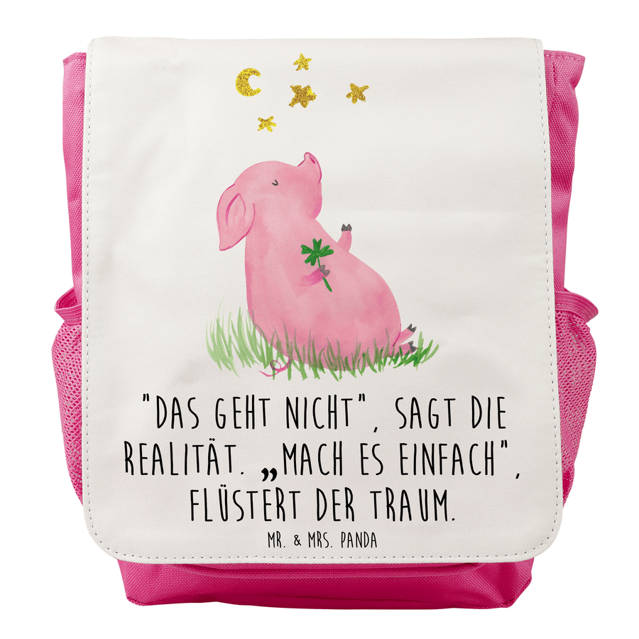 Kinderrucksack Glücksschwein - Mädchen - mit Spruch - Weiß