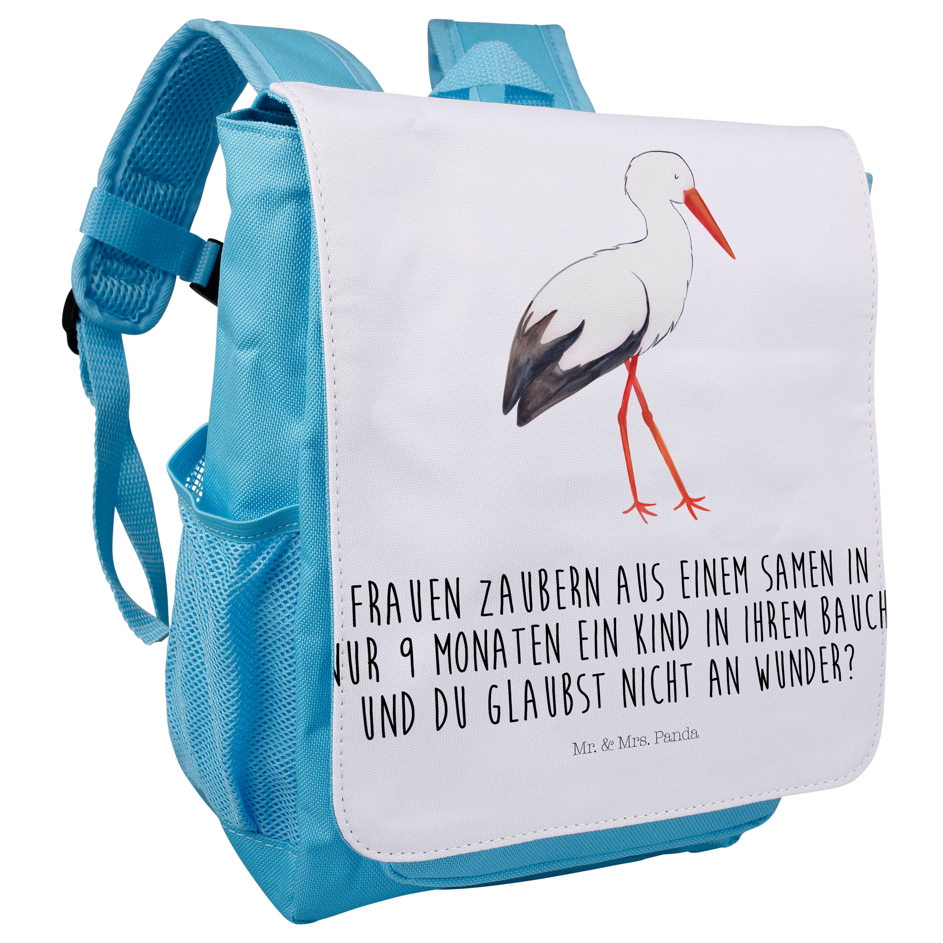 Kinderrucksack Storch - Jungen - mit Spruch - Weiß