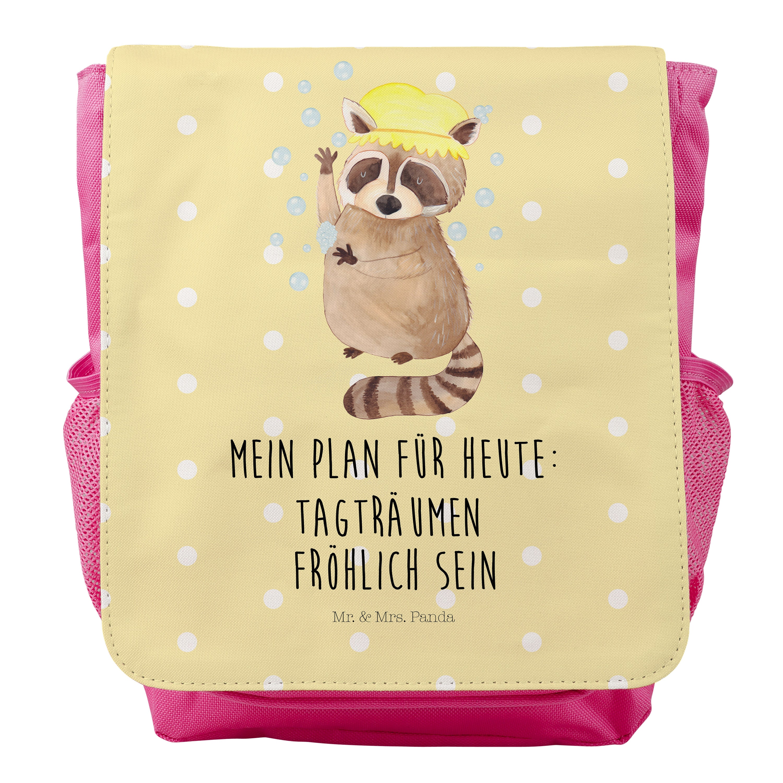 Kinderrucksack Waschbär - Gelb Pastell - mit Spruch