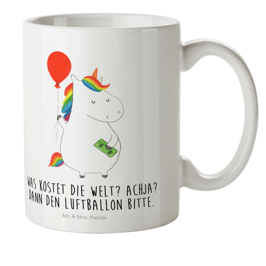 Kindertasse Einhorn Luftballon - mit Spruch - Weiß