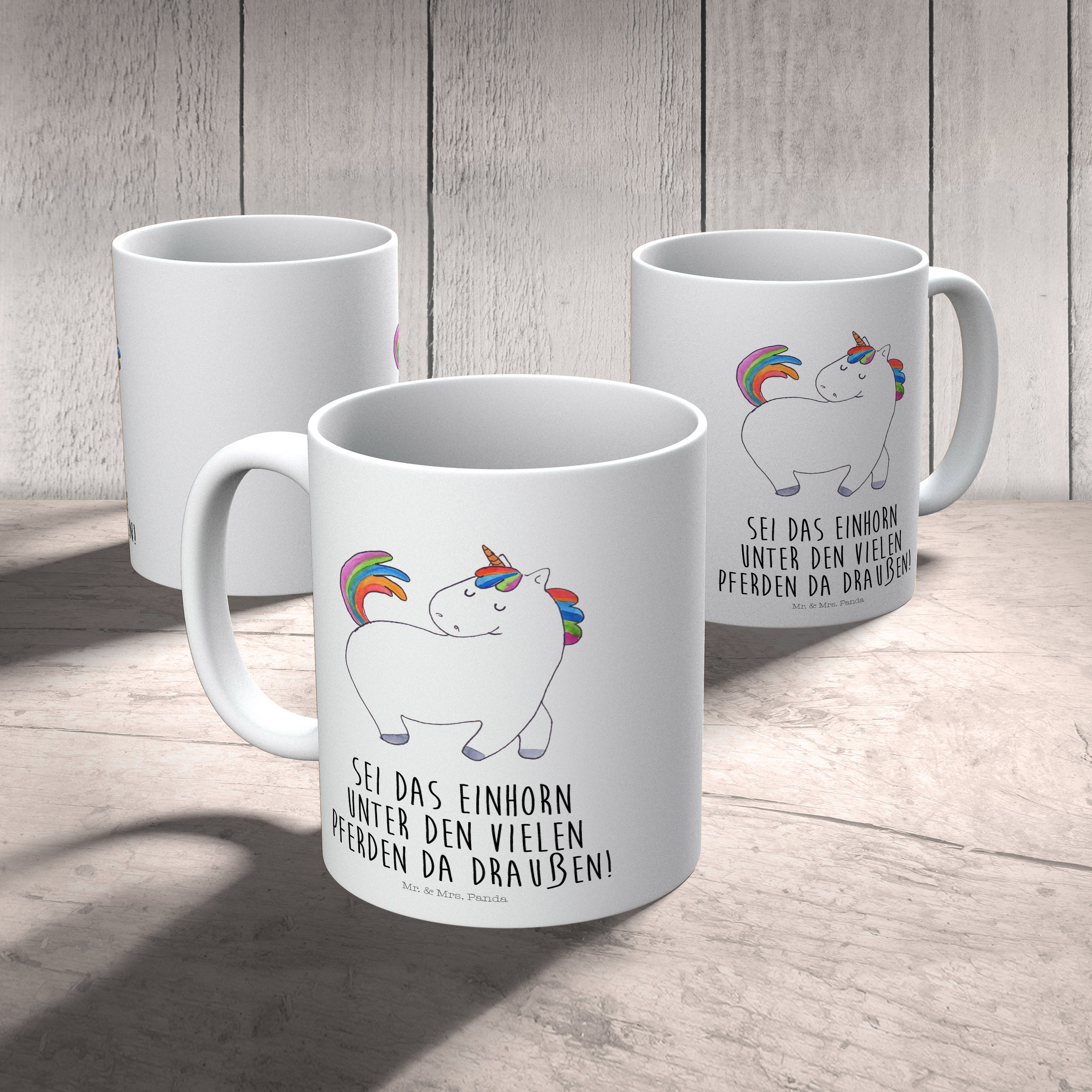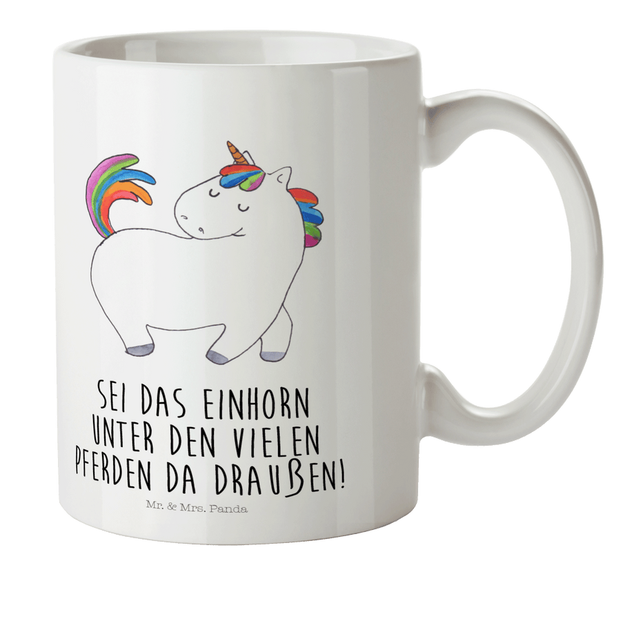 Kindertasse Einhorn stolzierend - mit Spruch - Weiß