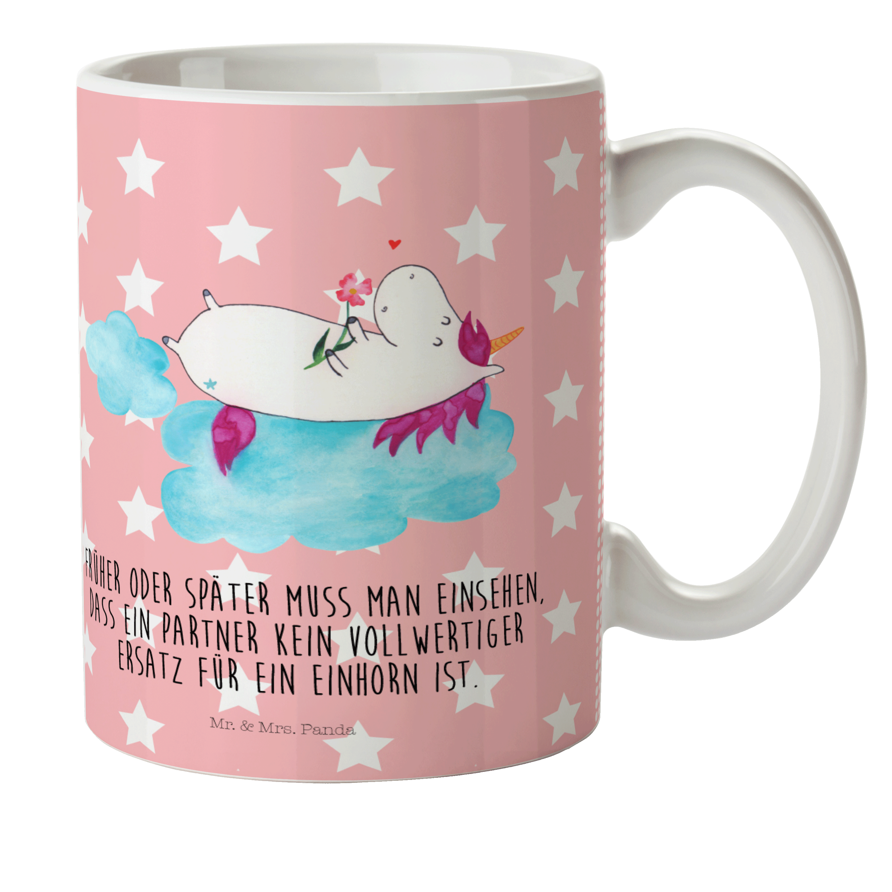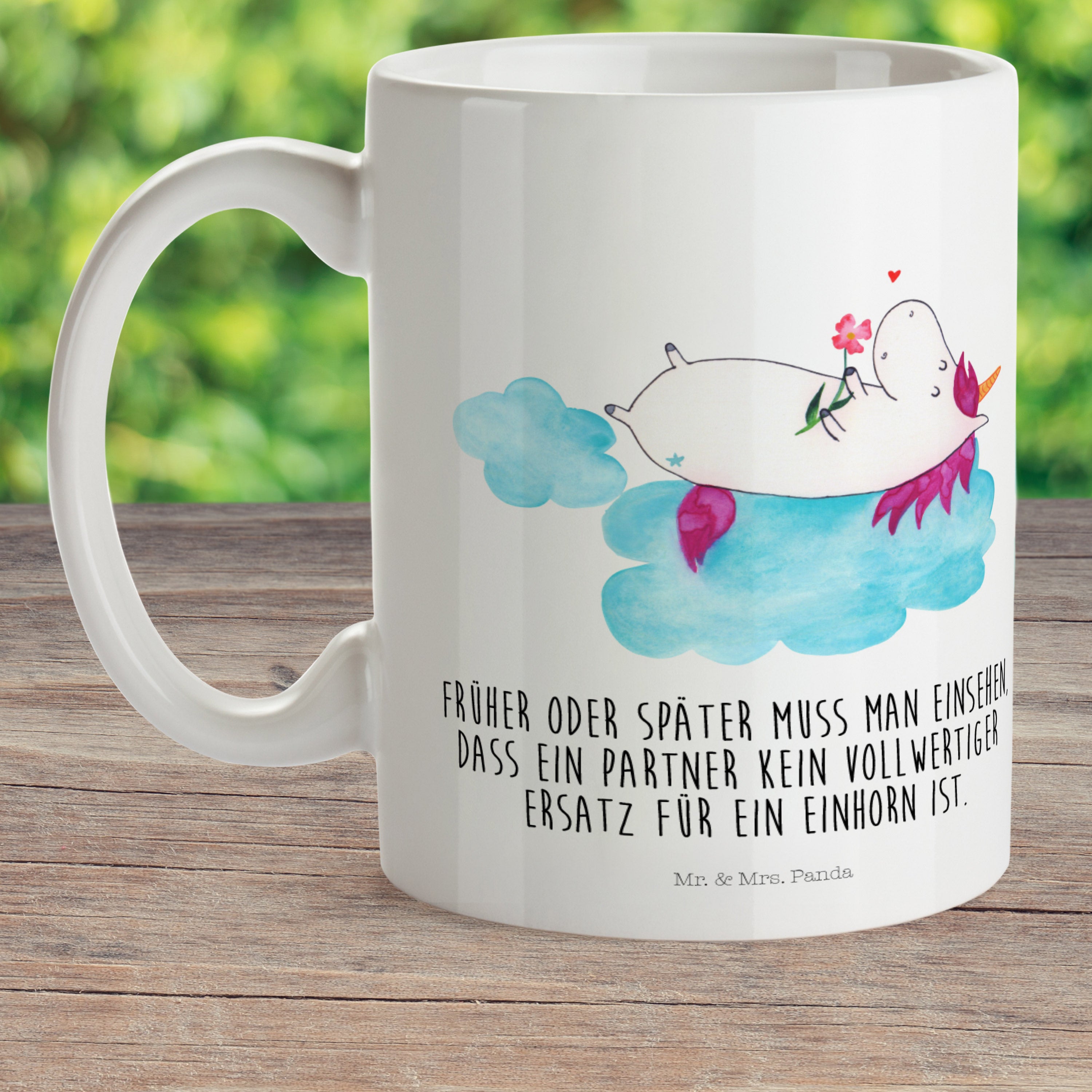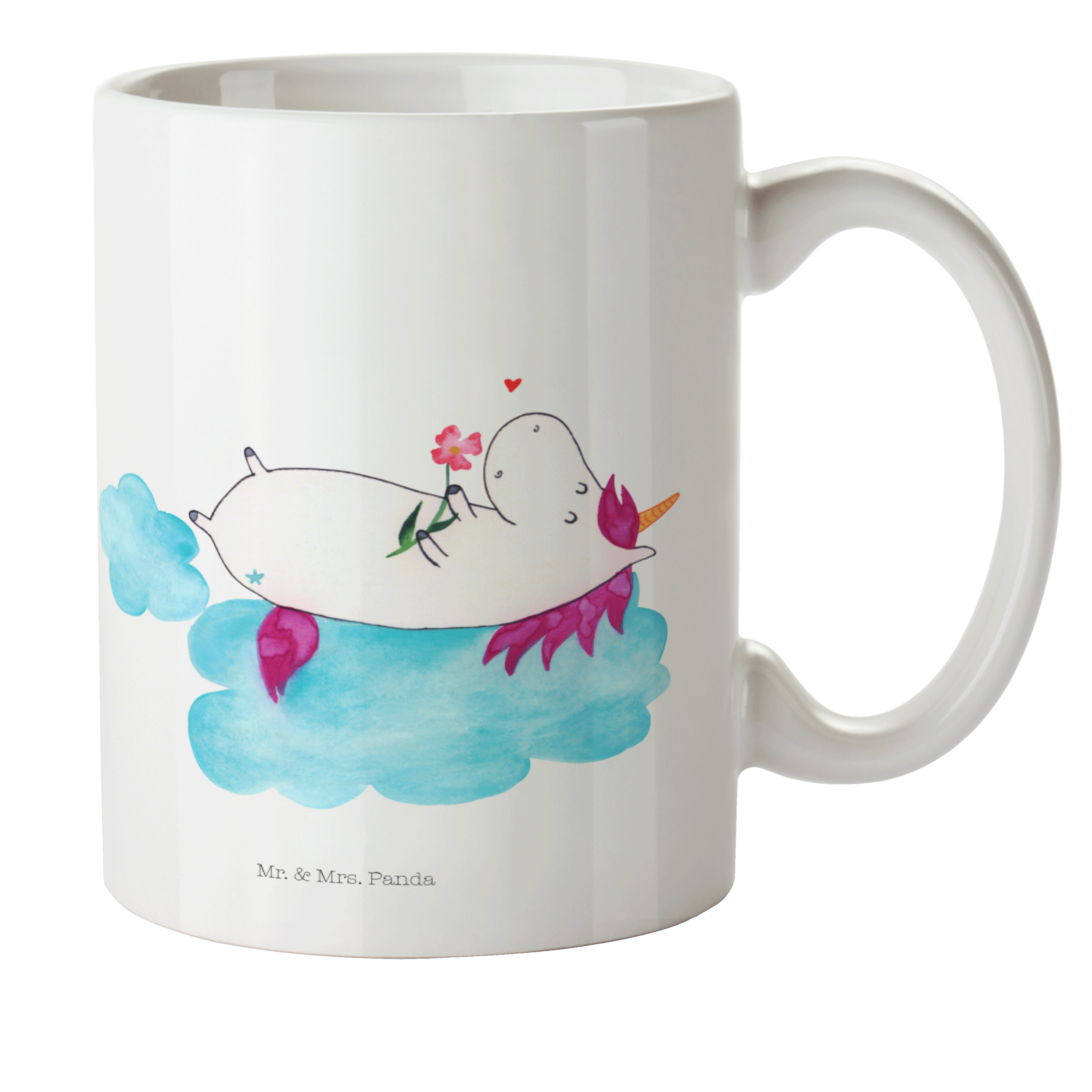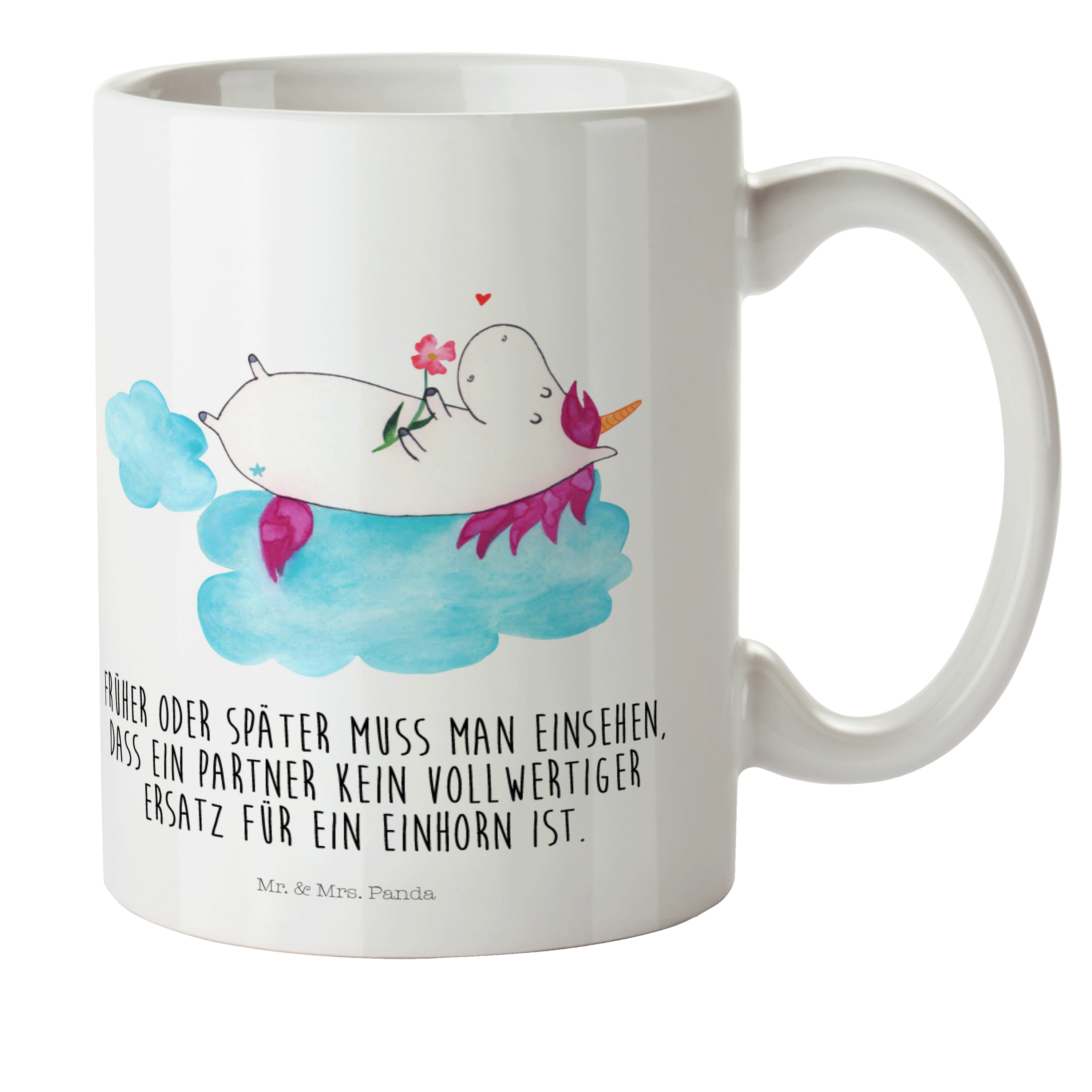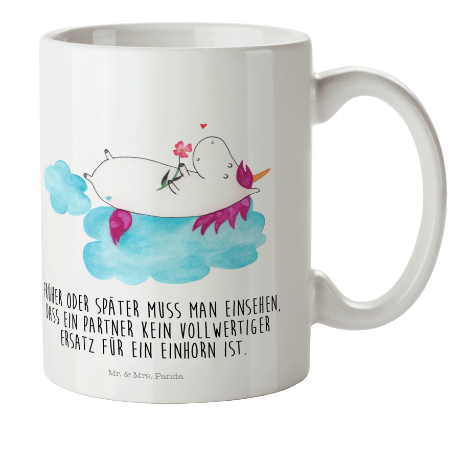 Kindertasse Einhorn verliebt auf Wolke - mit Spruch - Weiß