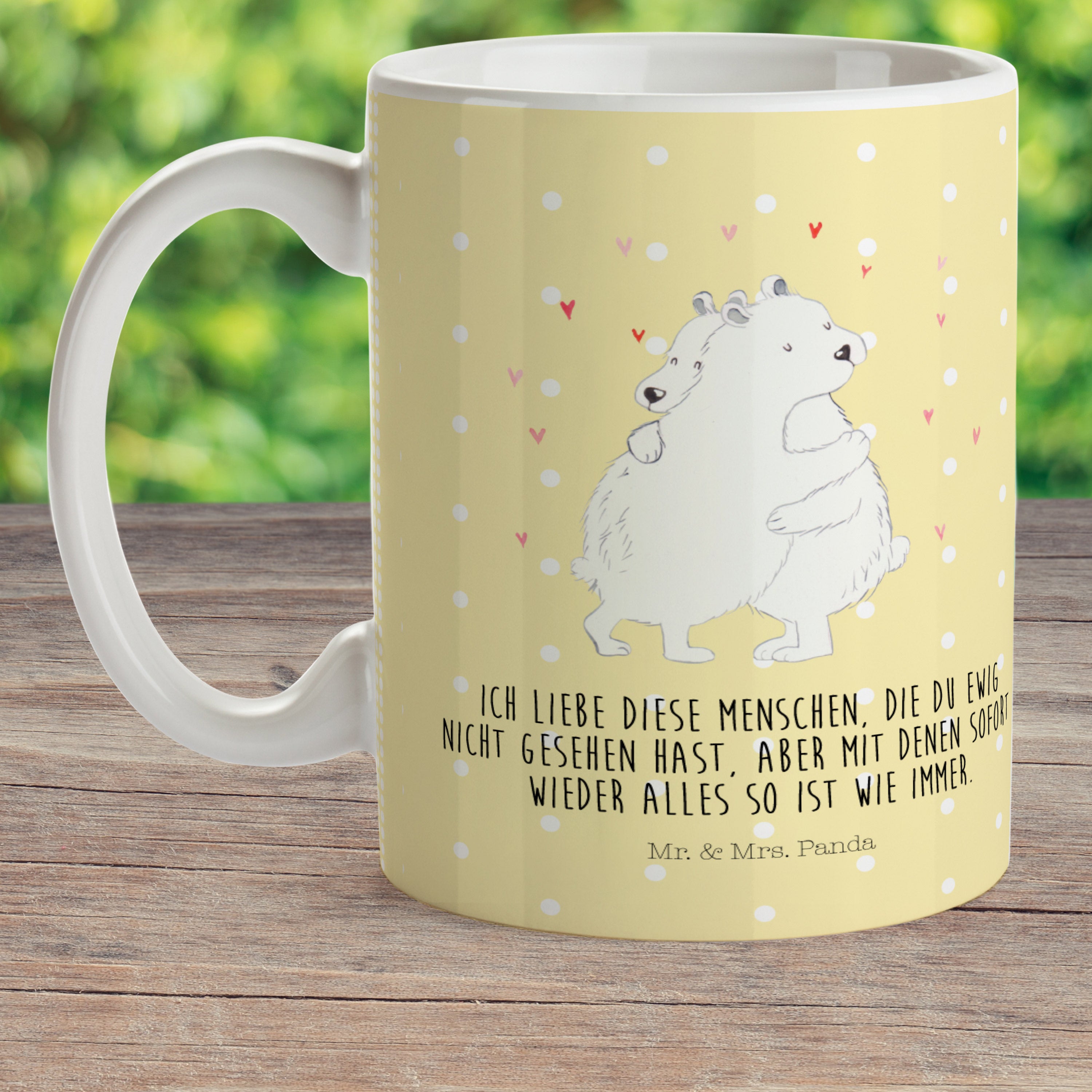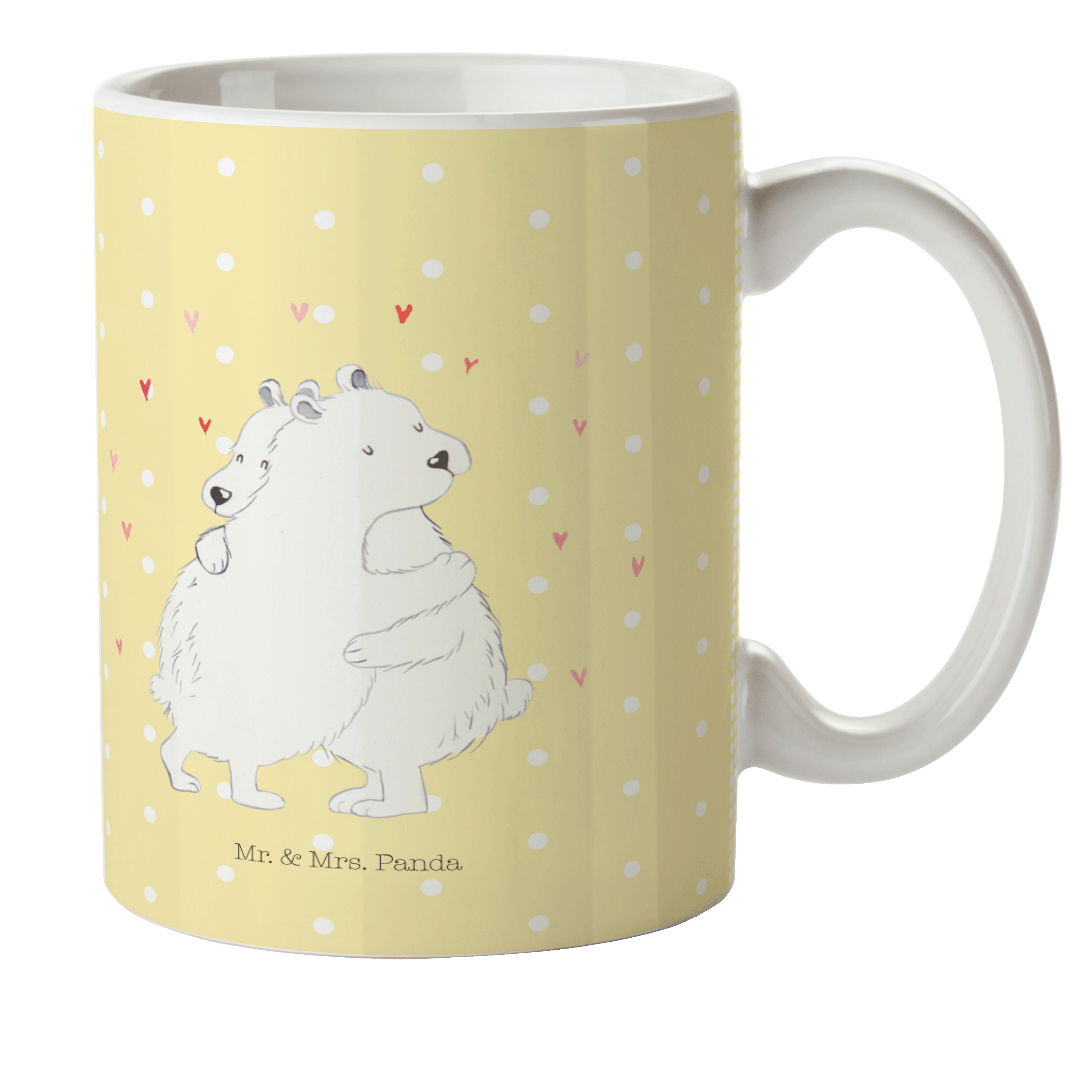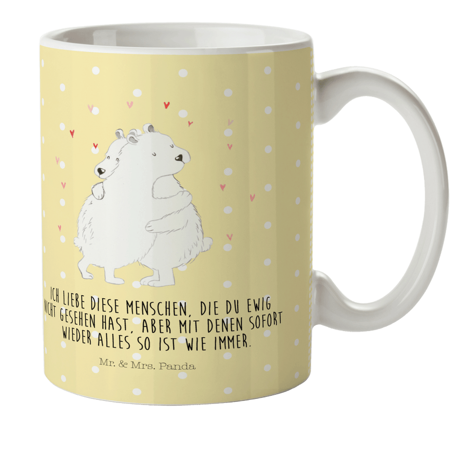 Kindertasse Eisbär Umarmen - mit Spruch - Gelb Pastell
