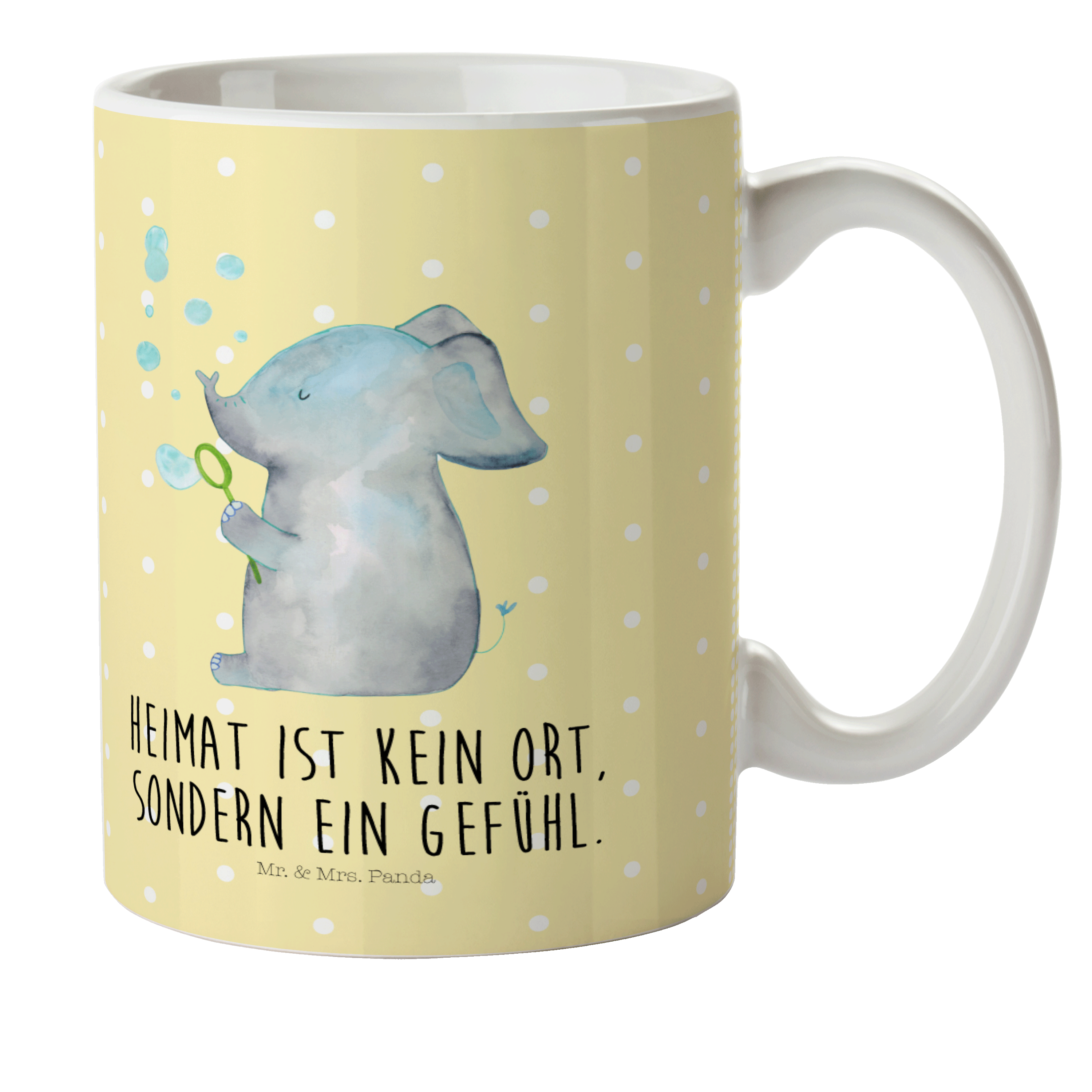 Kindertasse Elefant Seifenblasen - mit Spruch - Gelb Pastell