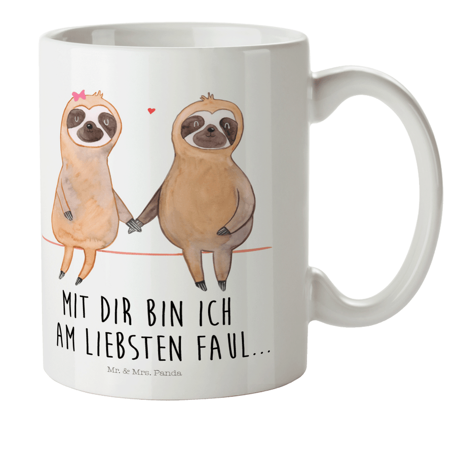 Kindertasse Faultier Pärchen - mit Spruch - Weiß