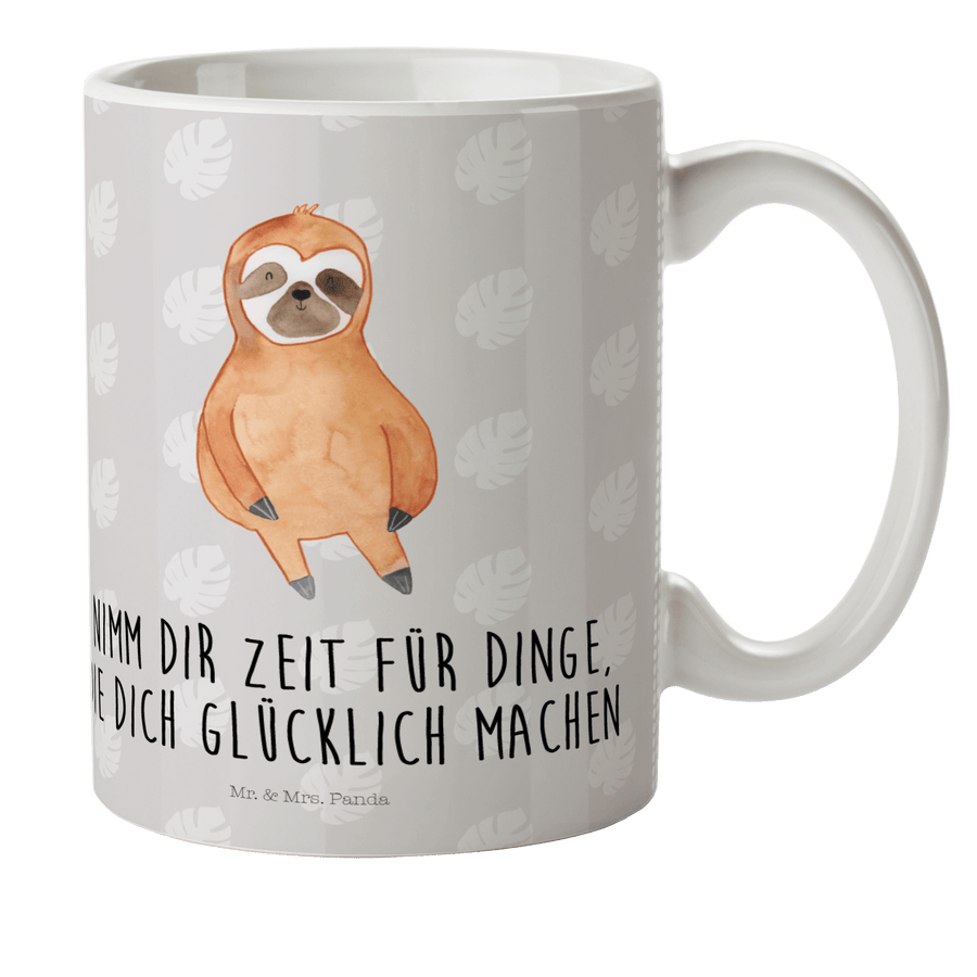 Kindertasse Faultier Zufrieden - mit Spruch - Grau Pastell