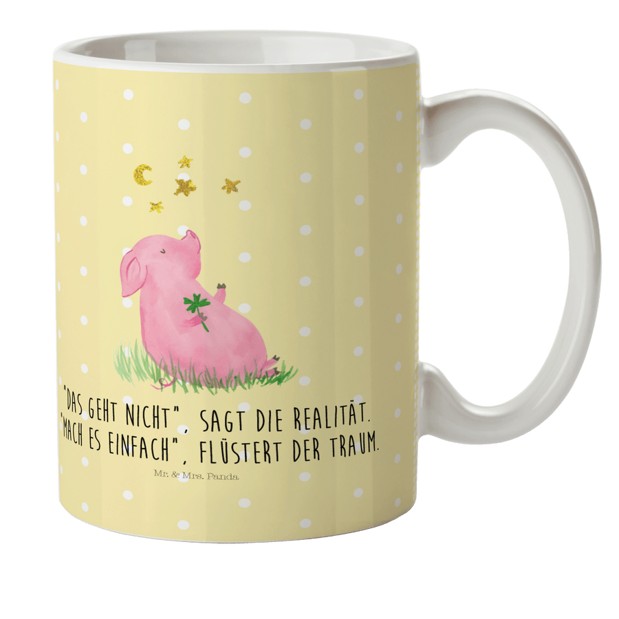 Kindertasse Glücksschwein - mit Spruch - Gelb Pastell