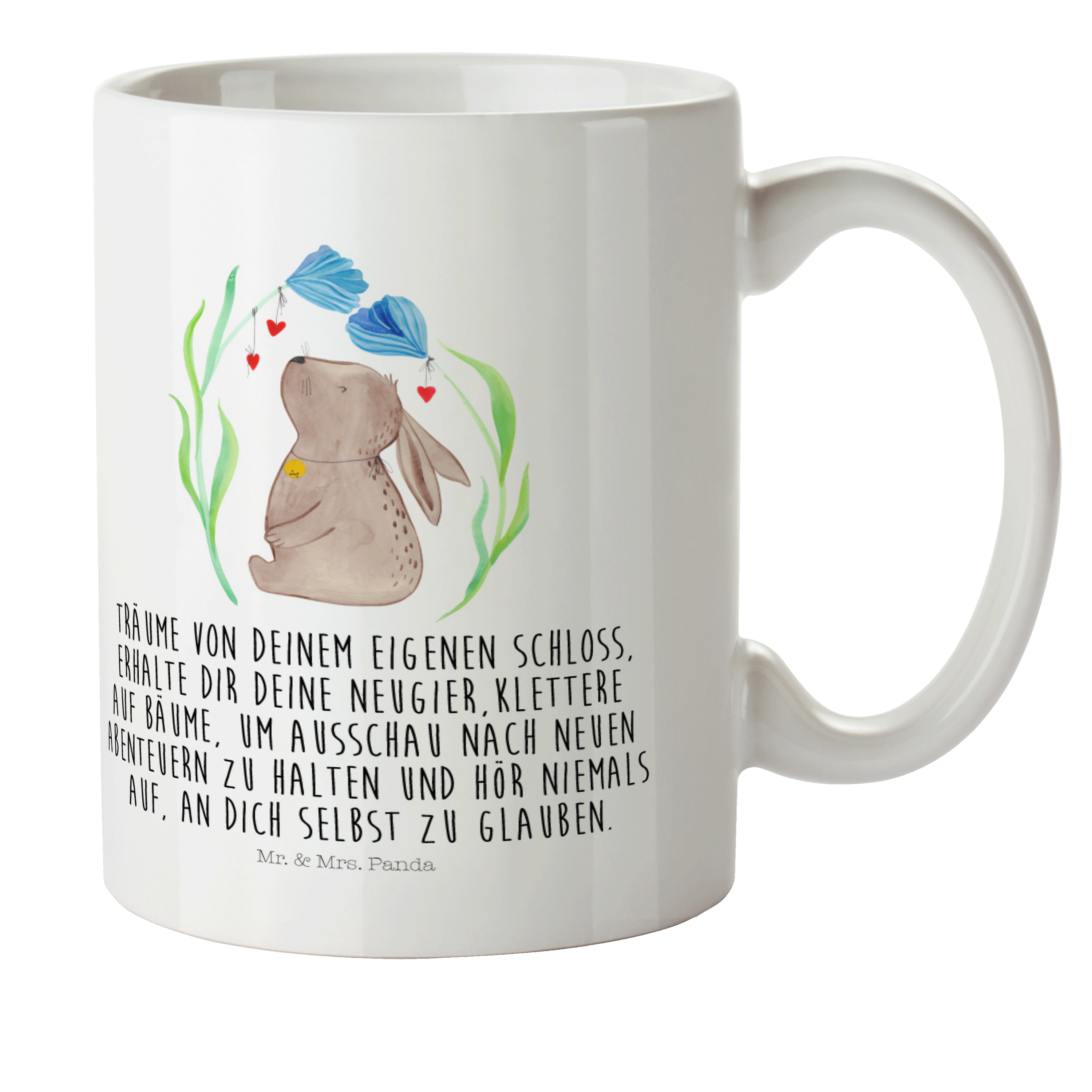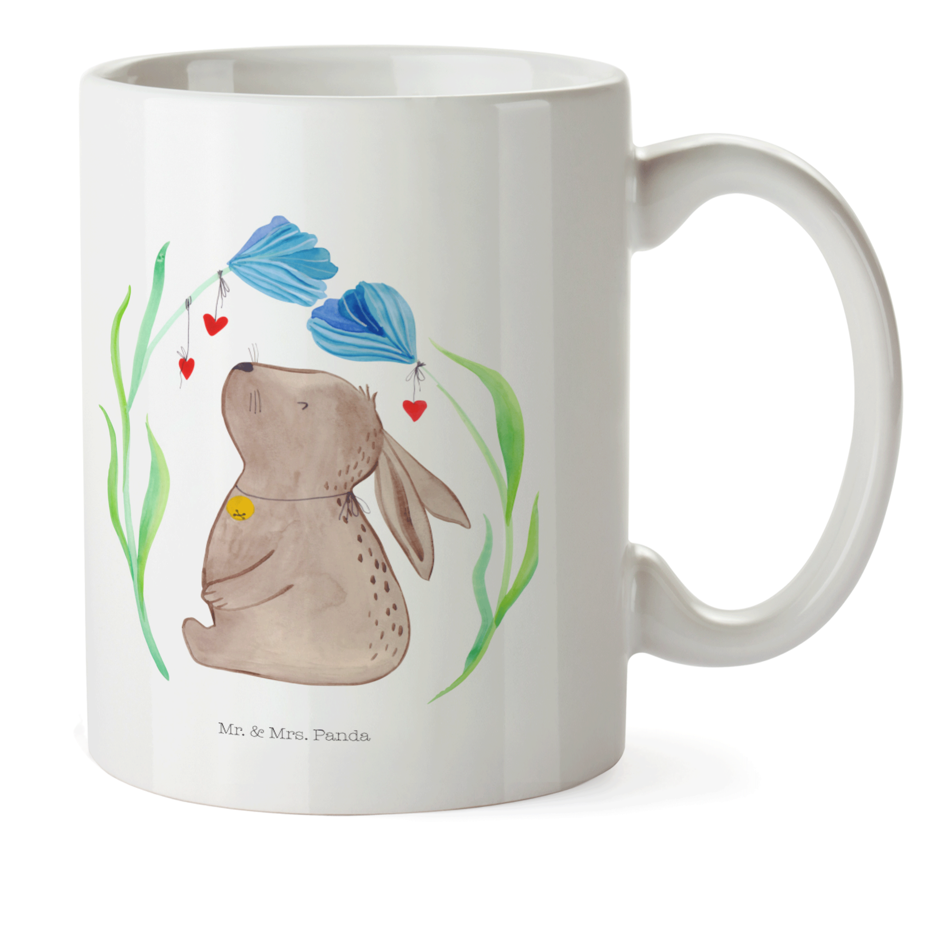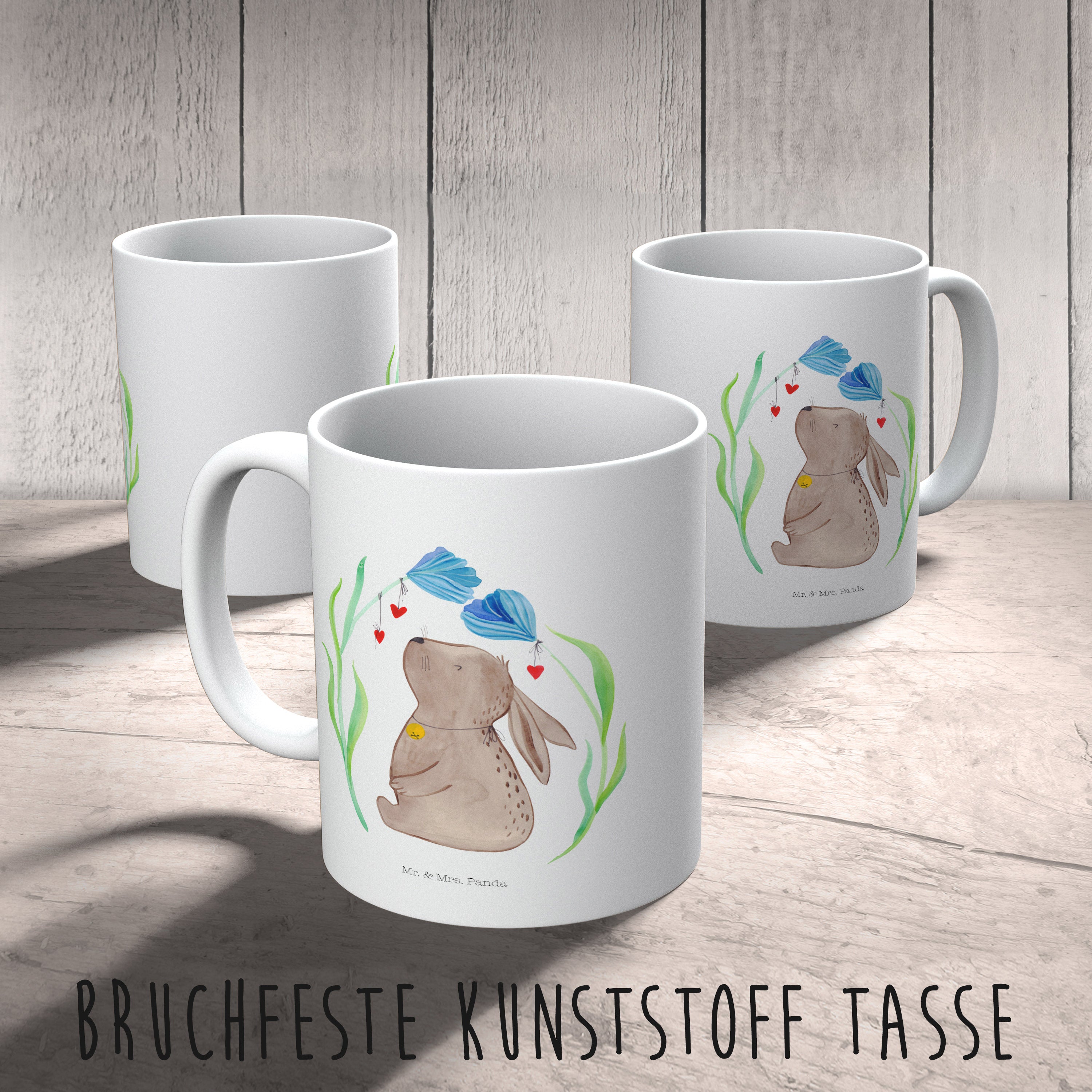 Glöckchenklingelnd hüpft Hase Blume durch die bunten Blumenwiesen. Ob zum Frühlingserwachen oder als Oster-Dekoration - mit ihm holst du dir eine fröhliche Stimmung in dein Zuhause. Das Motiv von Mr. & Mrs. Panda inspiriert dich bei jeder Betrachtung dazu, deine unbeschwerte und verspielte Seite zu zeigen.