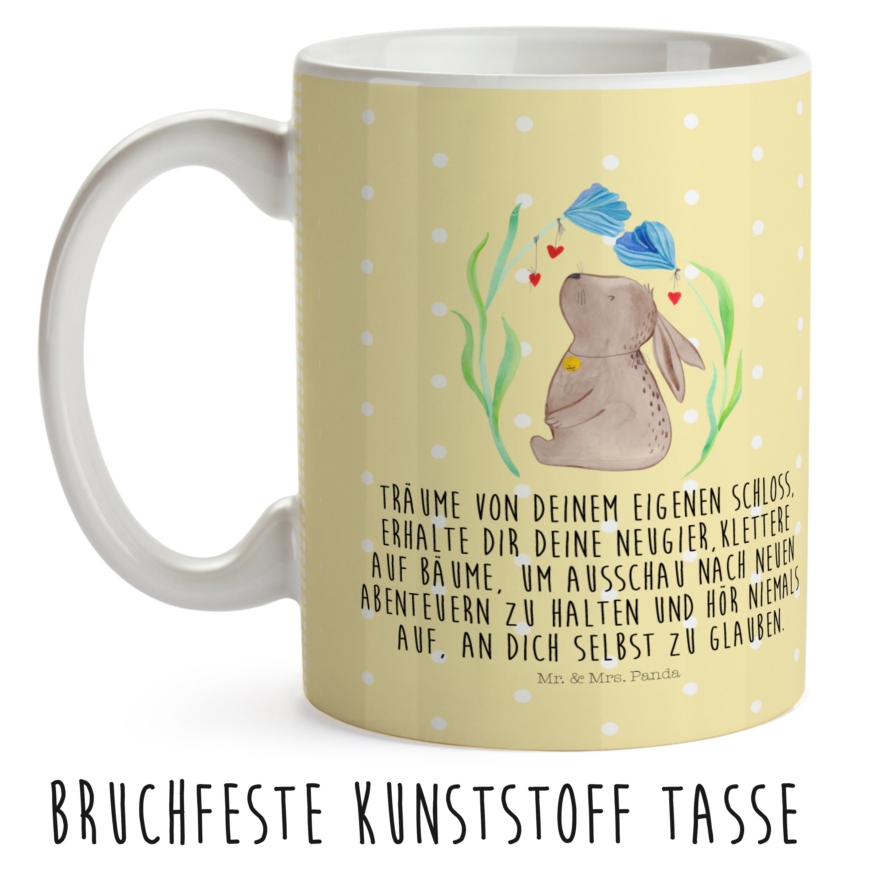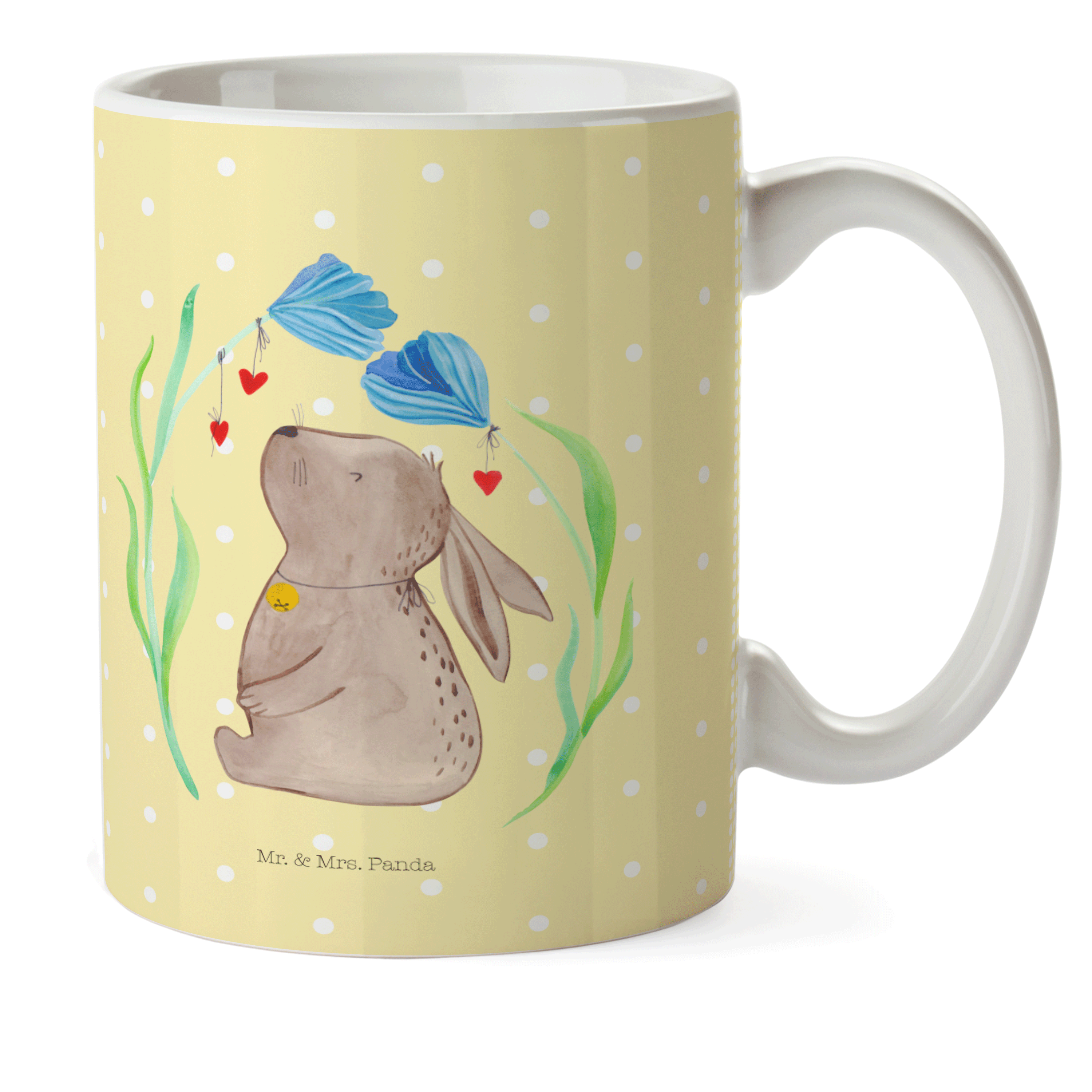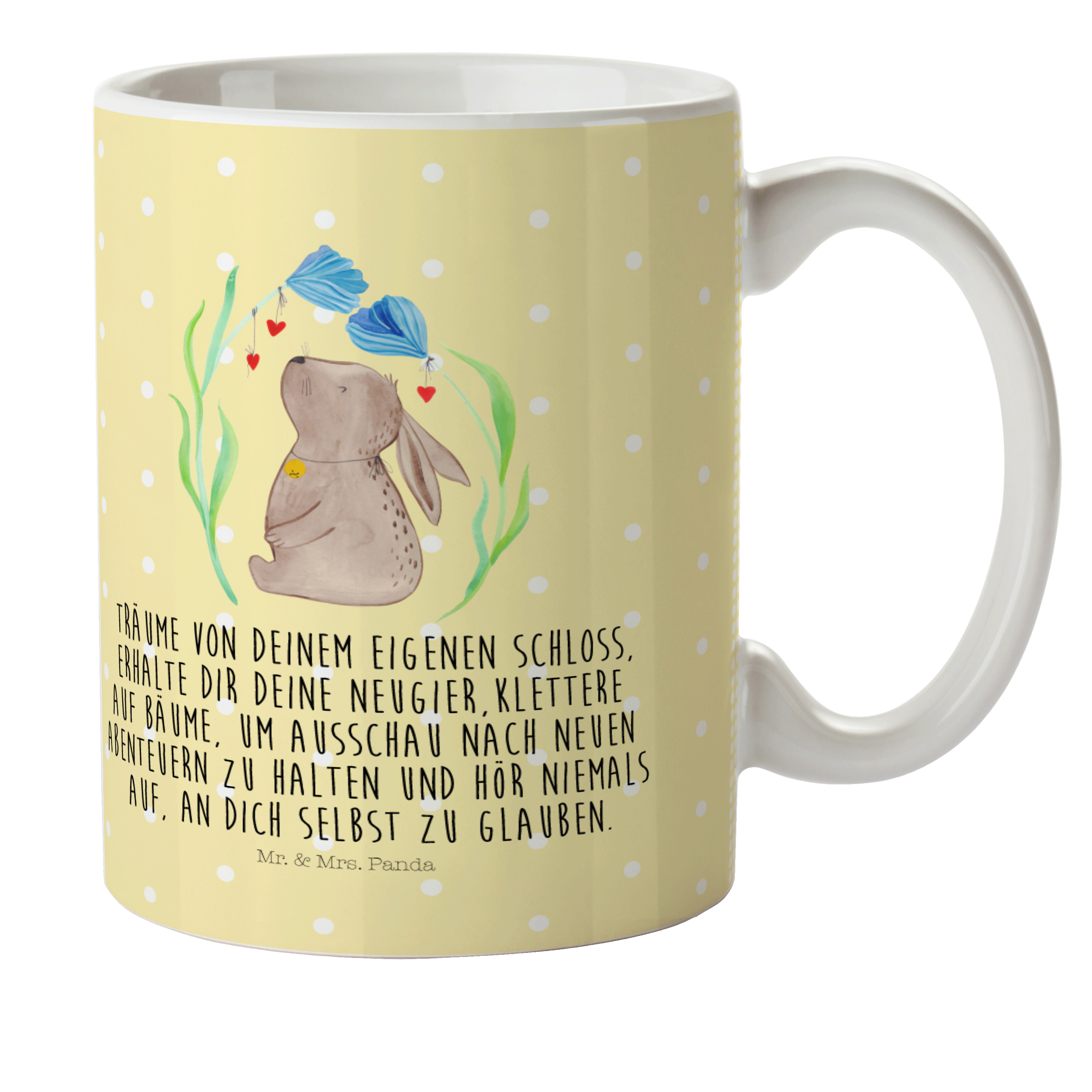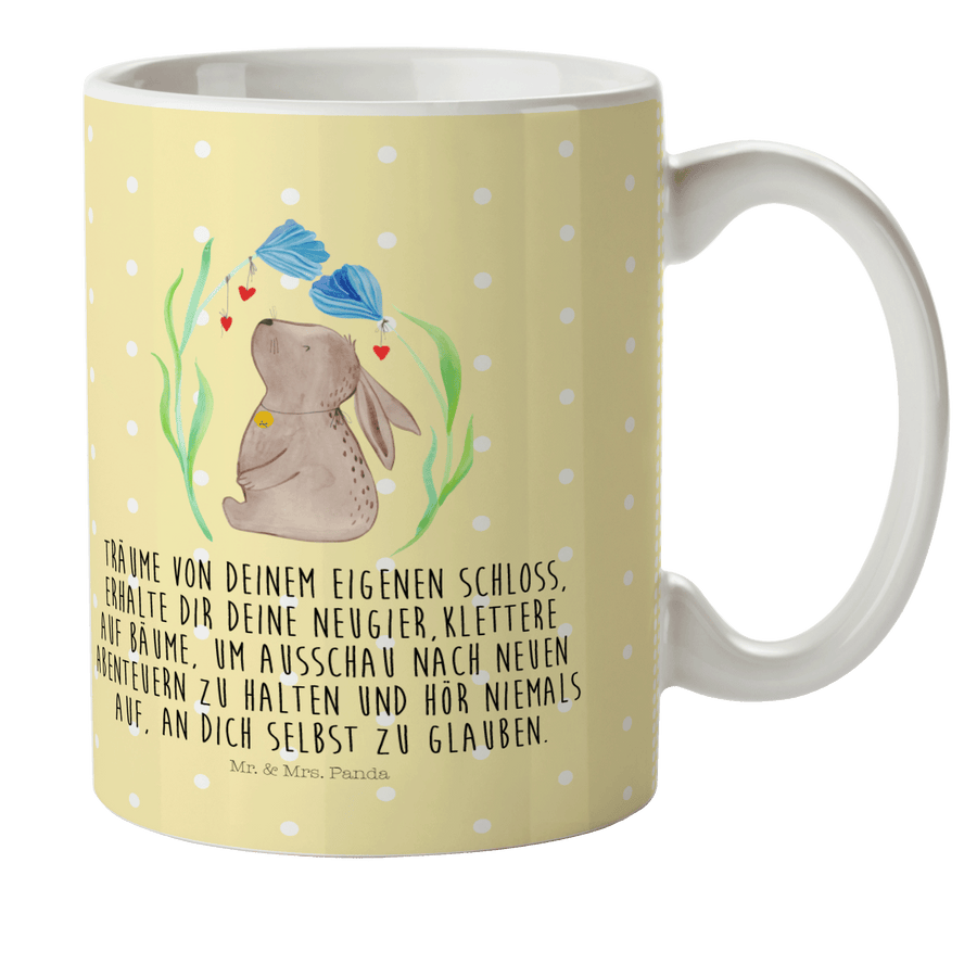 Kindertasse Hase Blume - mit Spruch - Gelb Pastell