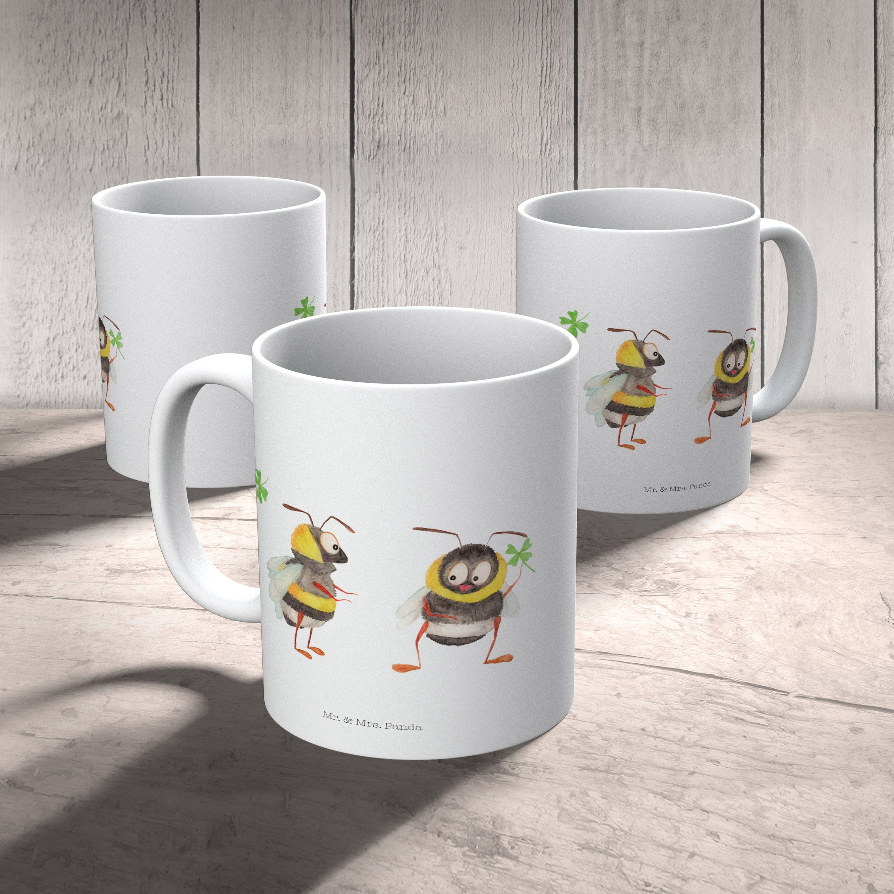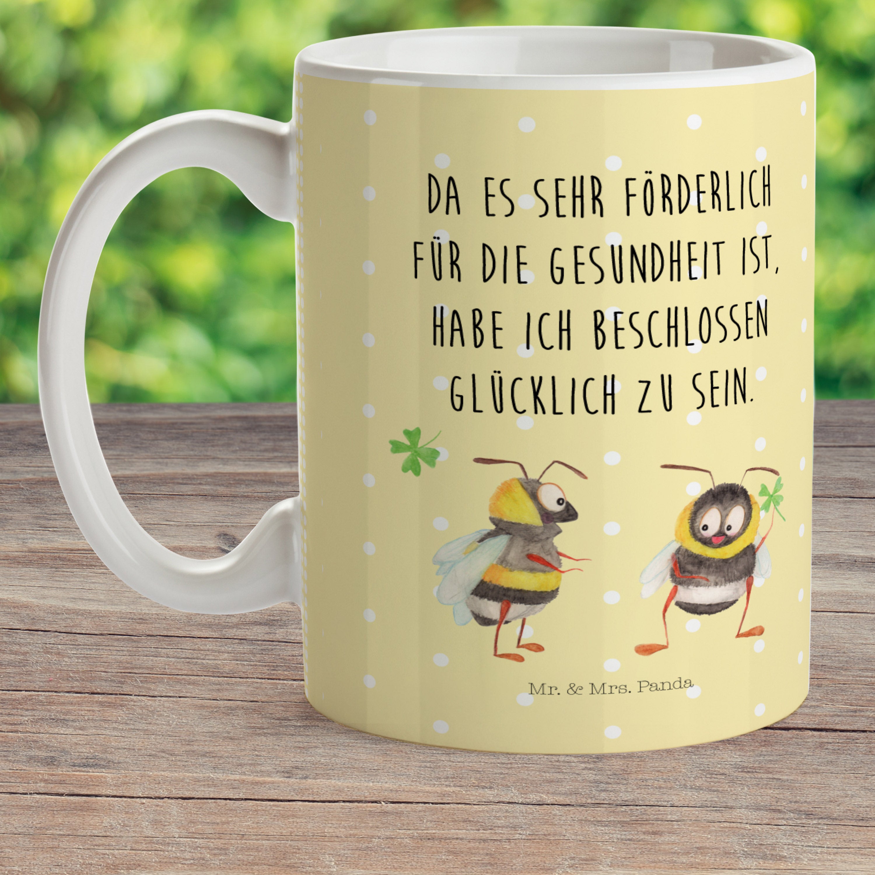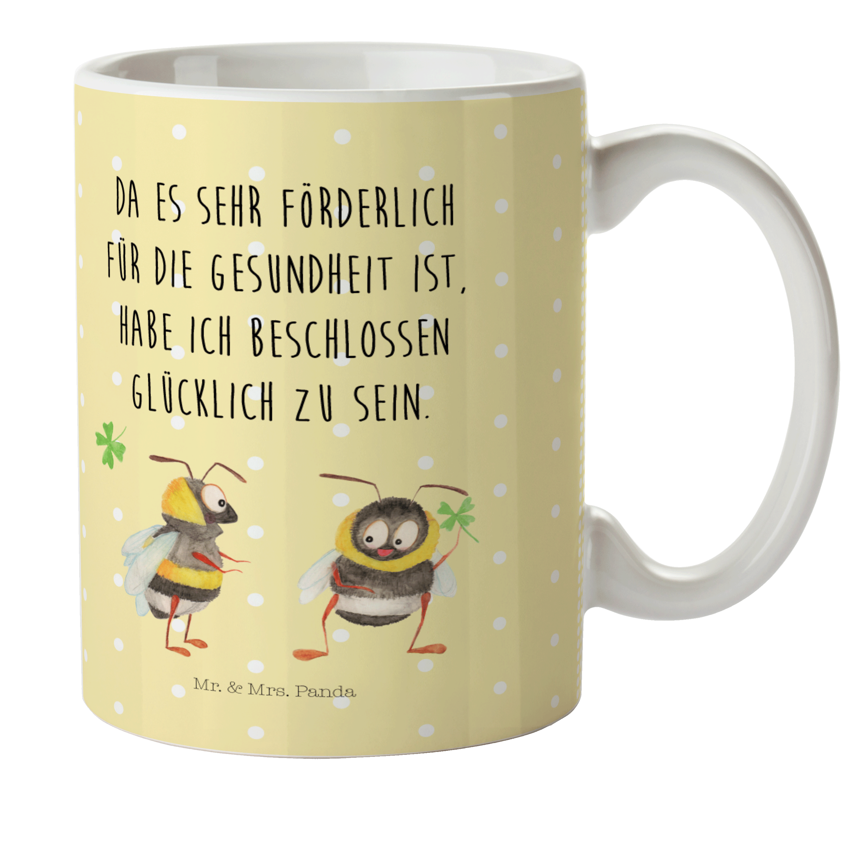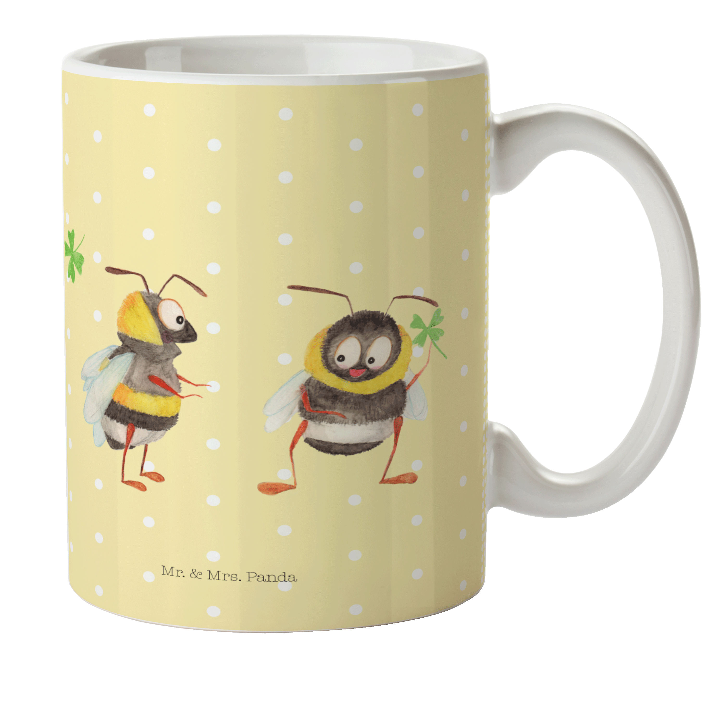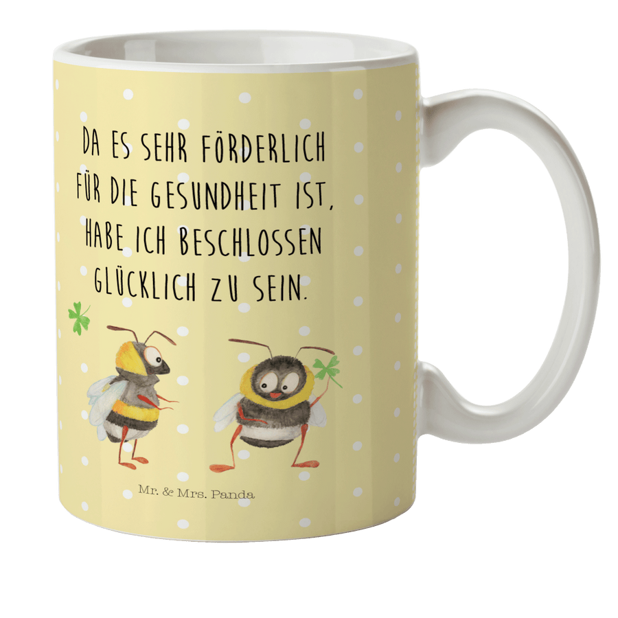 Kindertasse Hummeln mit Kleeblatt - mit Spruch - Gelb Pastell