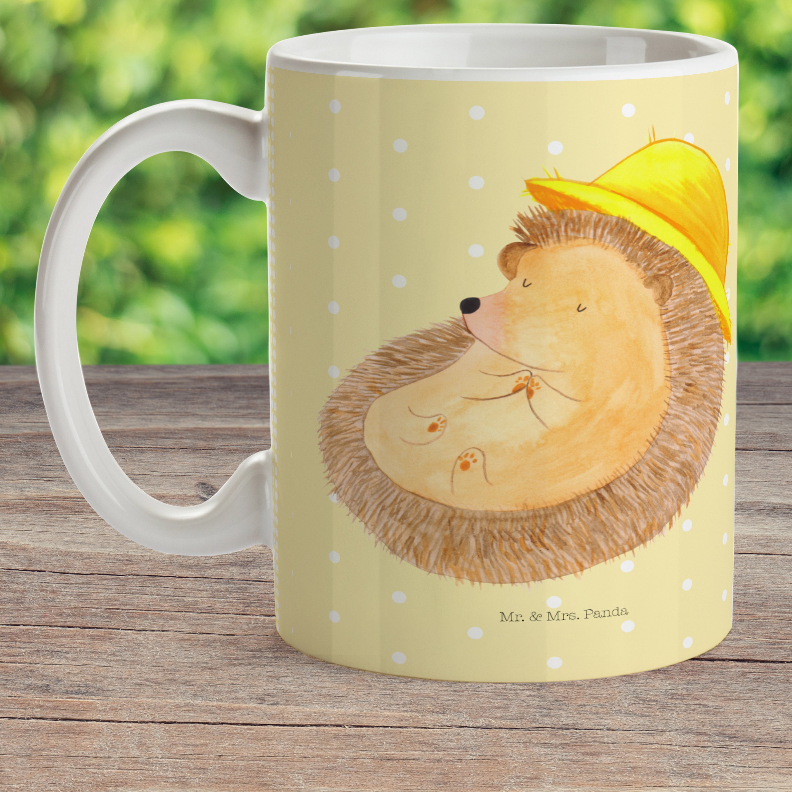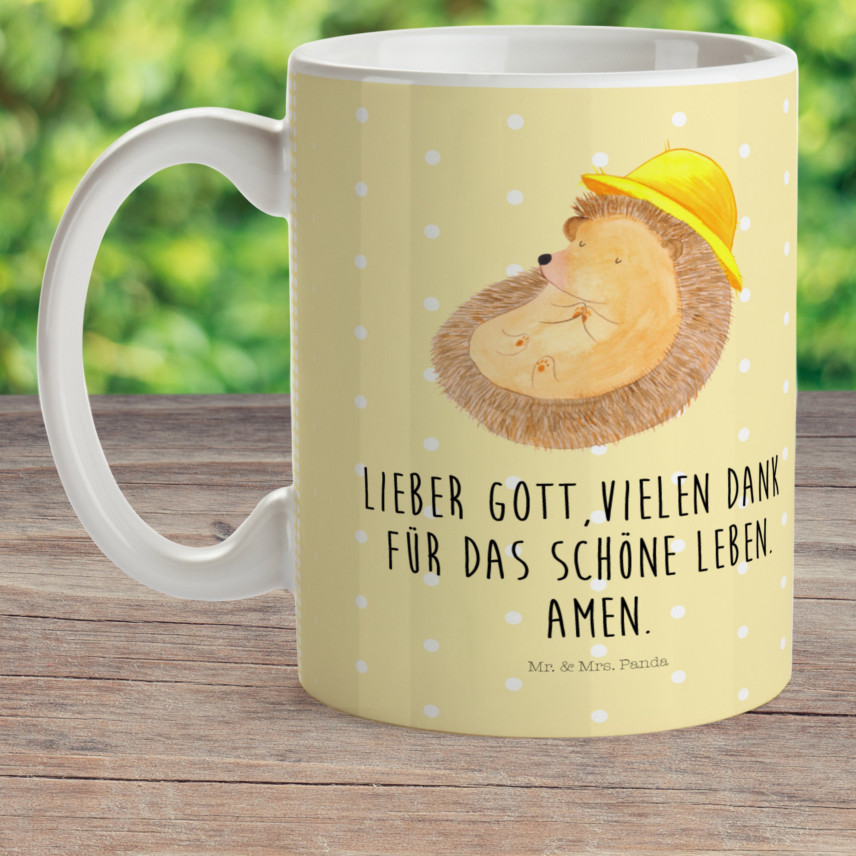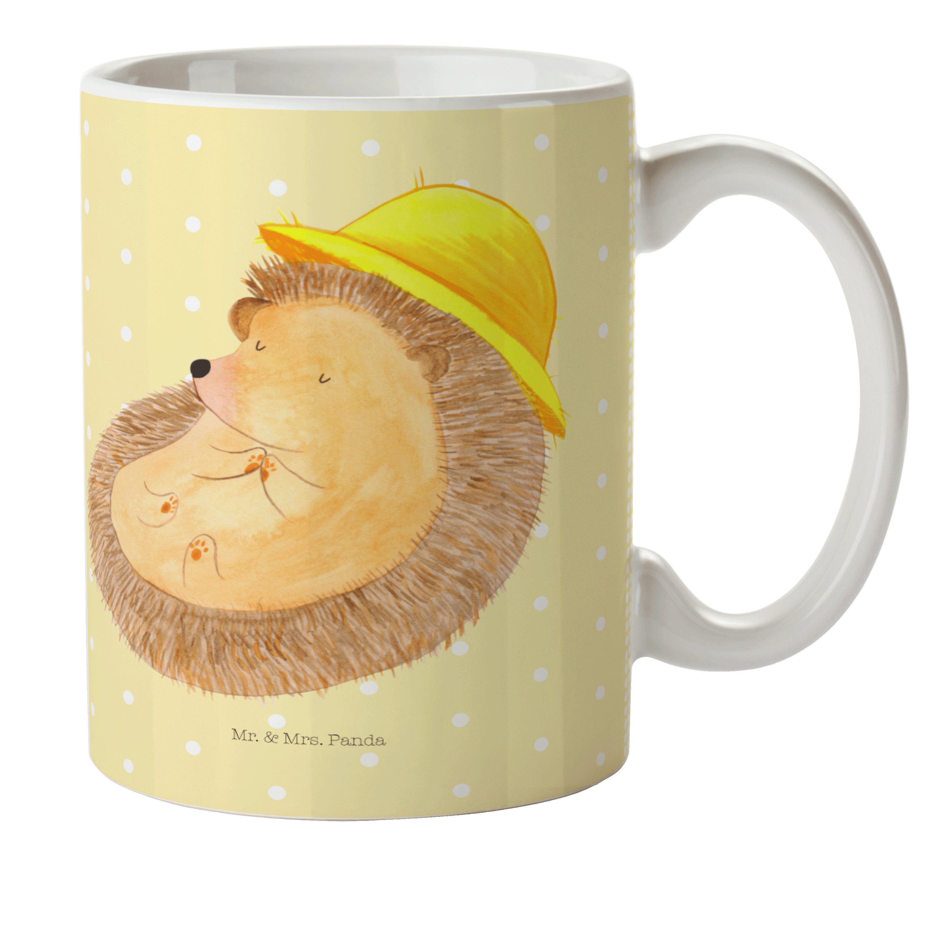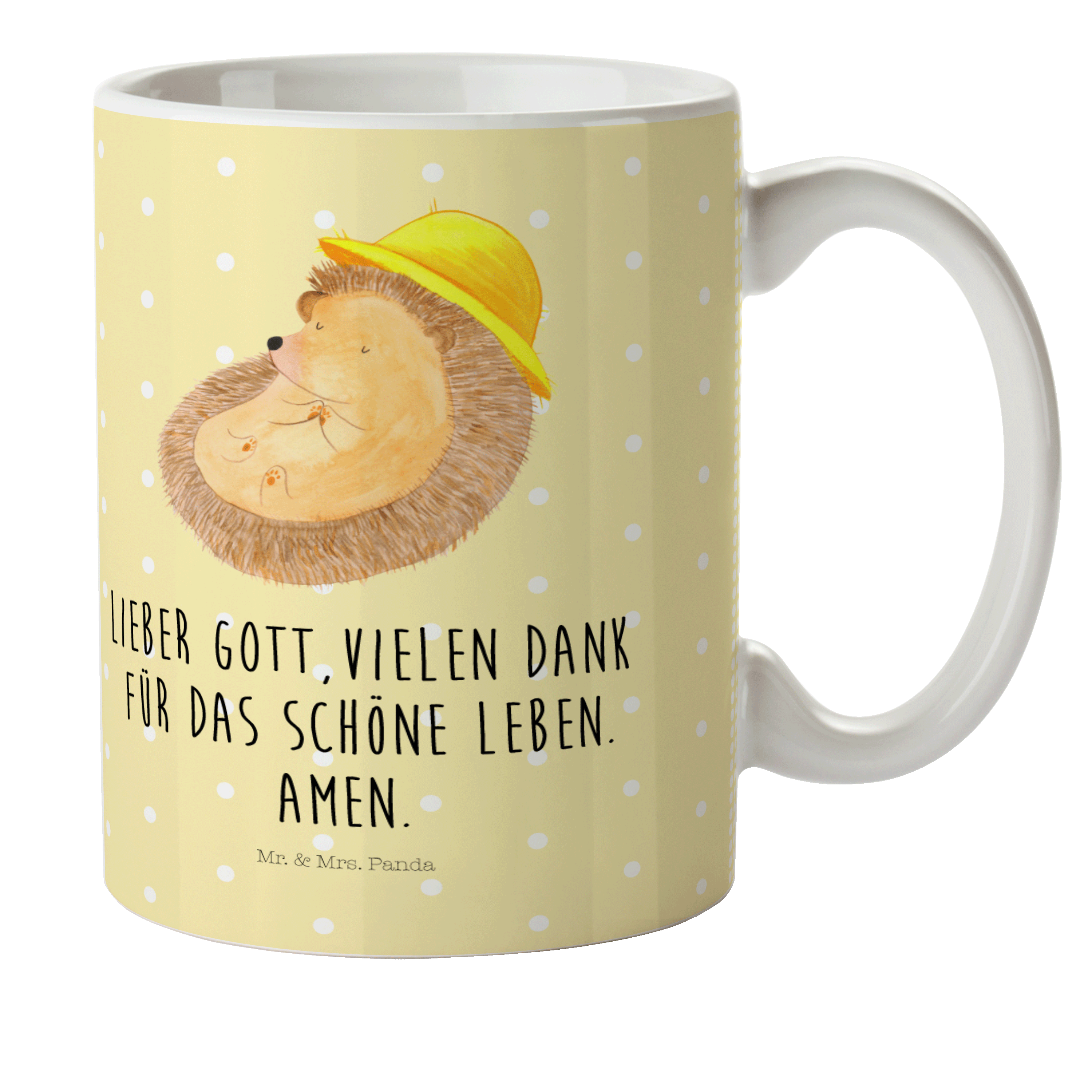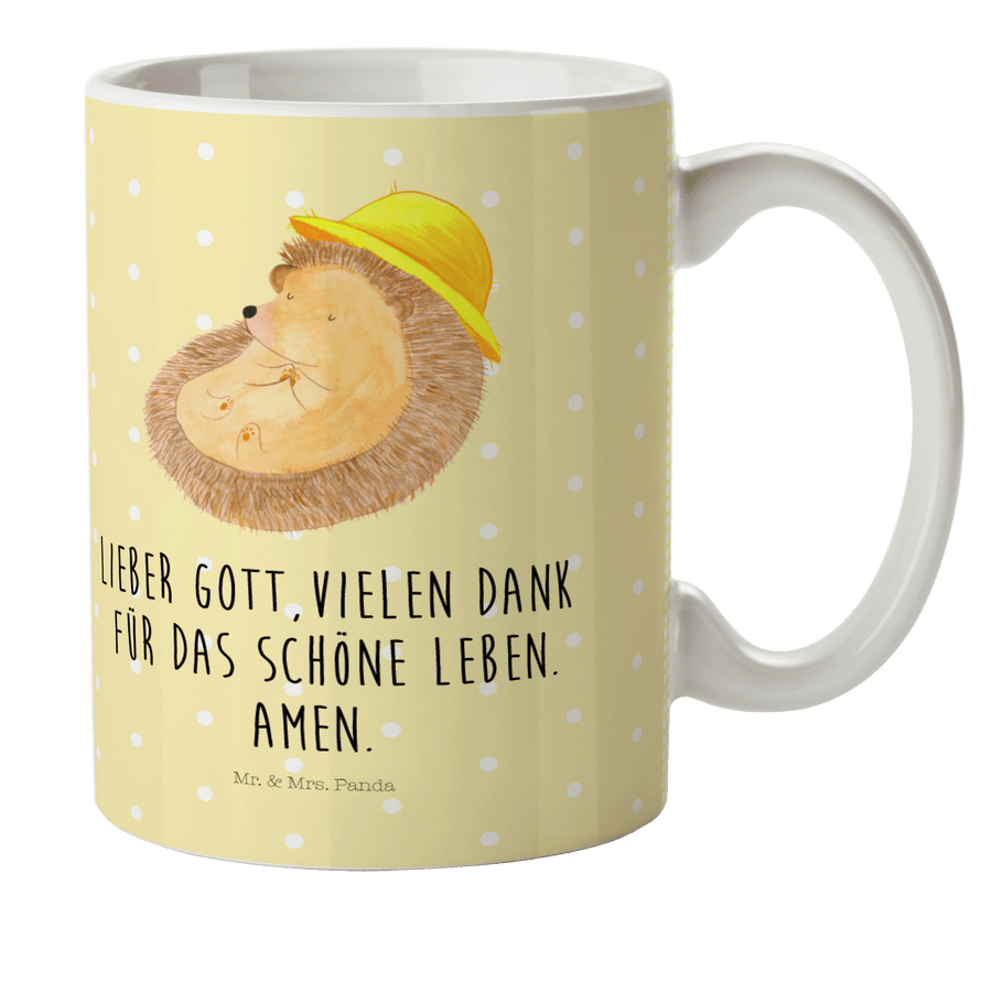 Kindertasse Igel betet - mit Spruch - Gelb Pastell