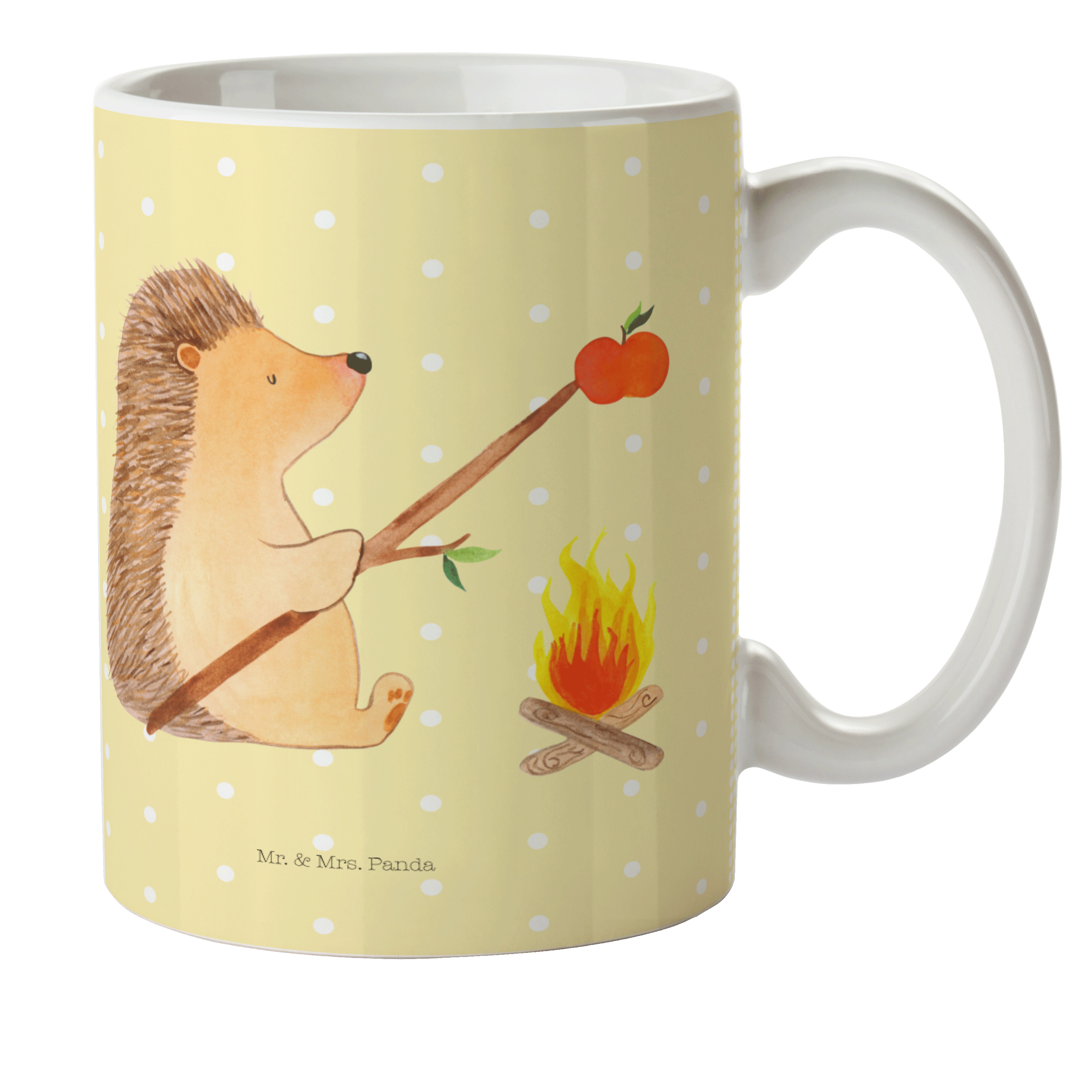 Kindertasse Igel grillt - mit Spruch - Gelb Pastell