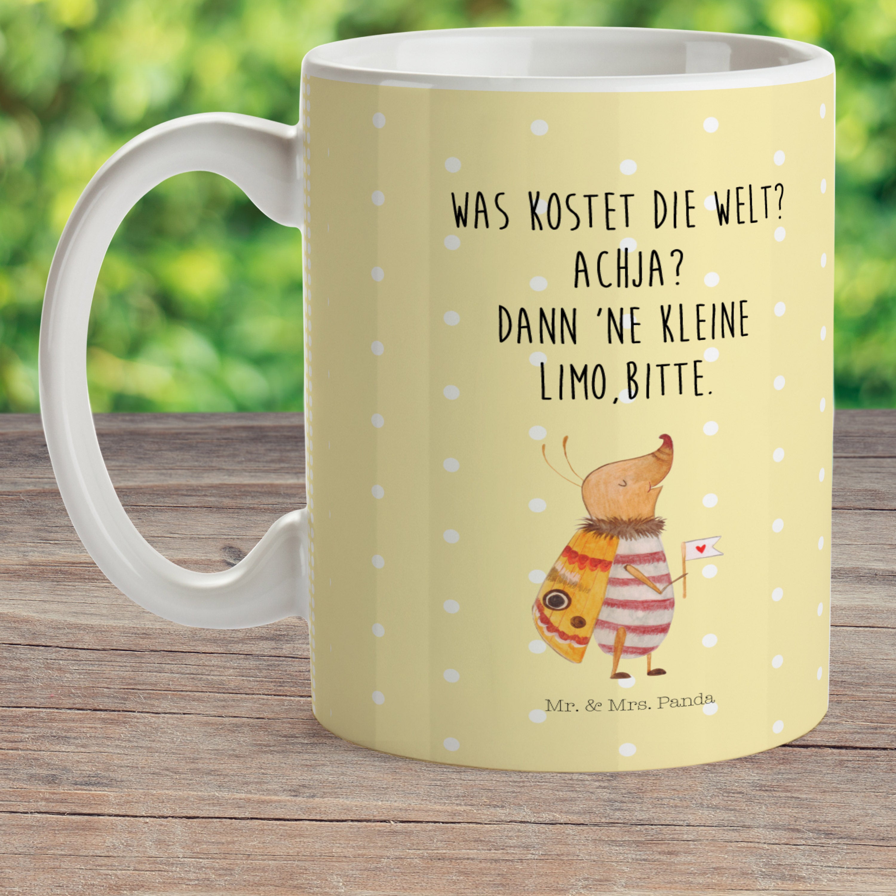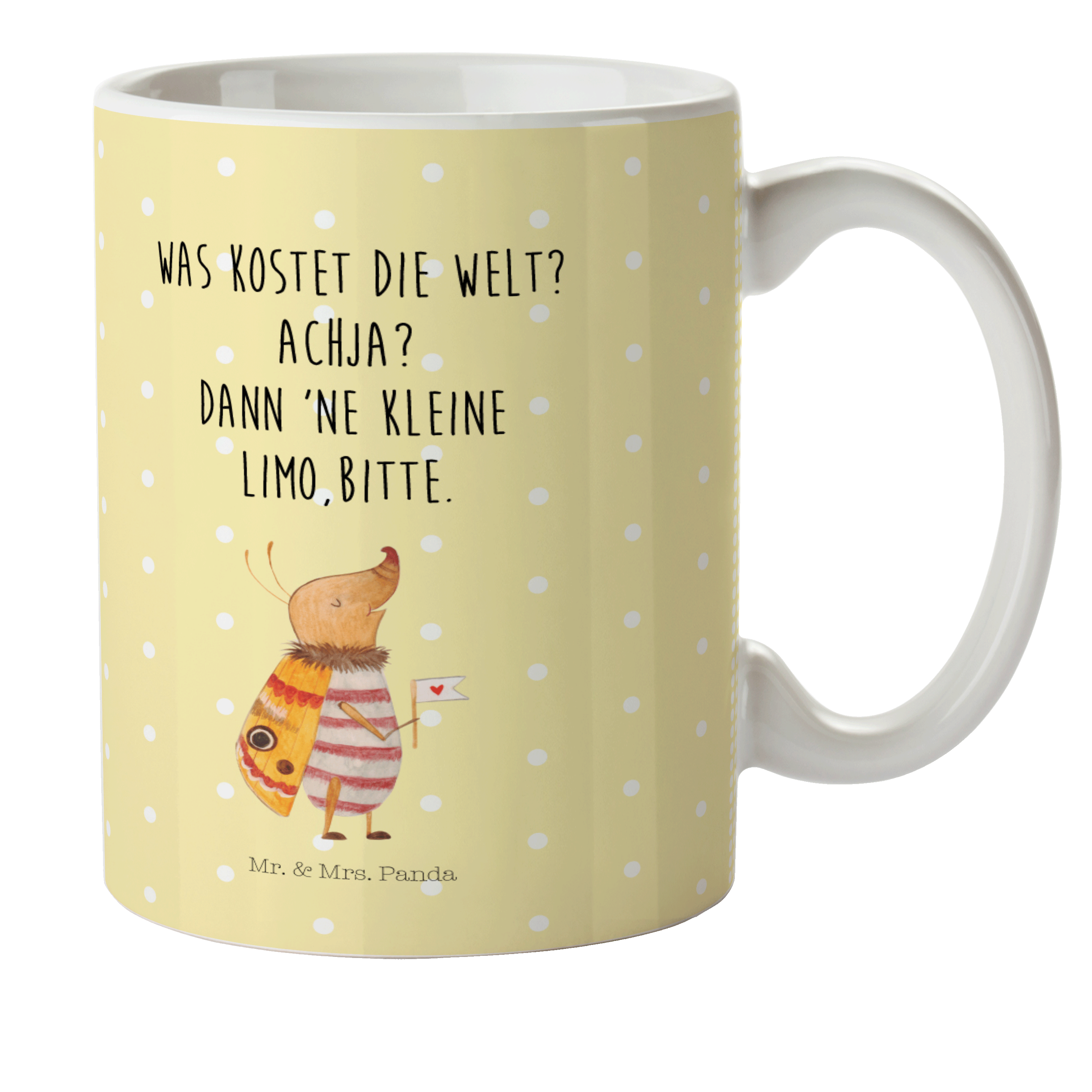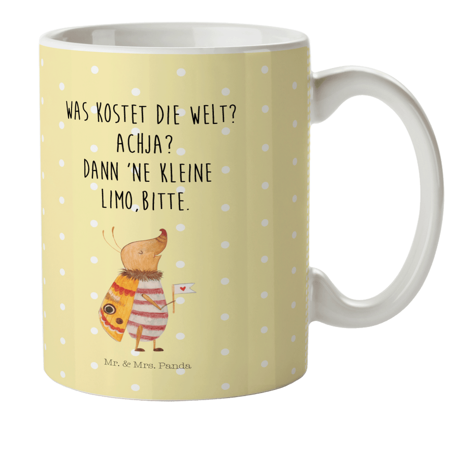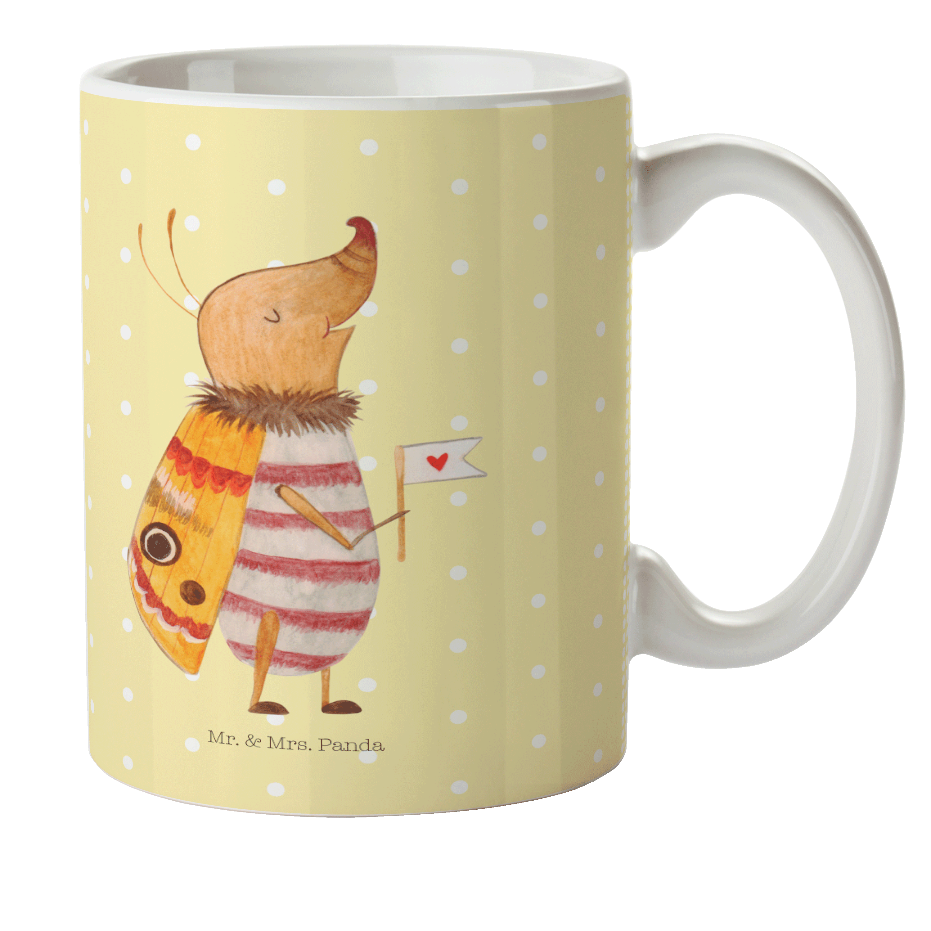 Kindertasse Nachtfalter mit Fähnchen - mit Spruch - Gelb Pastell