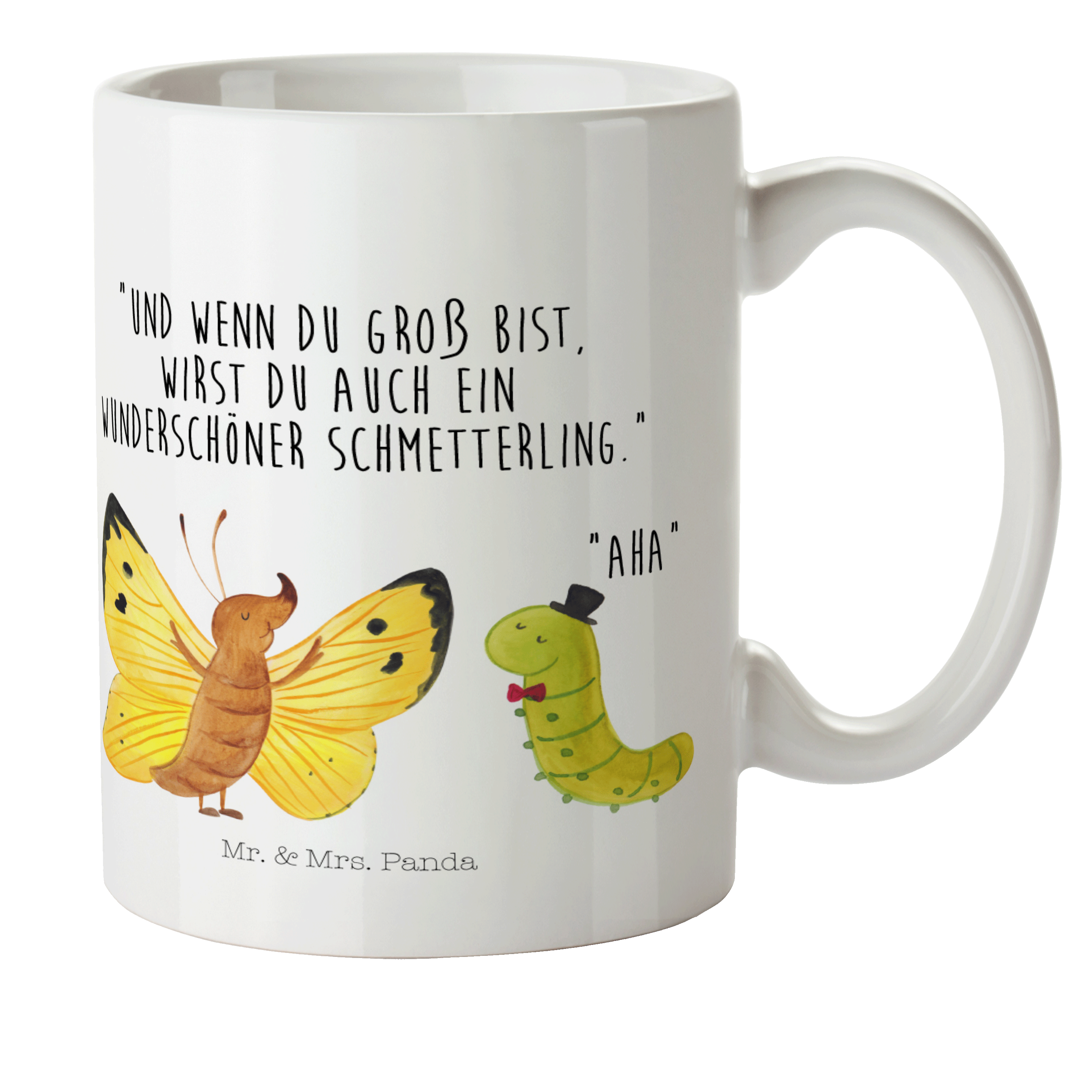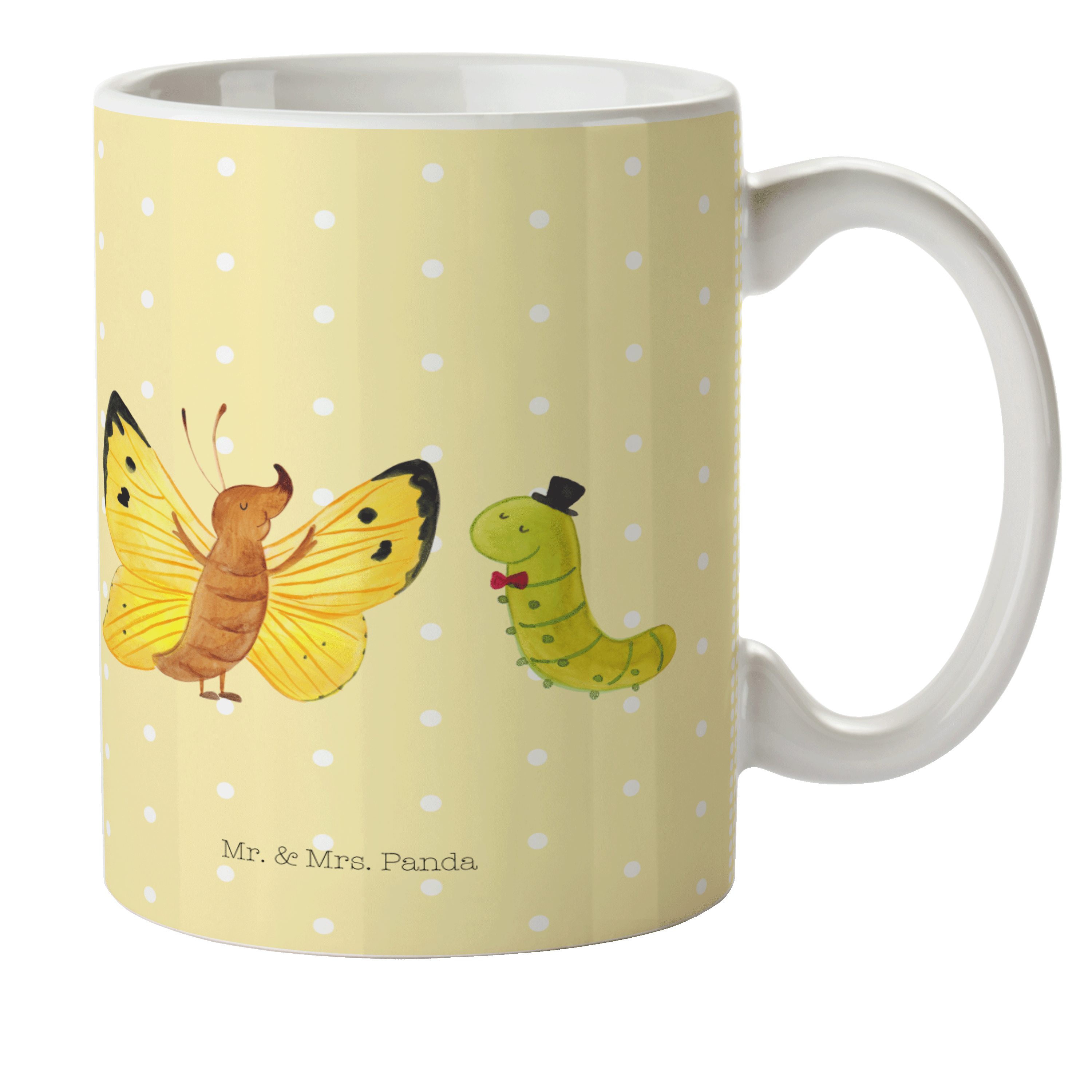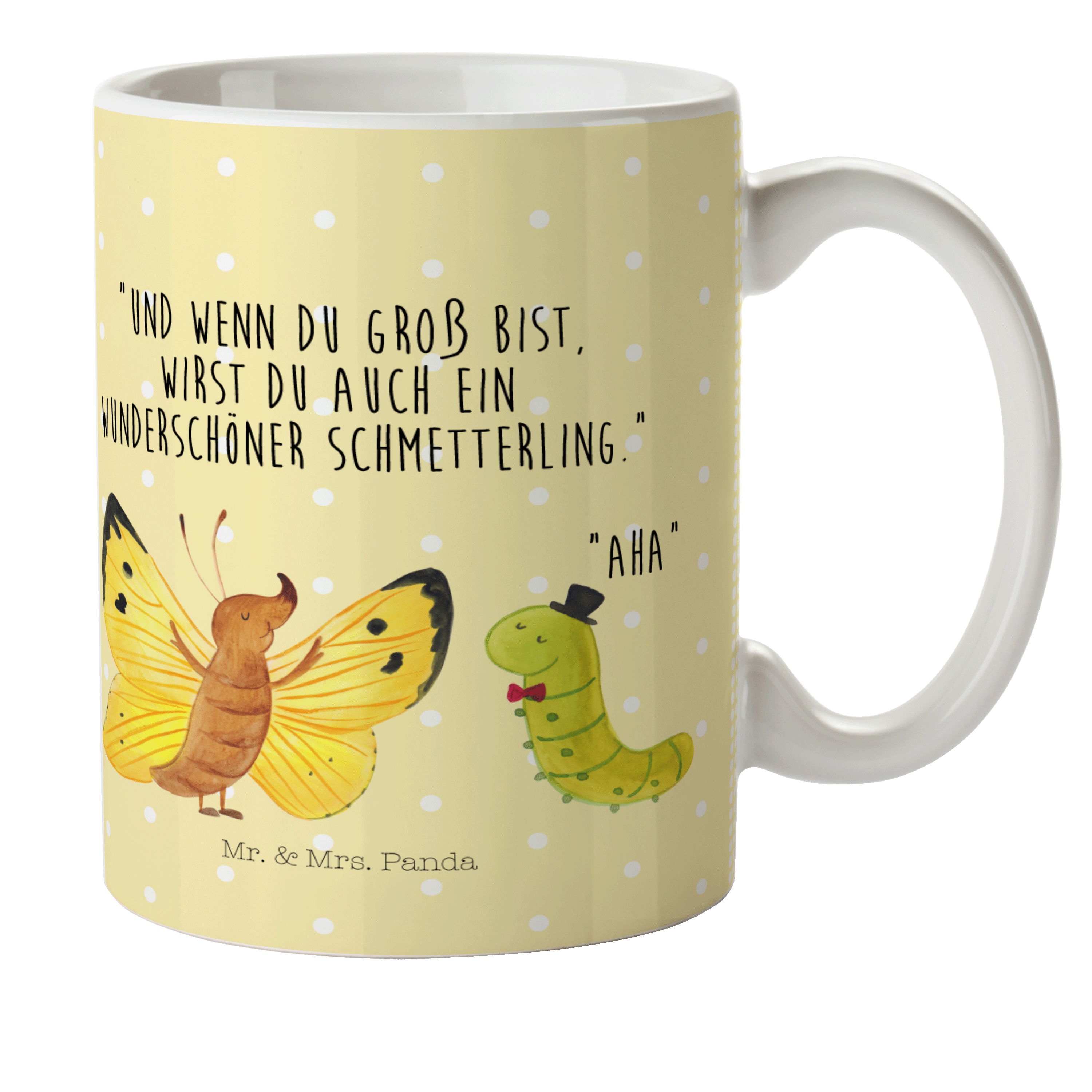 Kindertasse Raupe & Schmetterling - mit Spruch - Gelb Pastell
