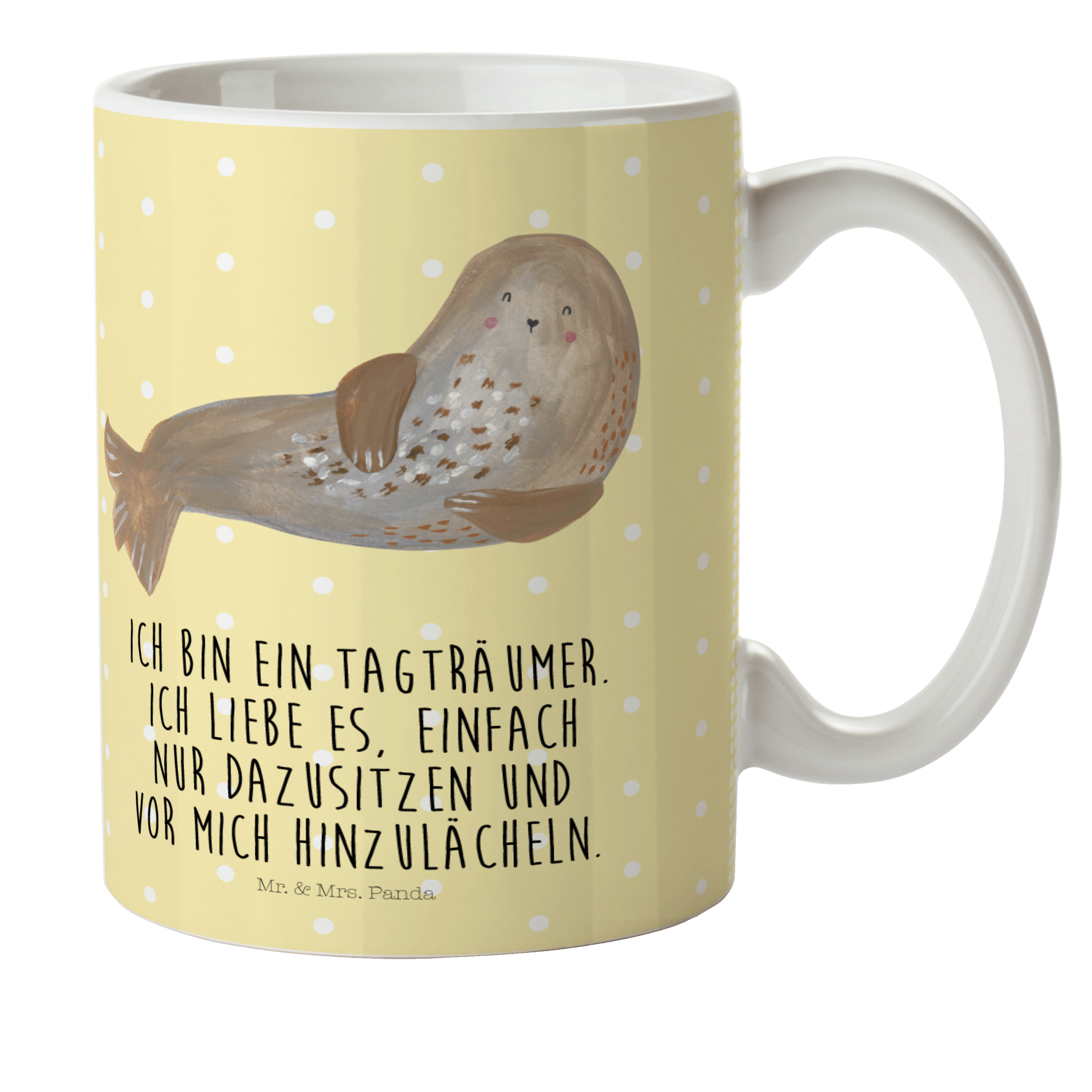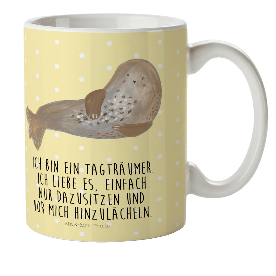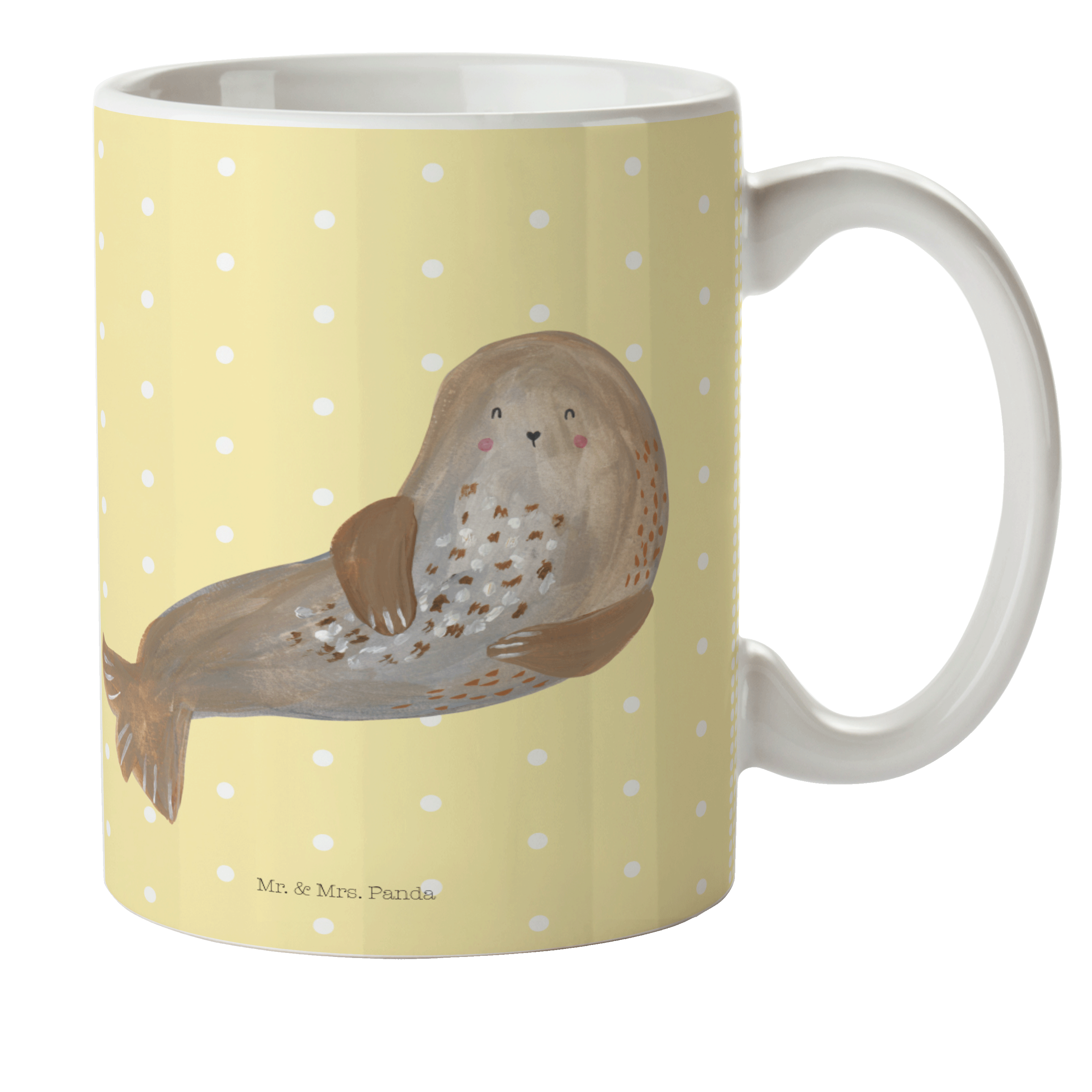 Kindertasse Robbe lachend - mit Spruch - Gelb Pastell