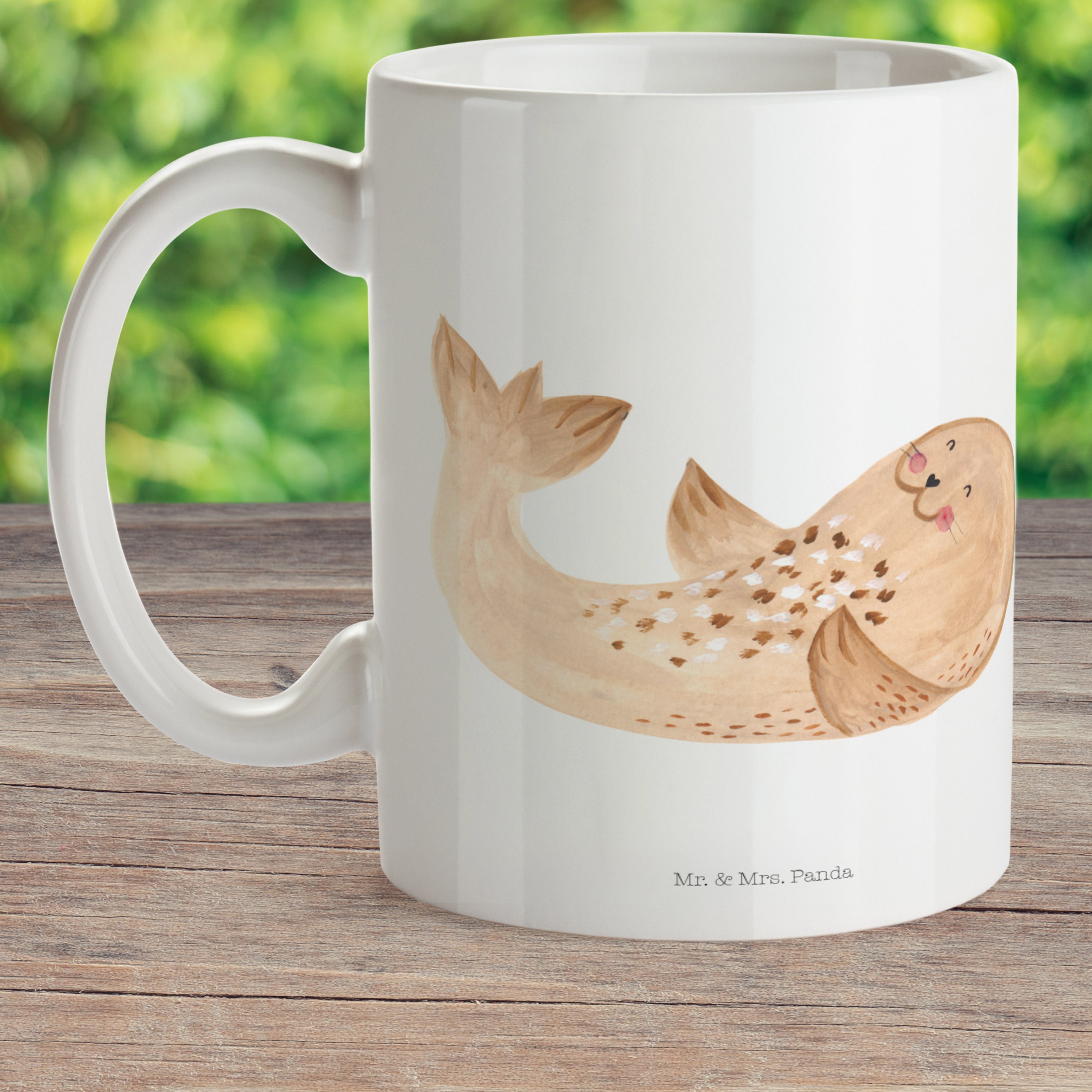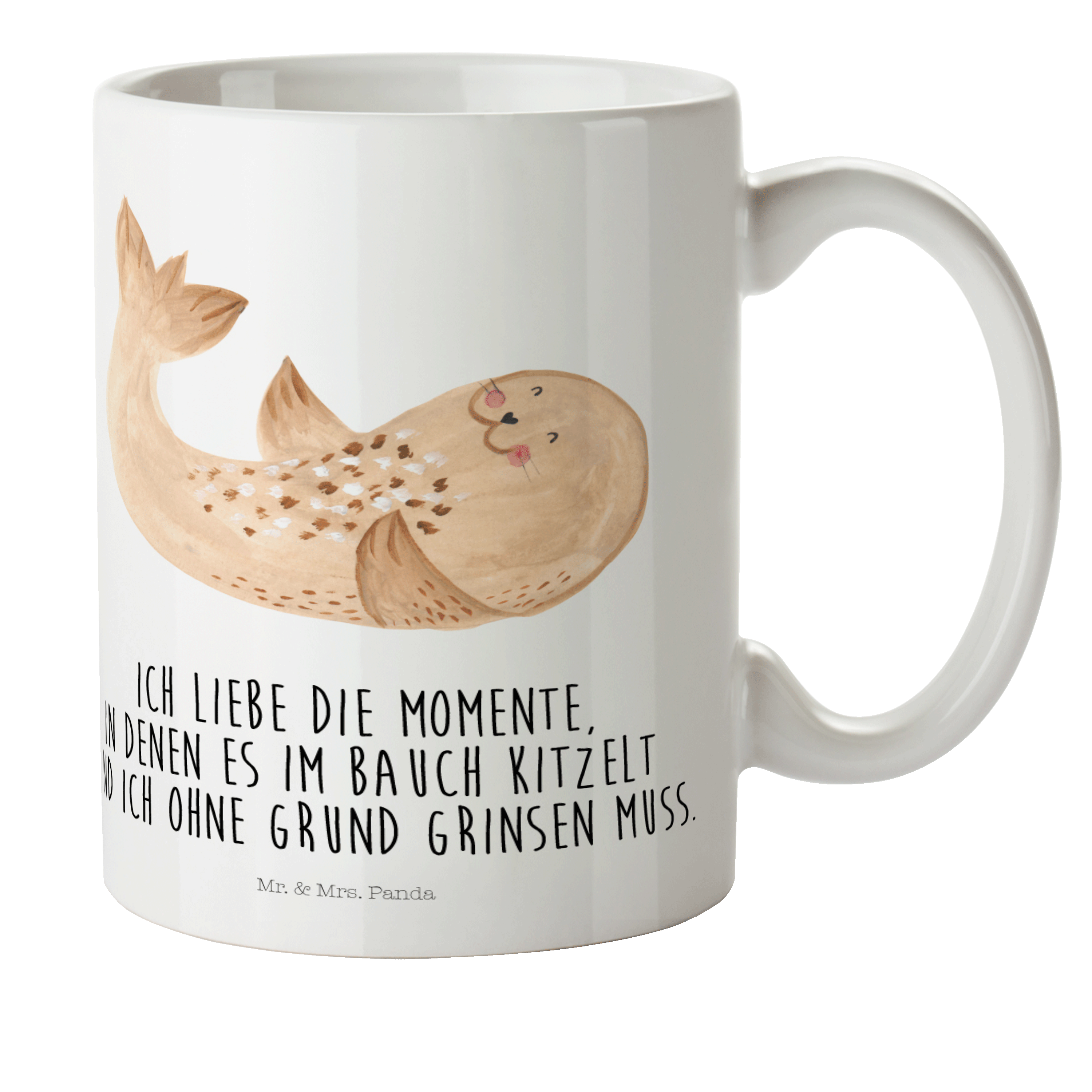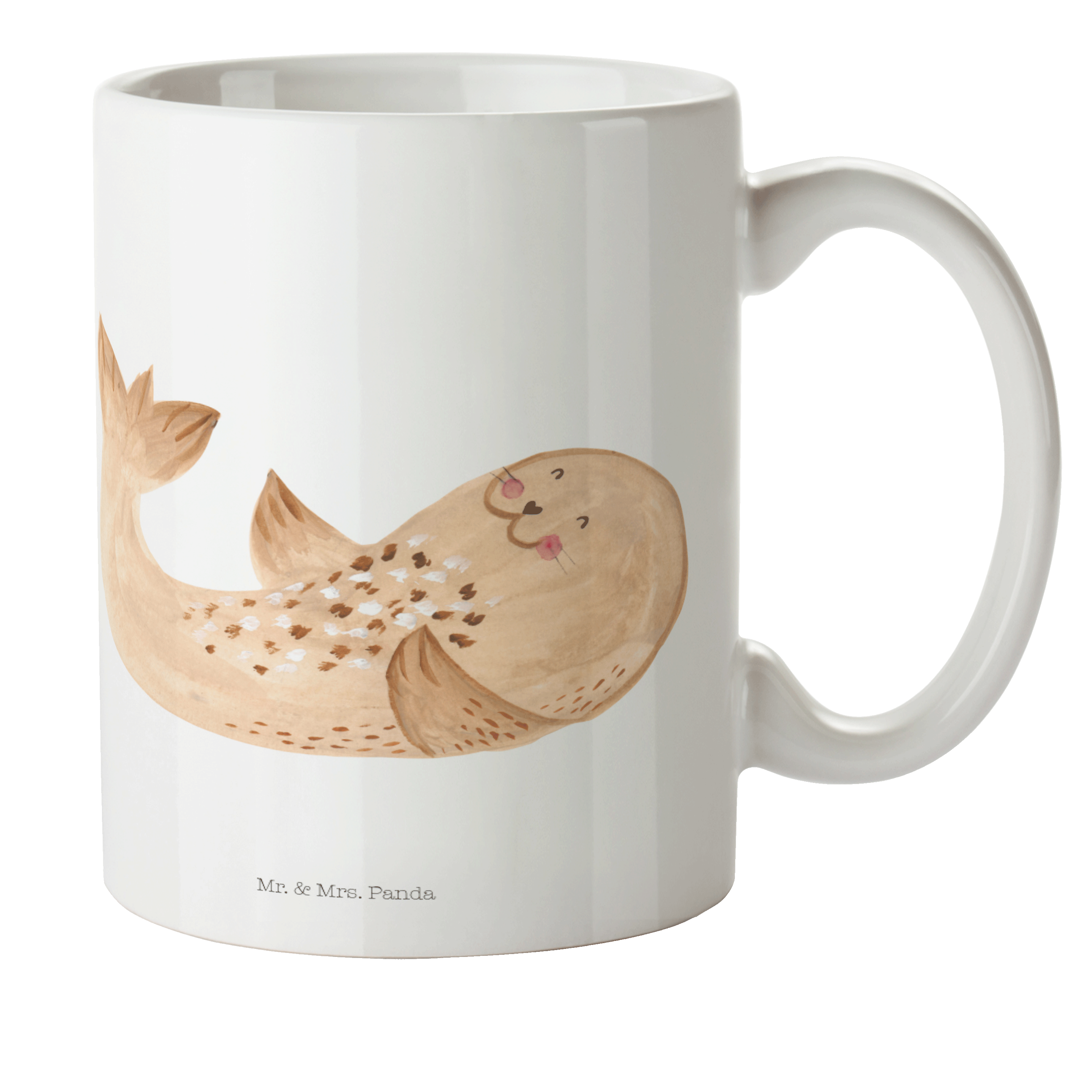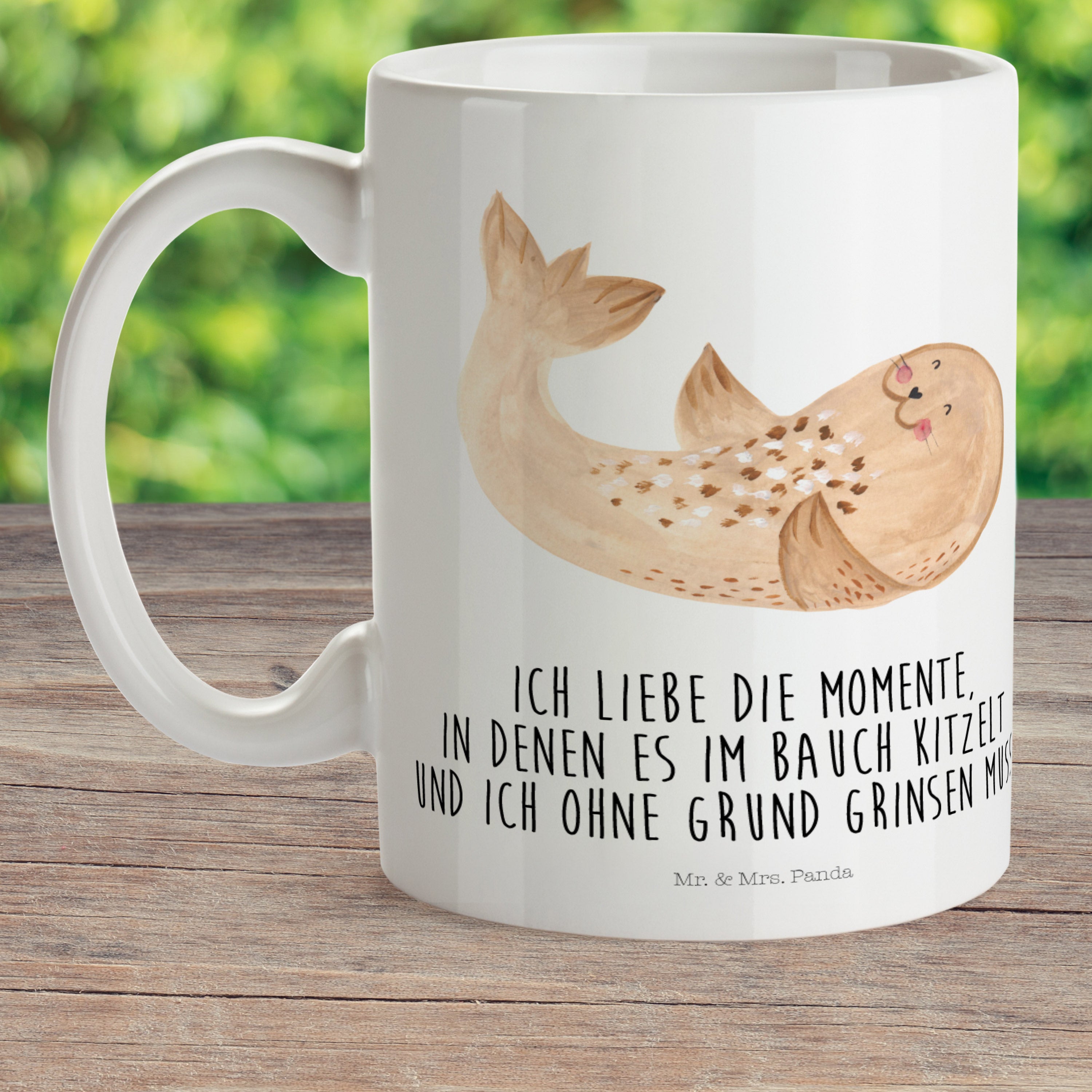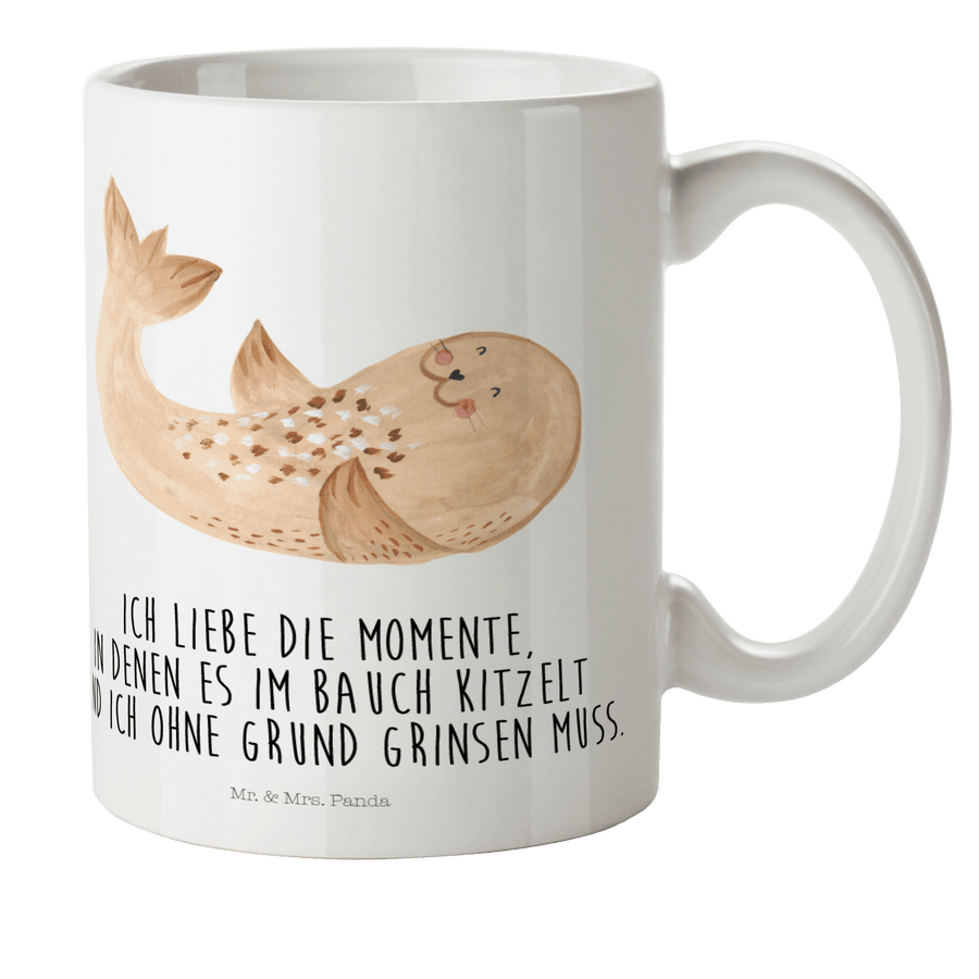 Kindertasse Robbe liegend - mit Spruch - Weiß