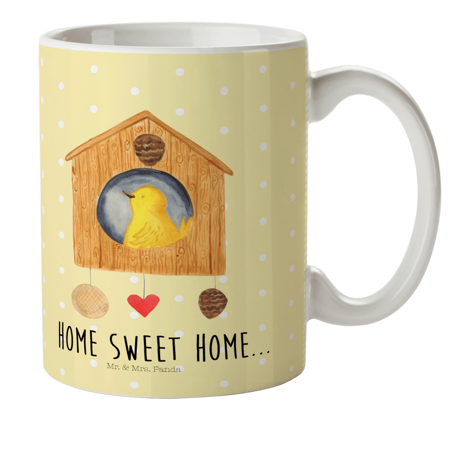 Kindertasse Vogelhaus sweet Home - mit Spruch - Gelb Pastell