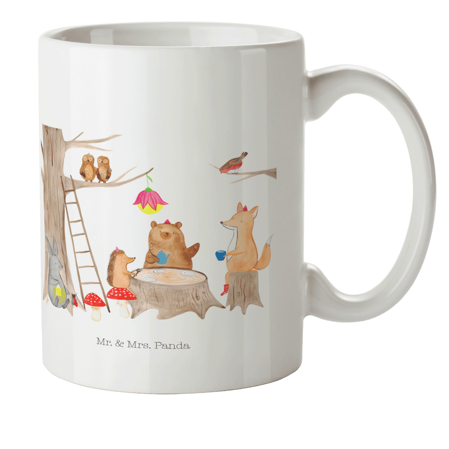 Kindertasse Waldtiere Picknick - mit Spruch - Weiß