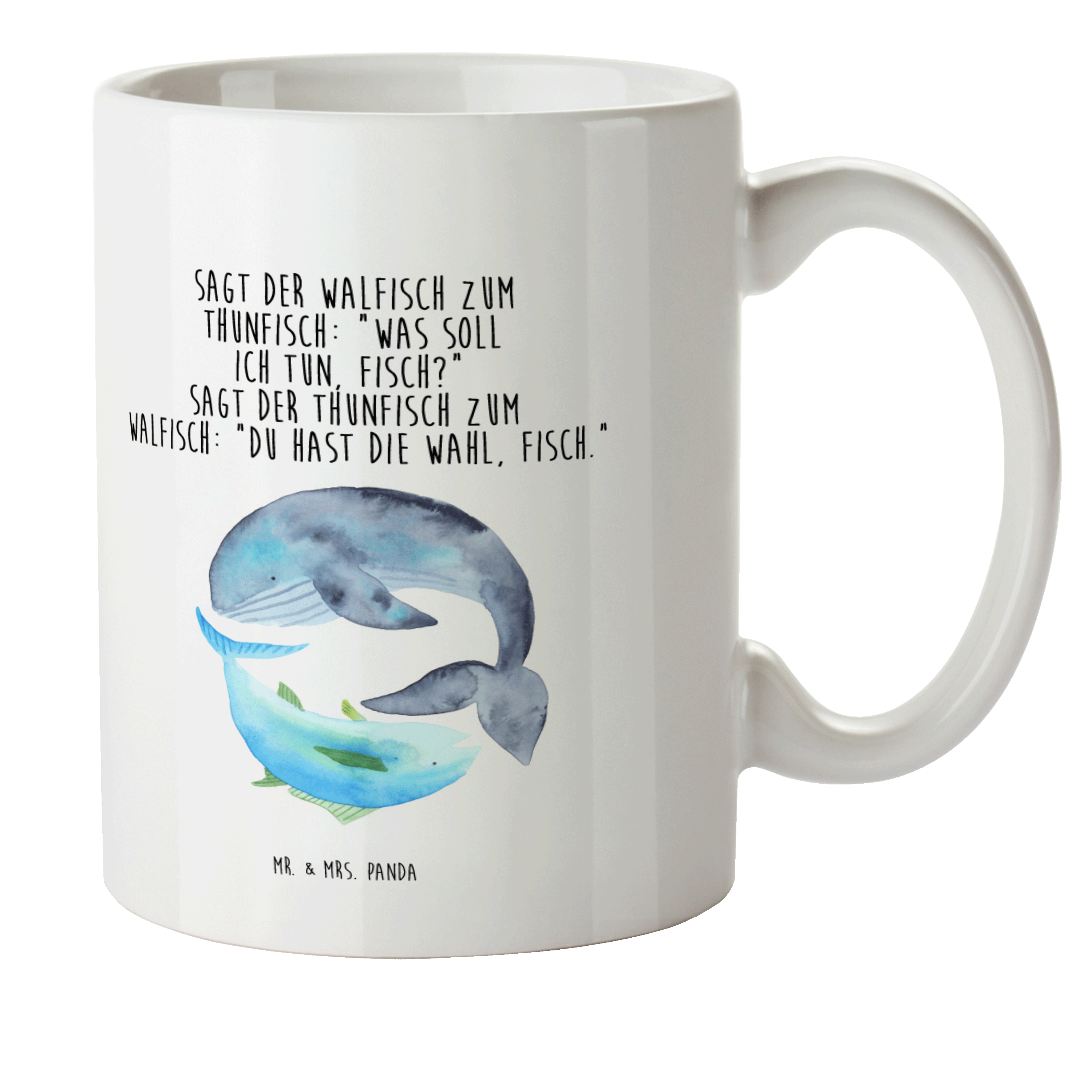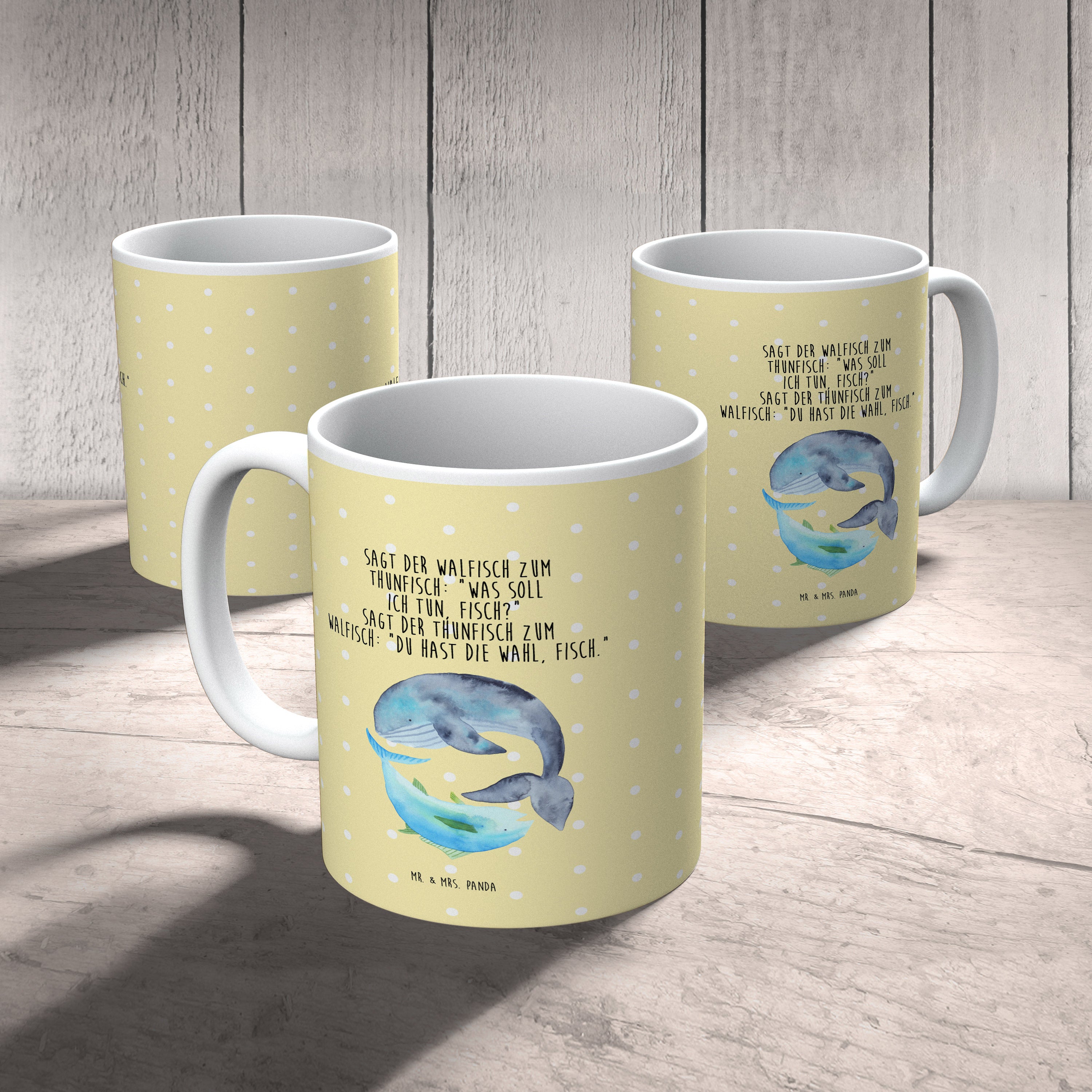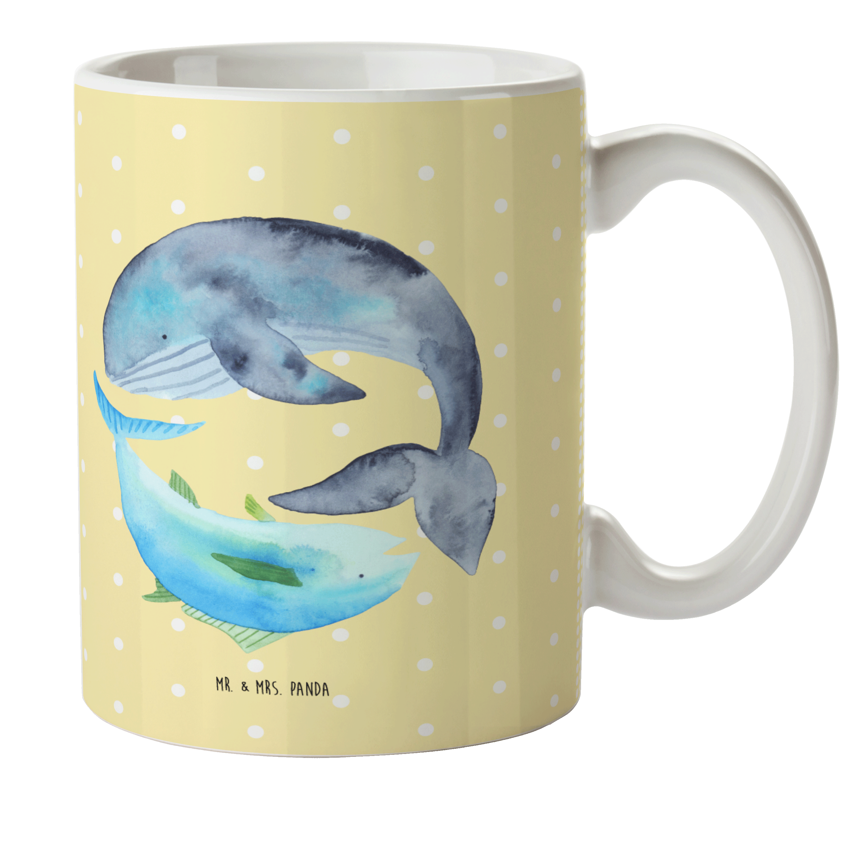 Kindertasse Walfisch & Thunfisch - mit Spruch - Gelb Pastell