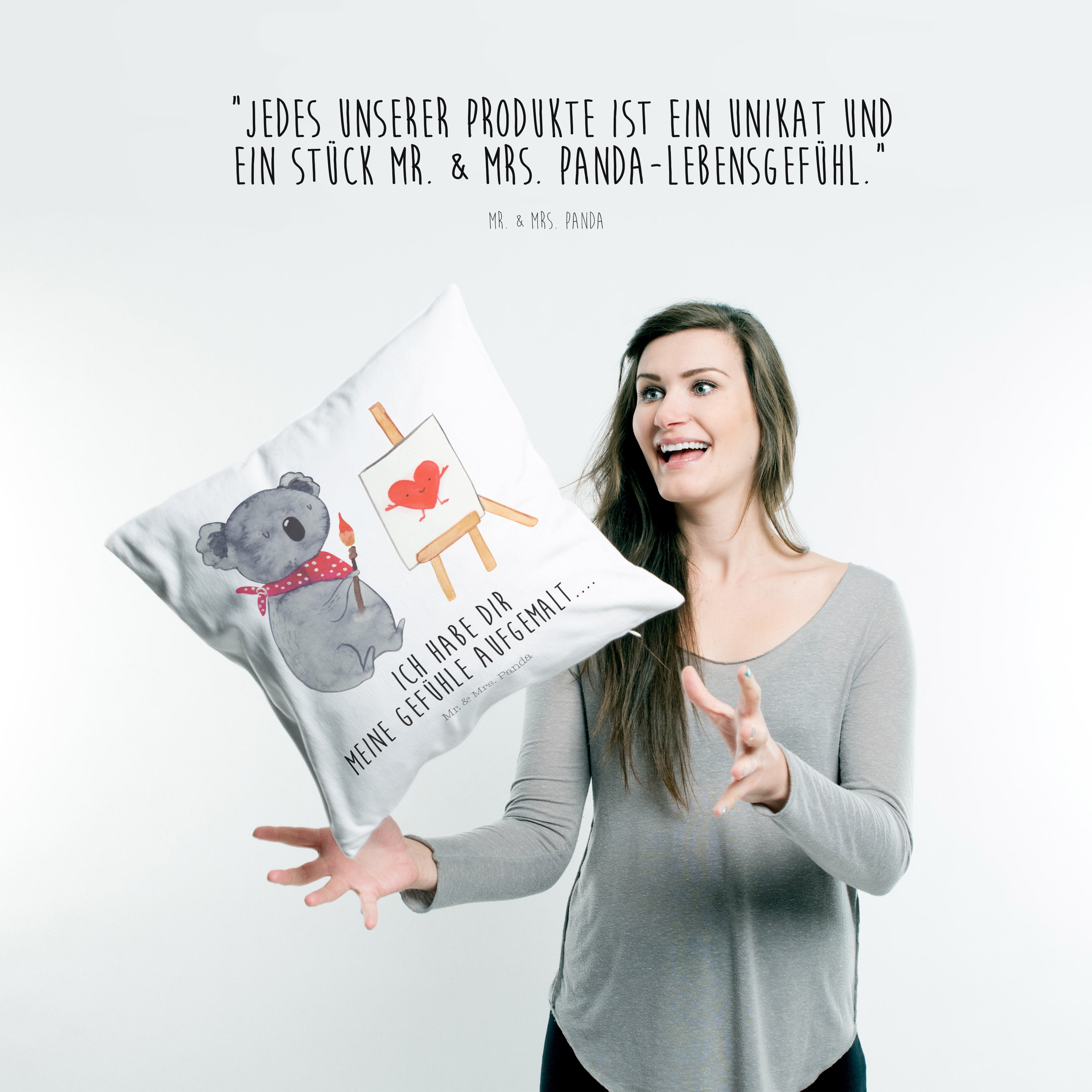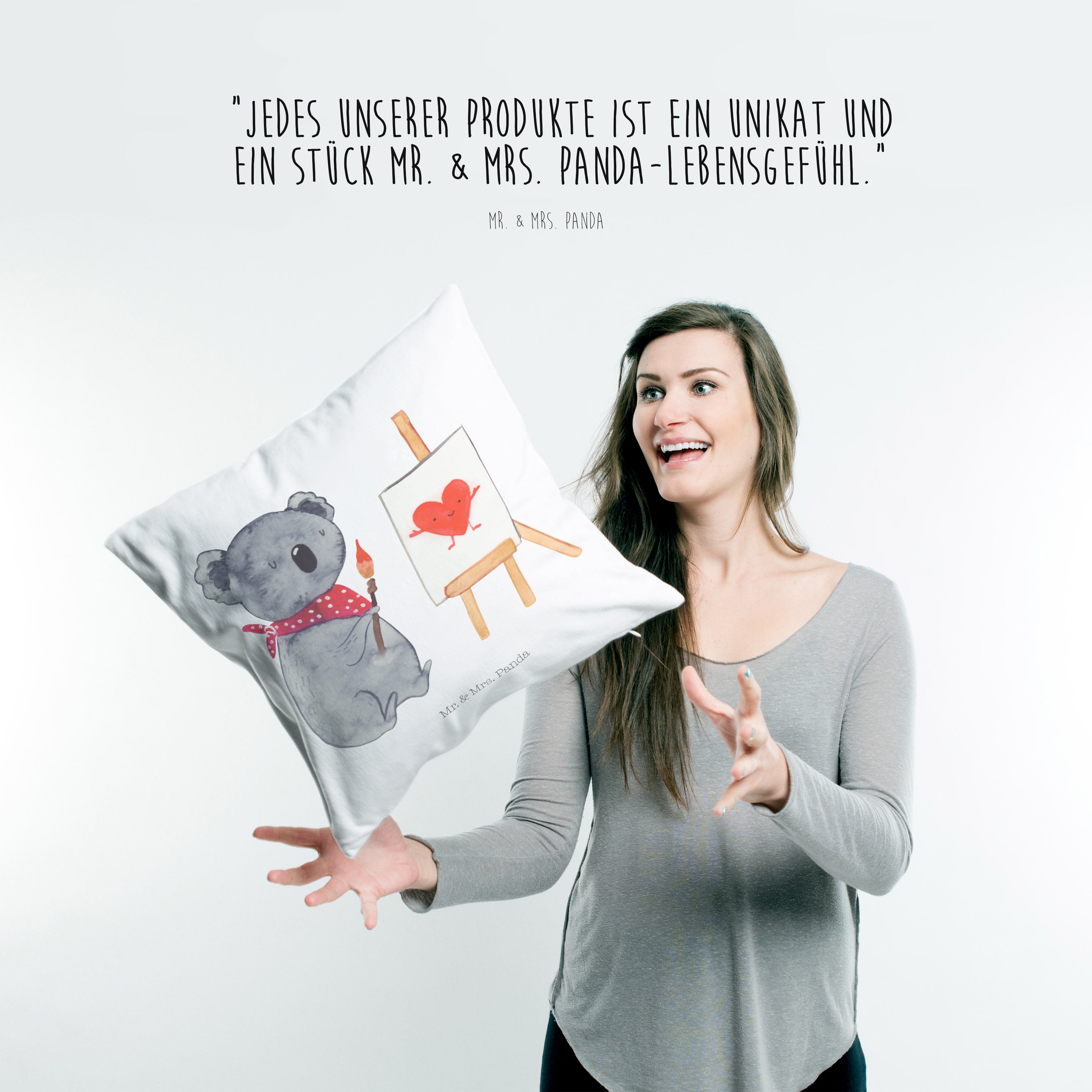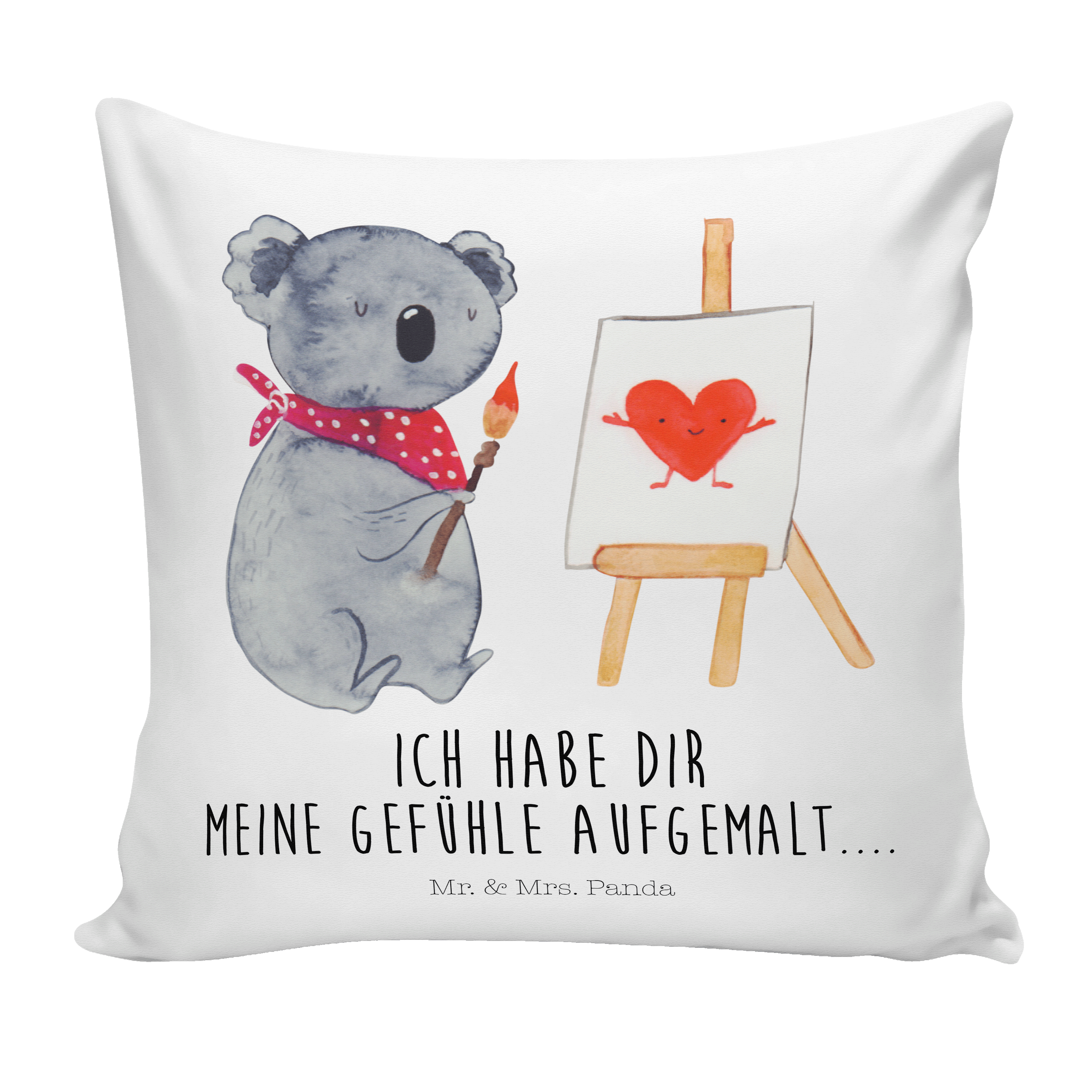 40x40 Kissen Koala Künstler - mit Spruch - Weiß