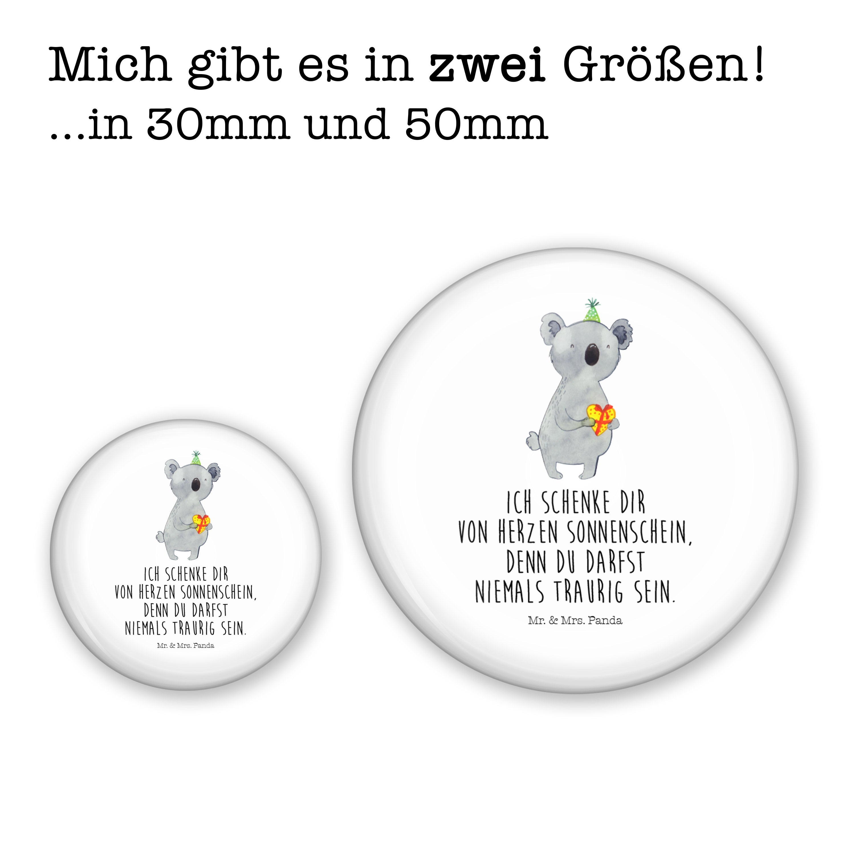 Die wundervollen Button oder Pins von Mr. und Mrs. Panda gibt es jetzt in der Größe 50 mm mit Anstecknadel - praktisch zum Anstecken für Caps, Tasche, deinen Rucksack oder an die Kleidung.