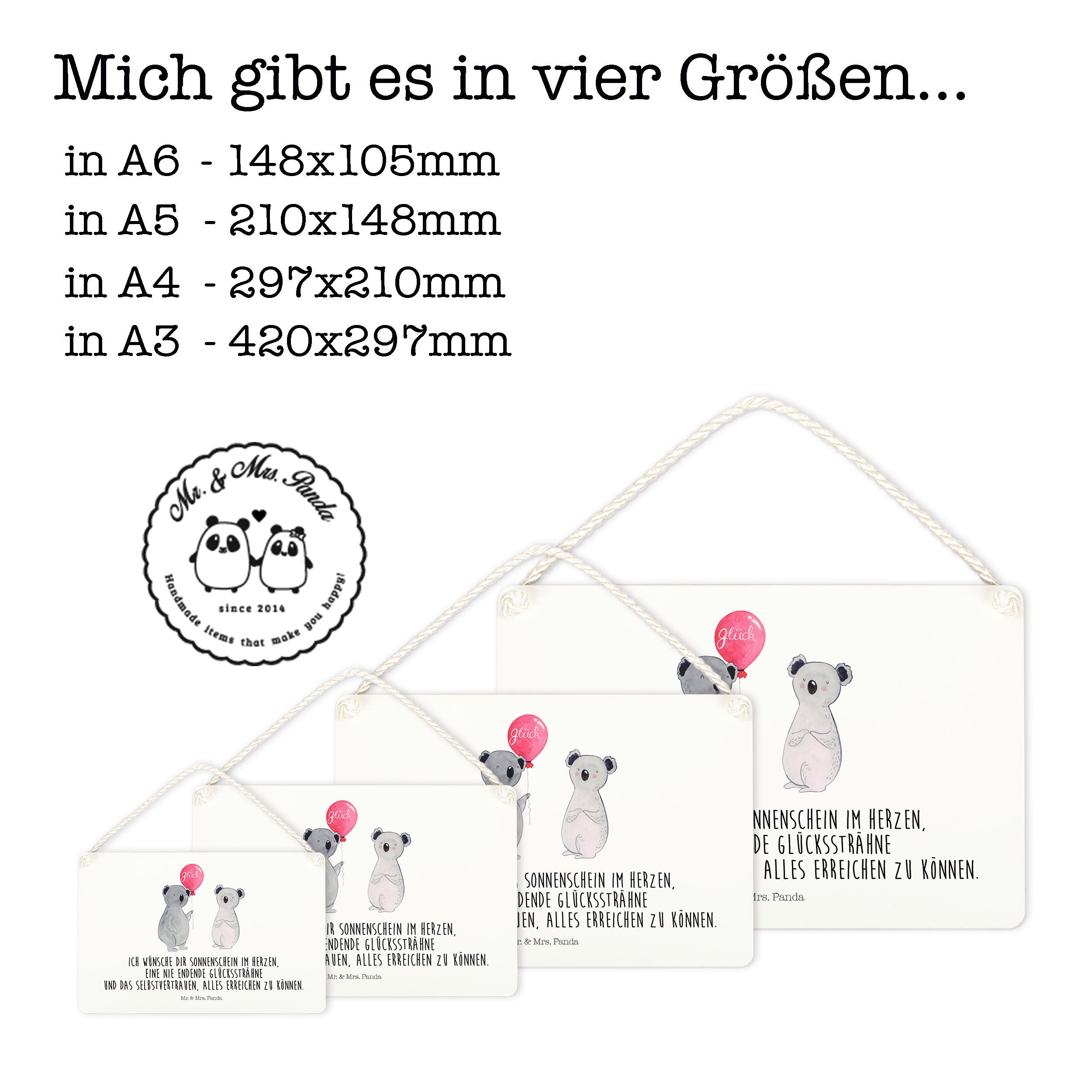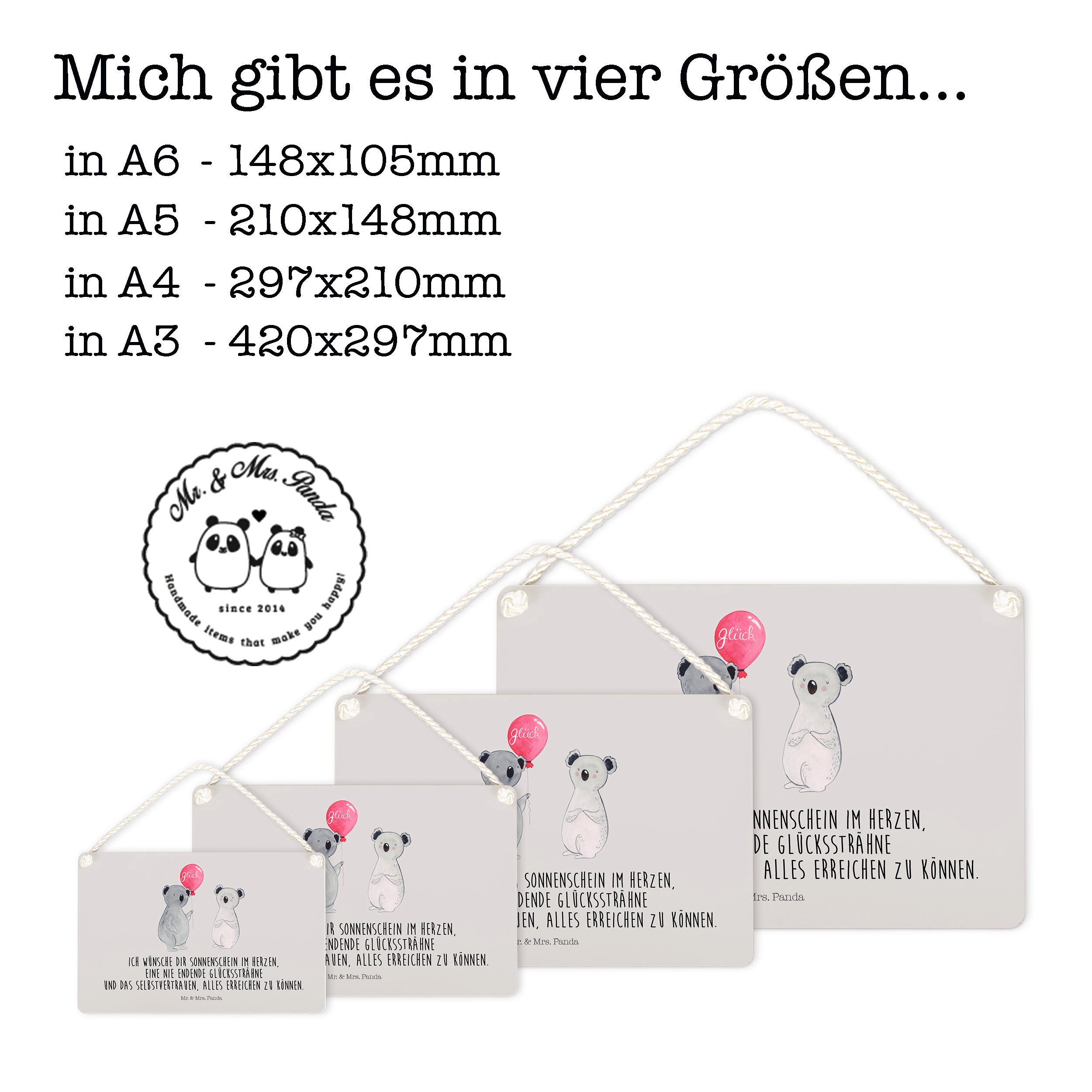 Deko Schild Koala Luftballon - DIN A5 - mit Spruch - Weiß