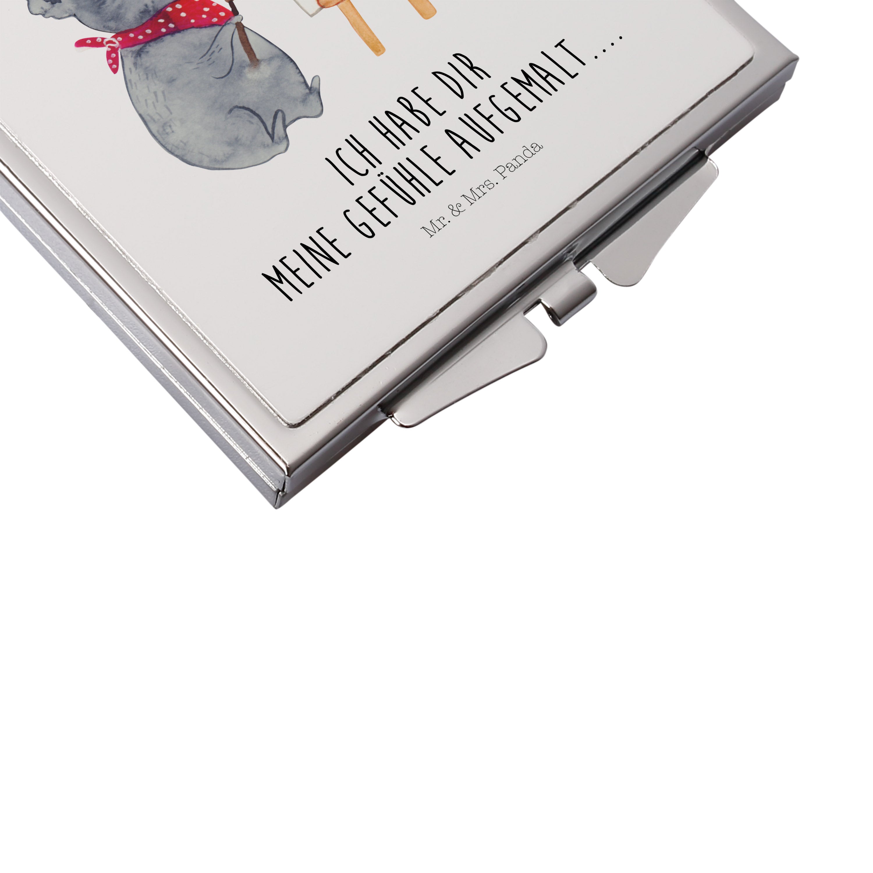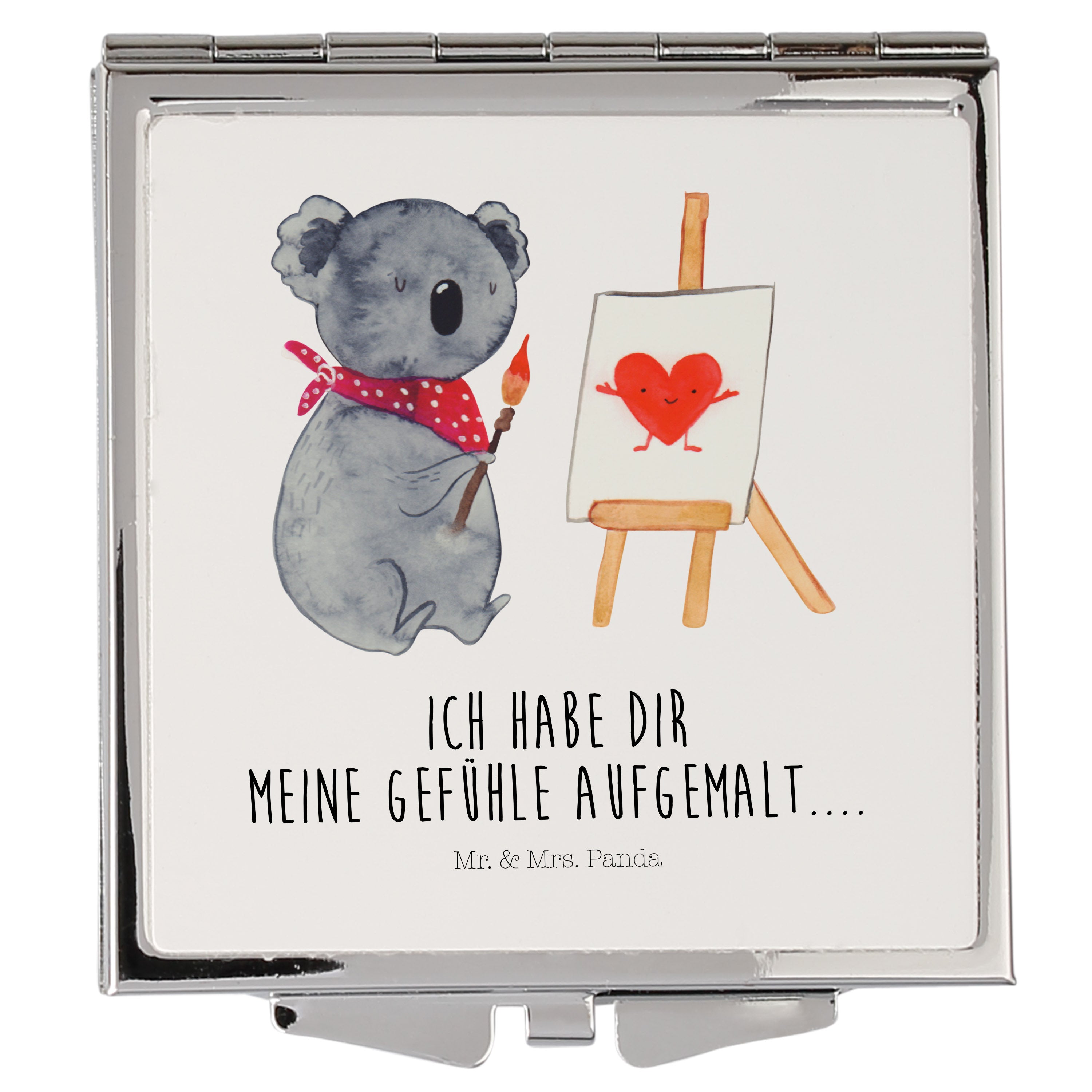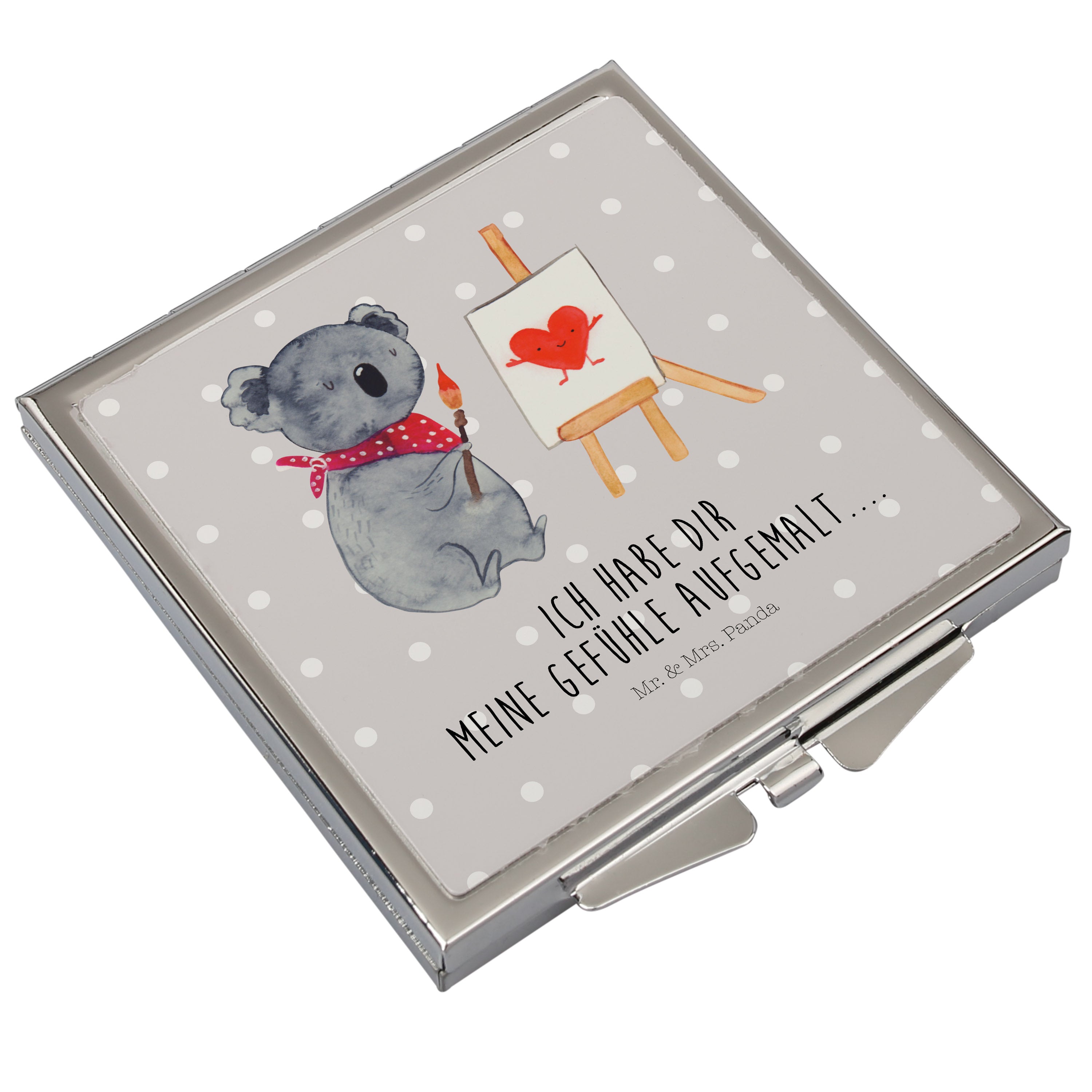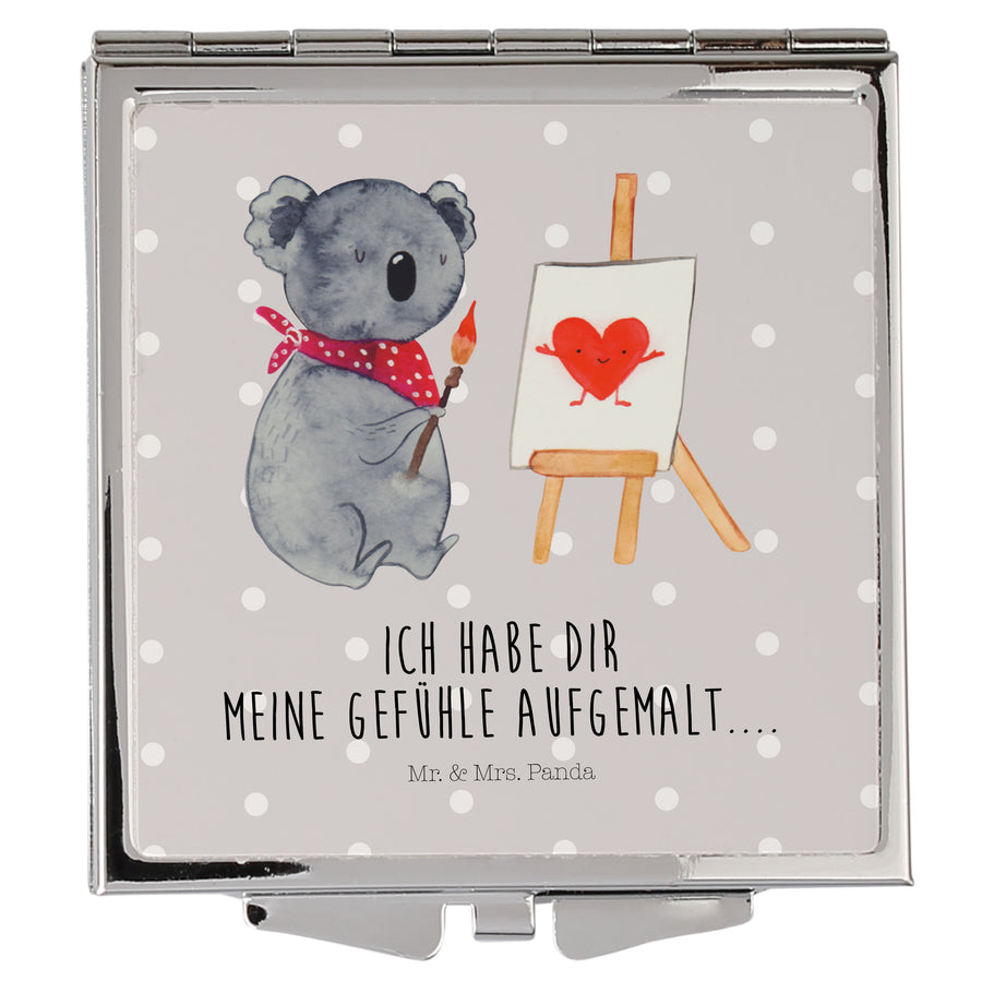 Handtaschenspiegel quadratisch Koala Künstler - mit Spruch - Grau Pastell