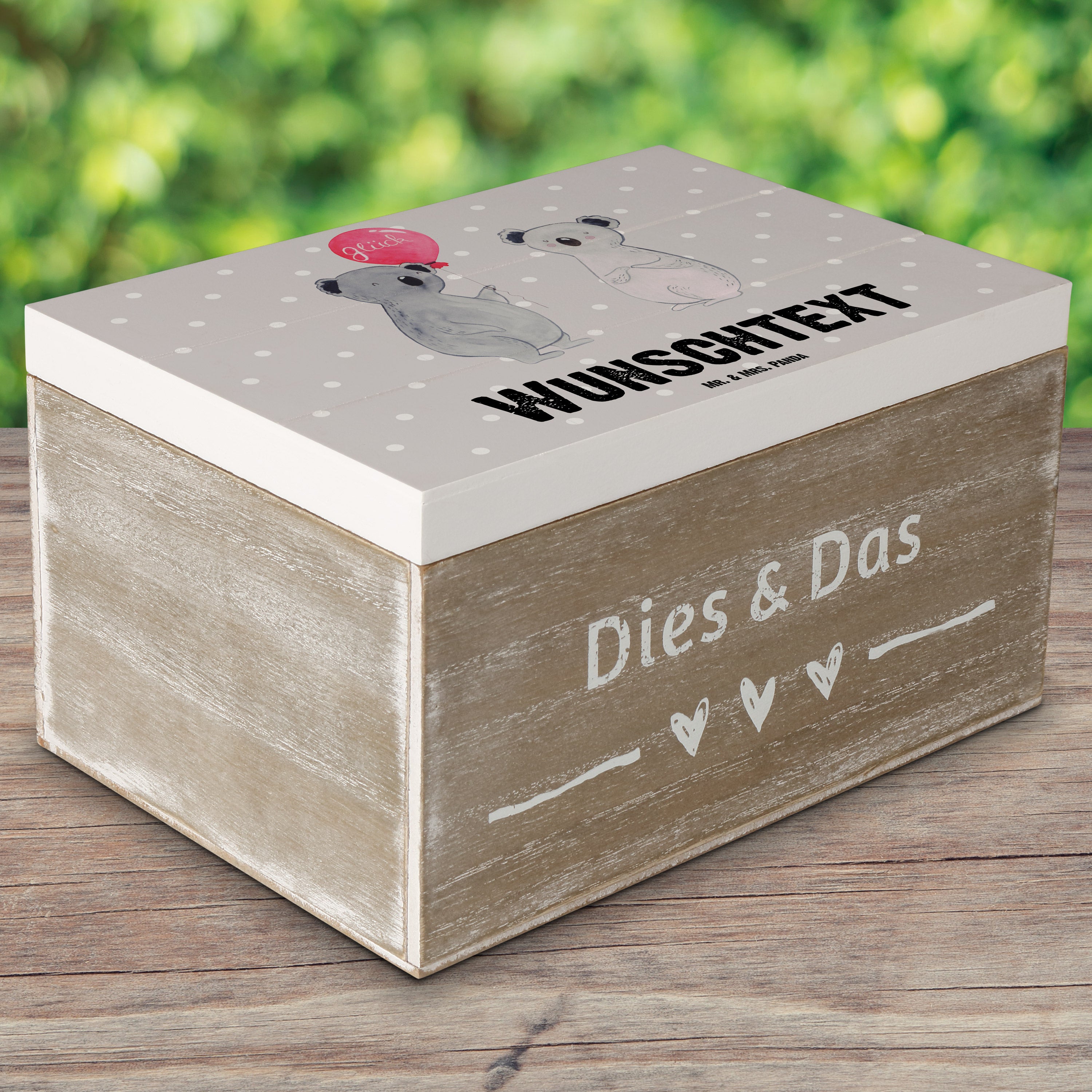 Personalisierte Holzkiste Koala Luftballon - 25 x 18 cm - Grau Pastell