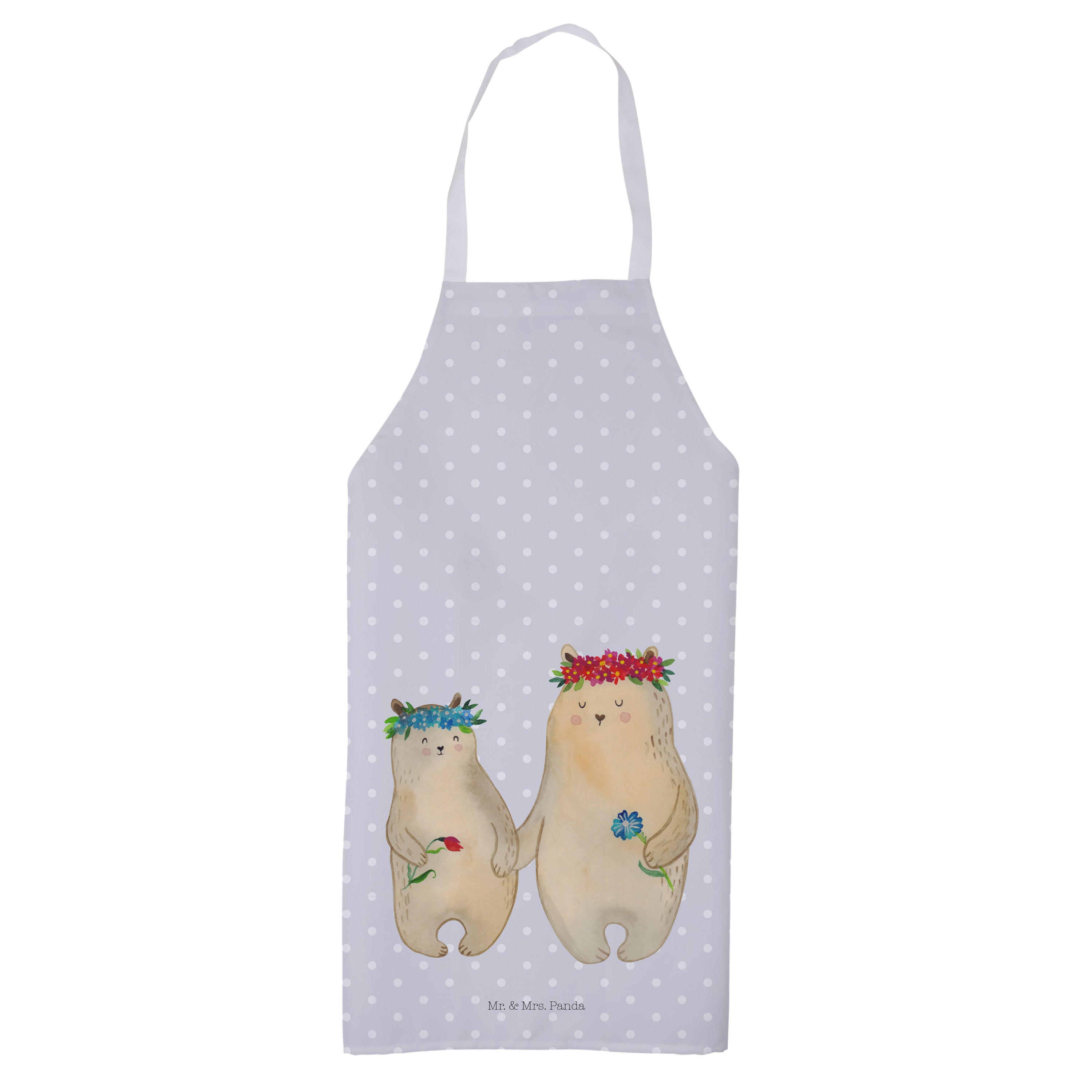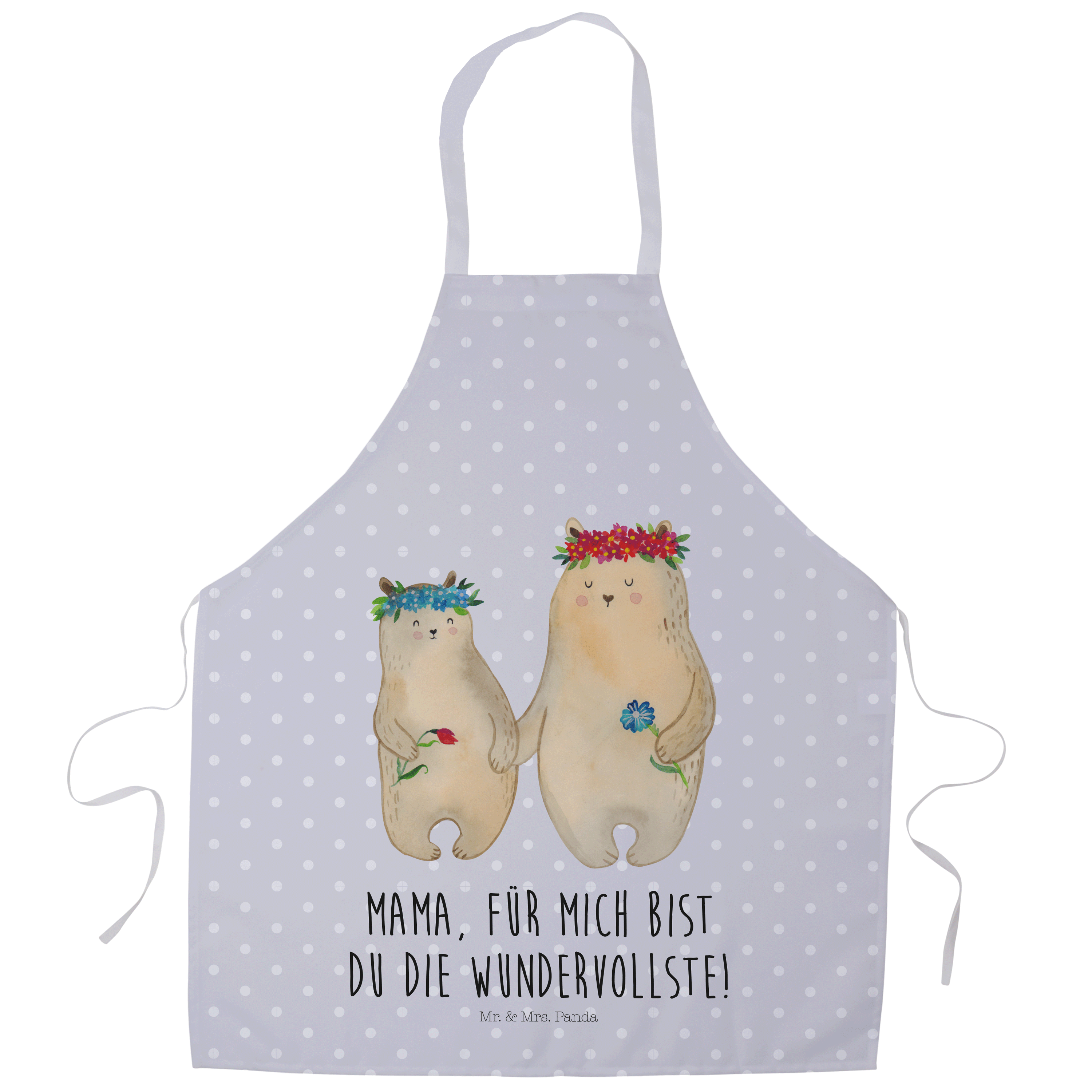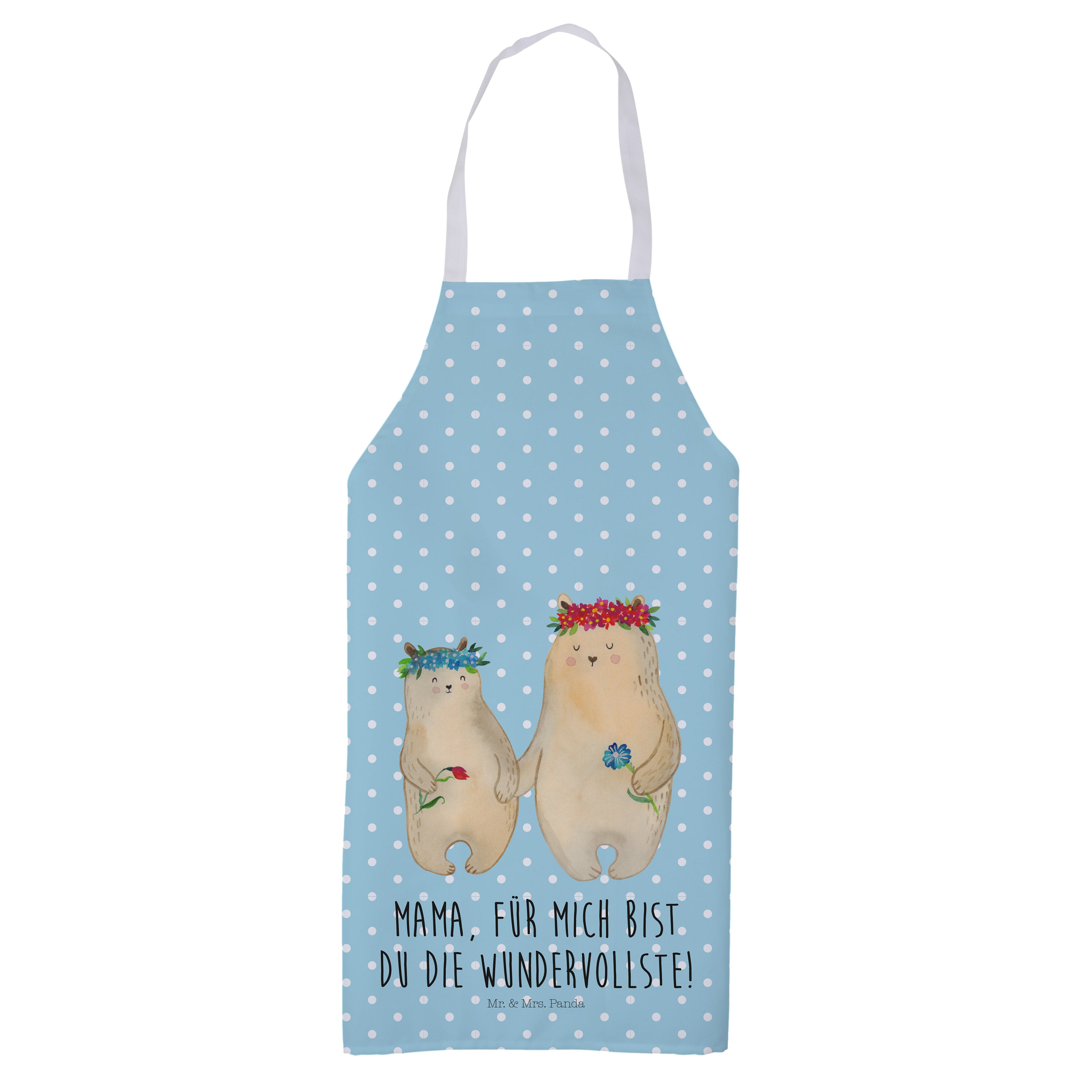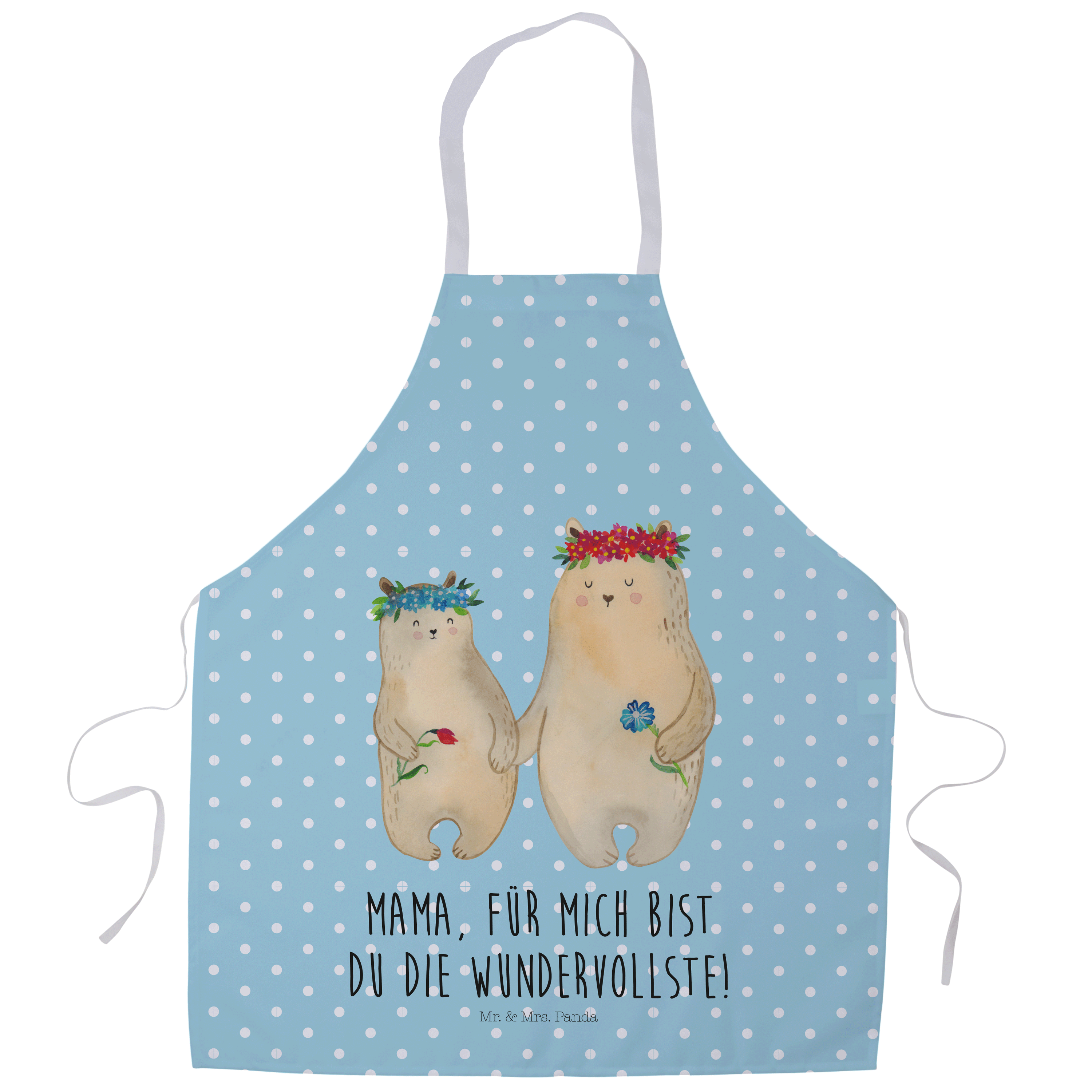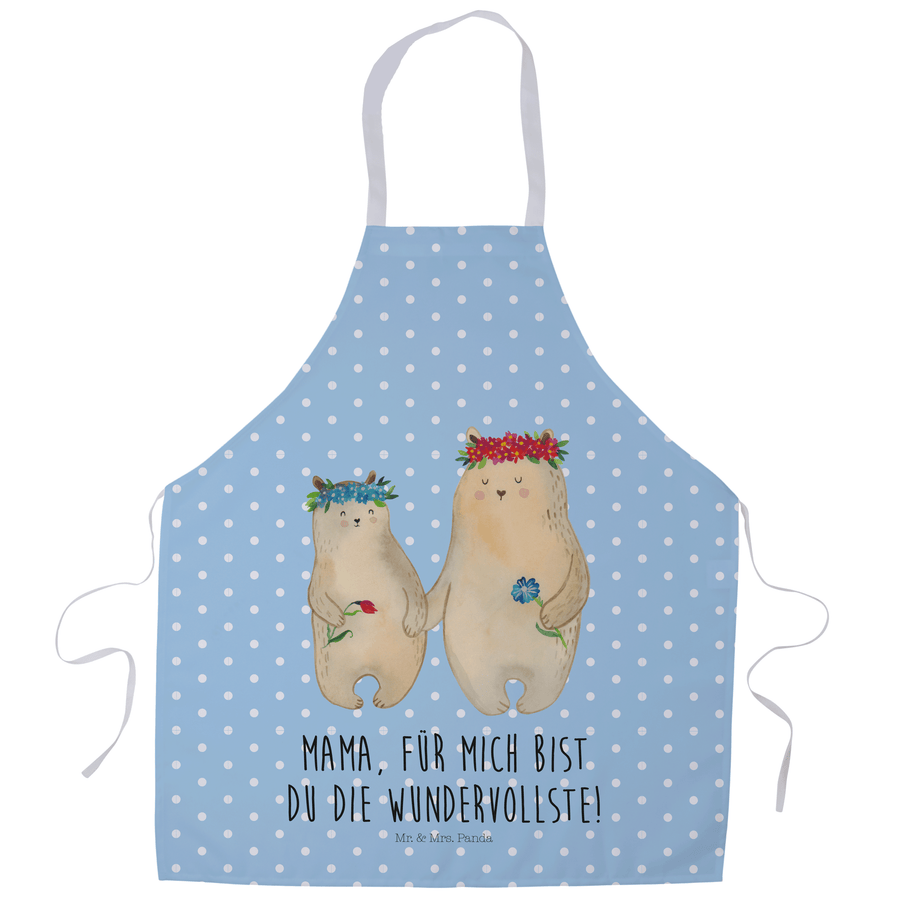 Kochschürze Bären mit Blumenkranz - mit Spruch - Blau Pastell