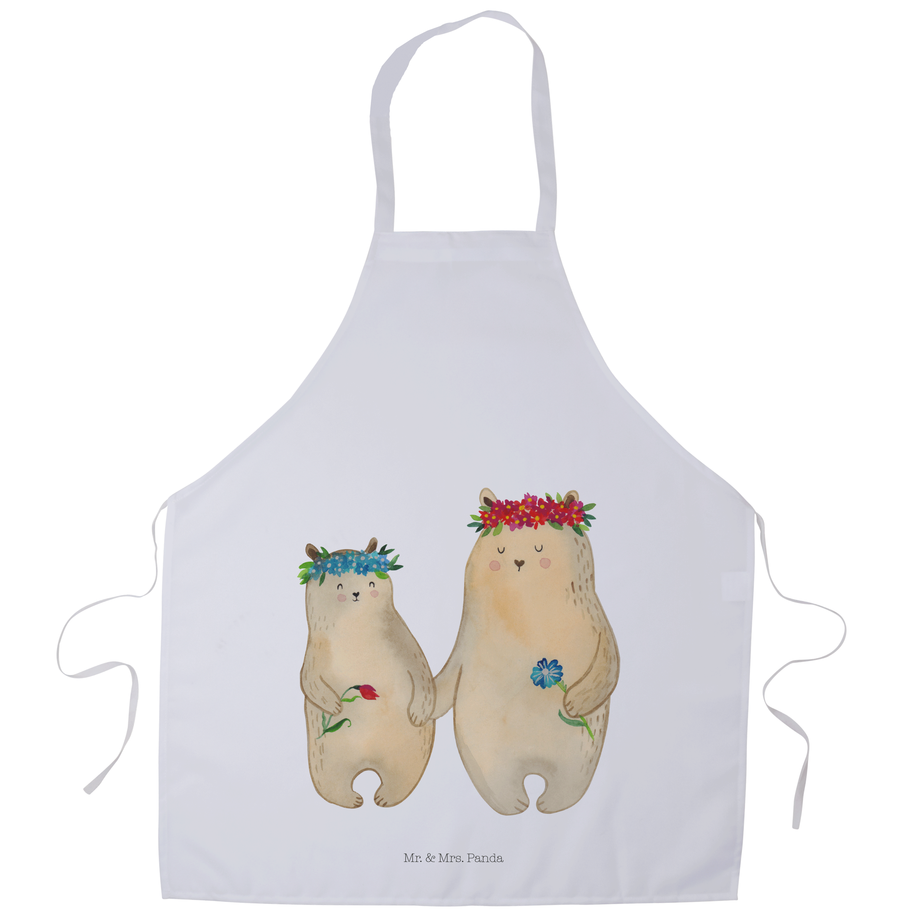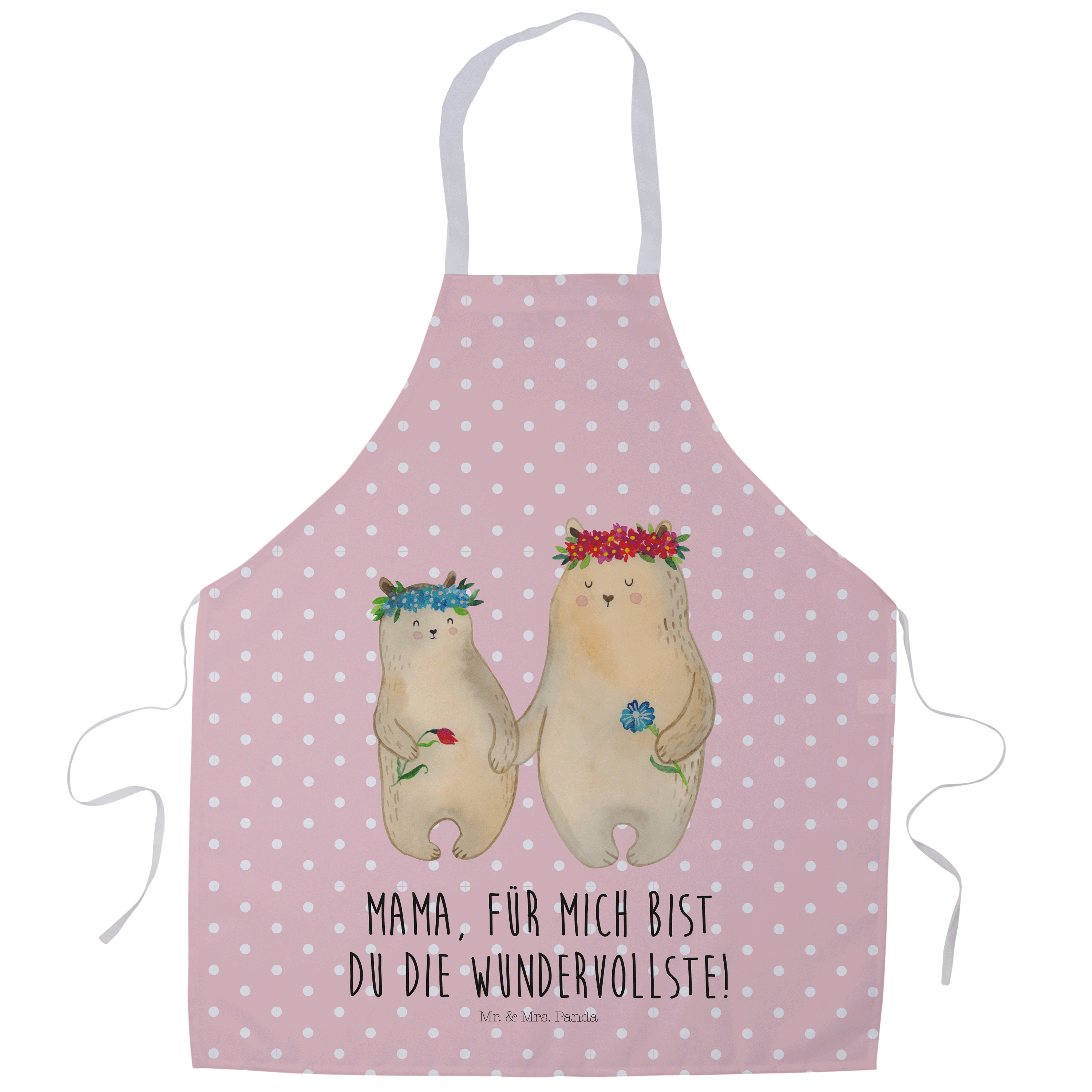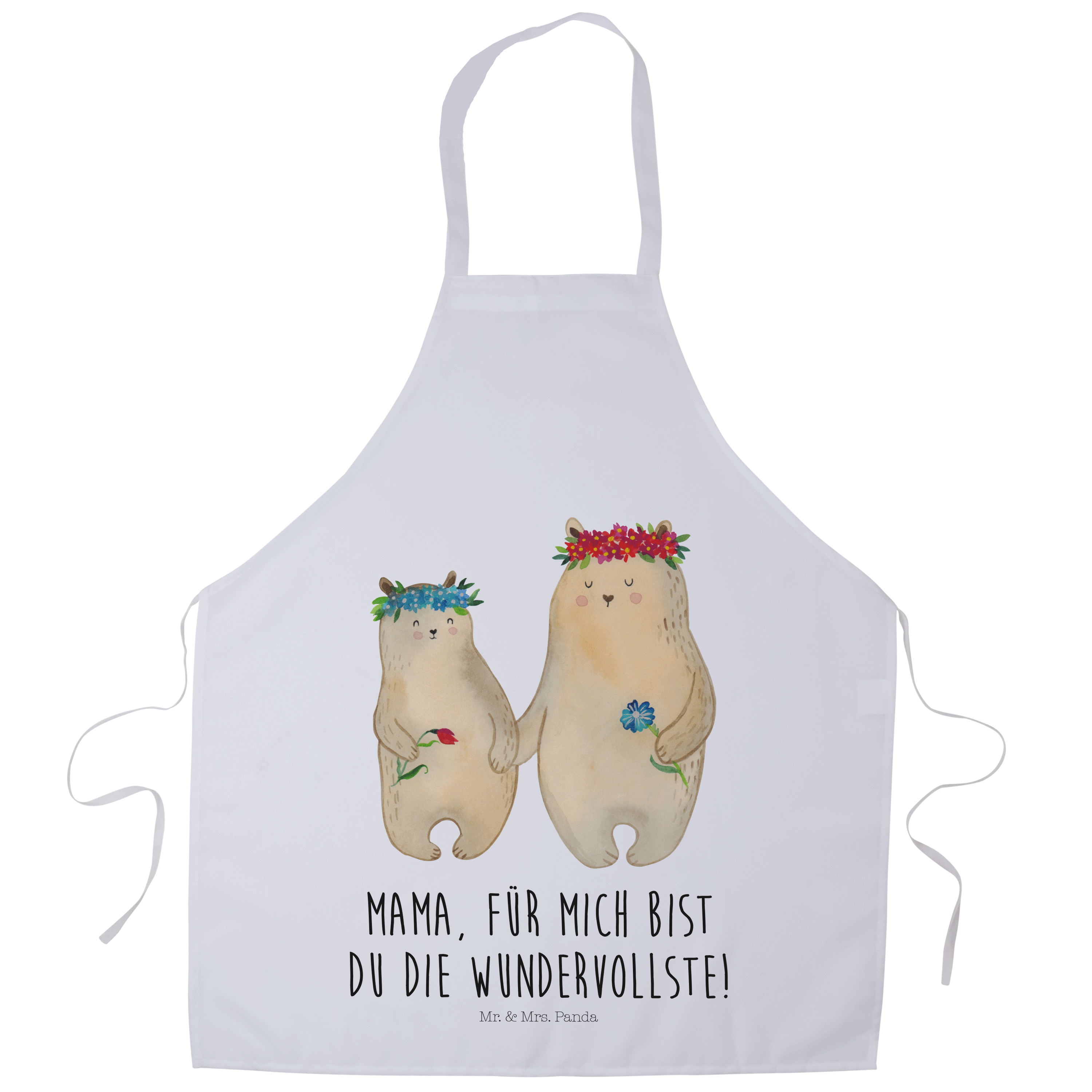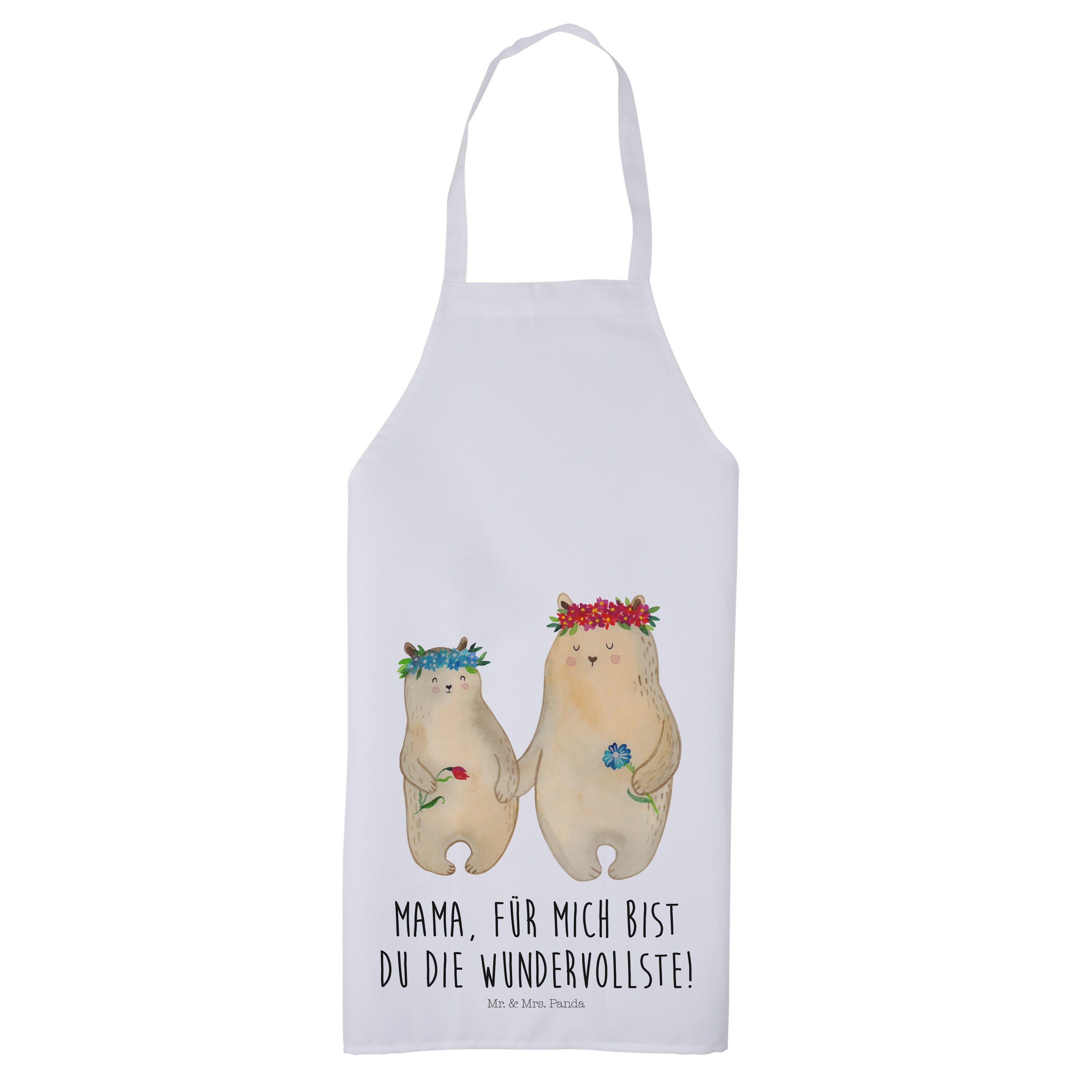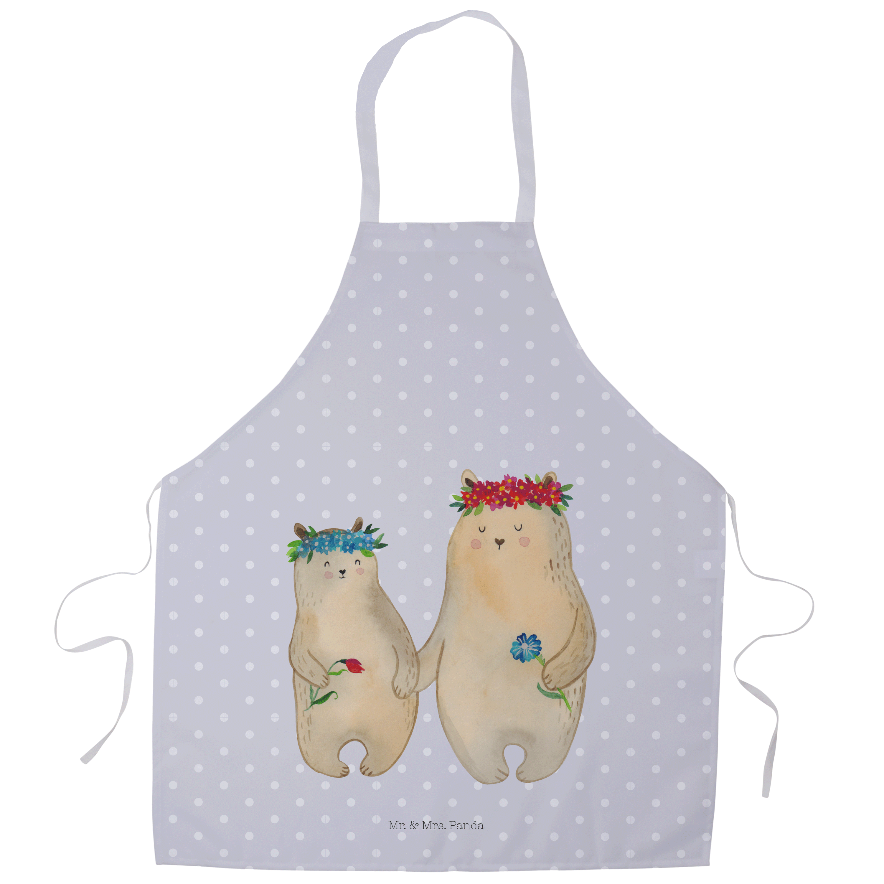 Kochschürze Bären mit Blumenkranz - mit Spruch - Blau Pastell