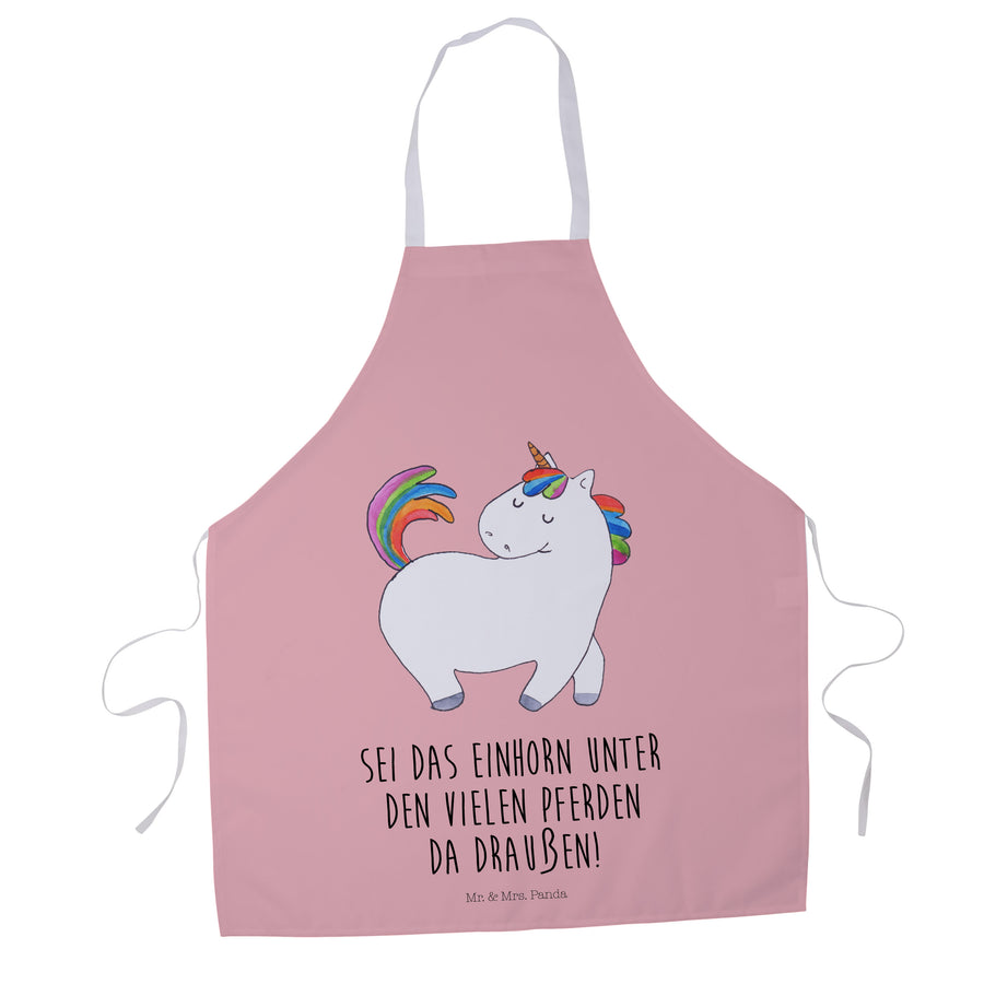 Kochschürze Einhorn stolzierend - mit Spruch - Rot Pastell