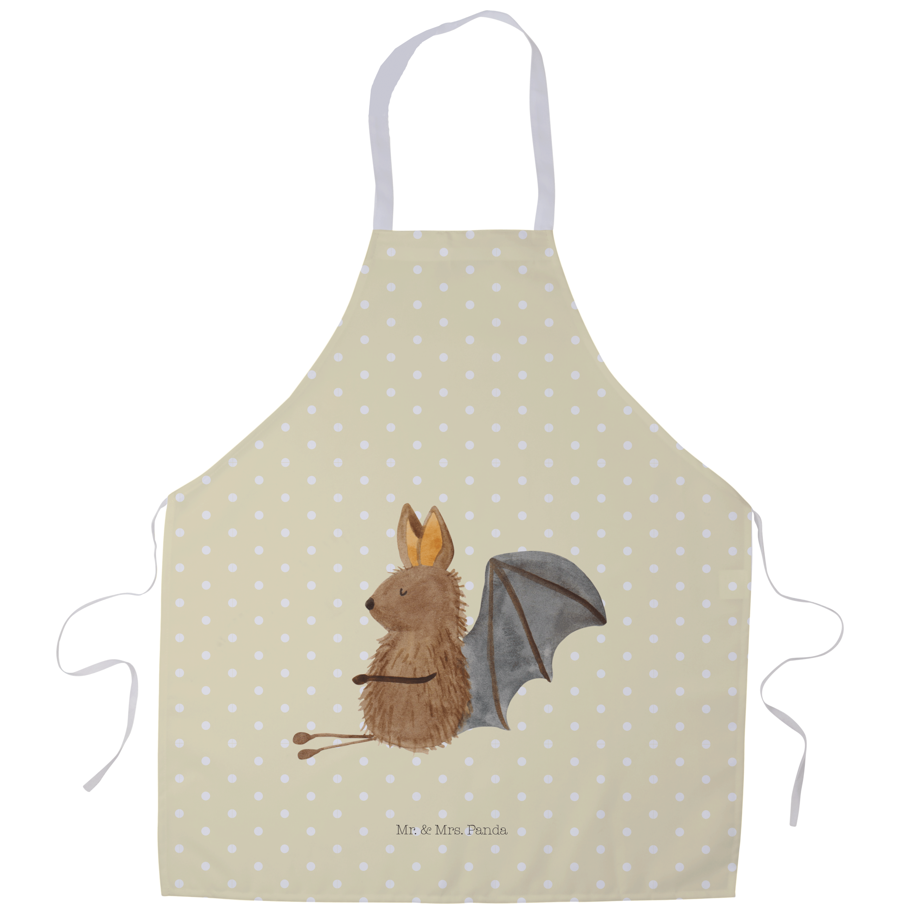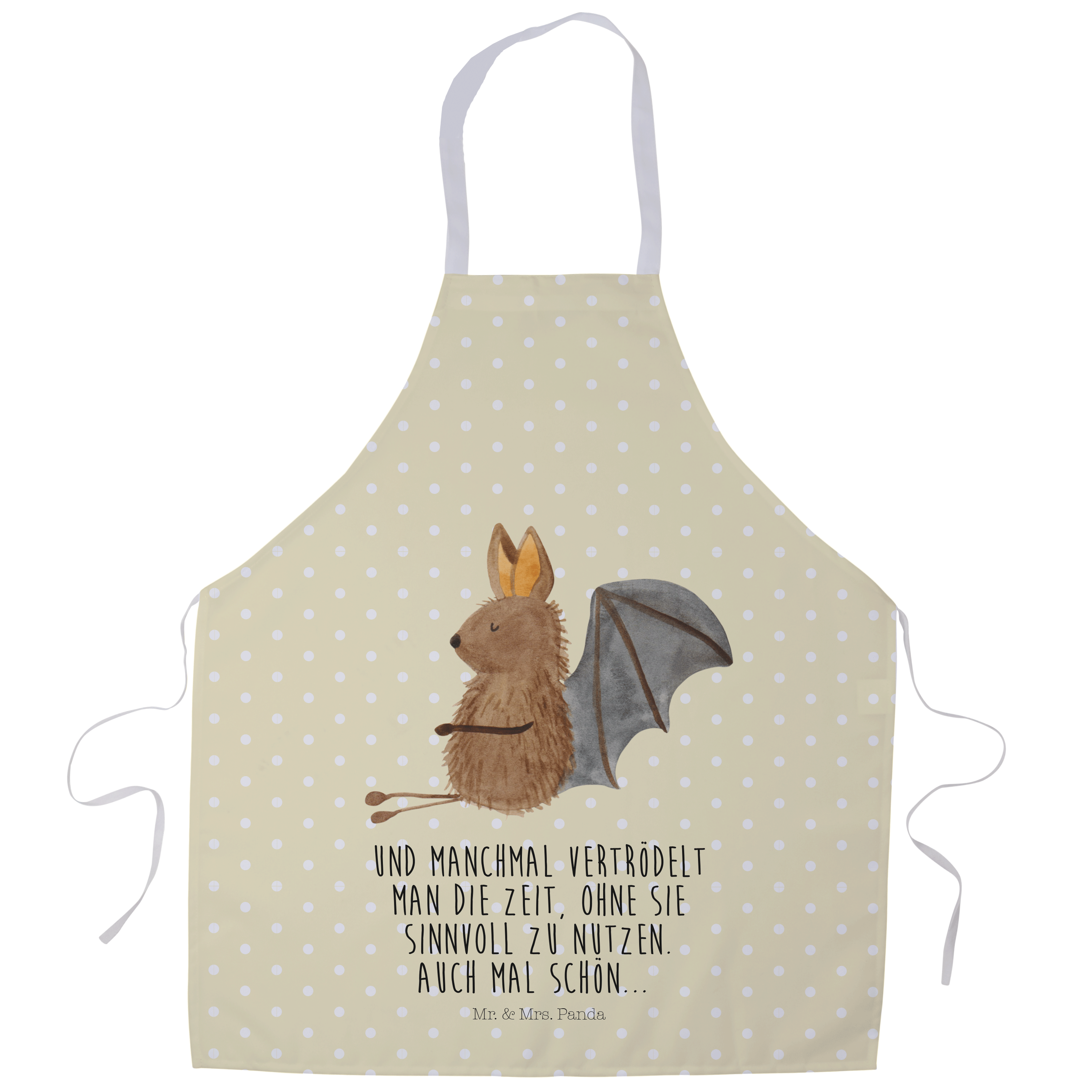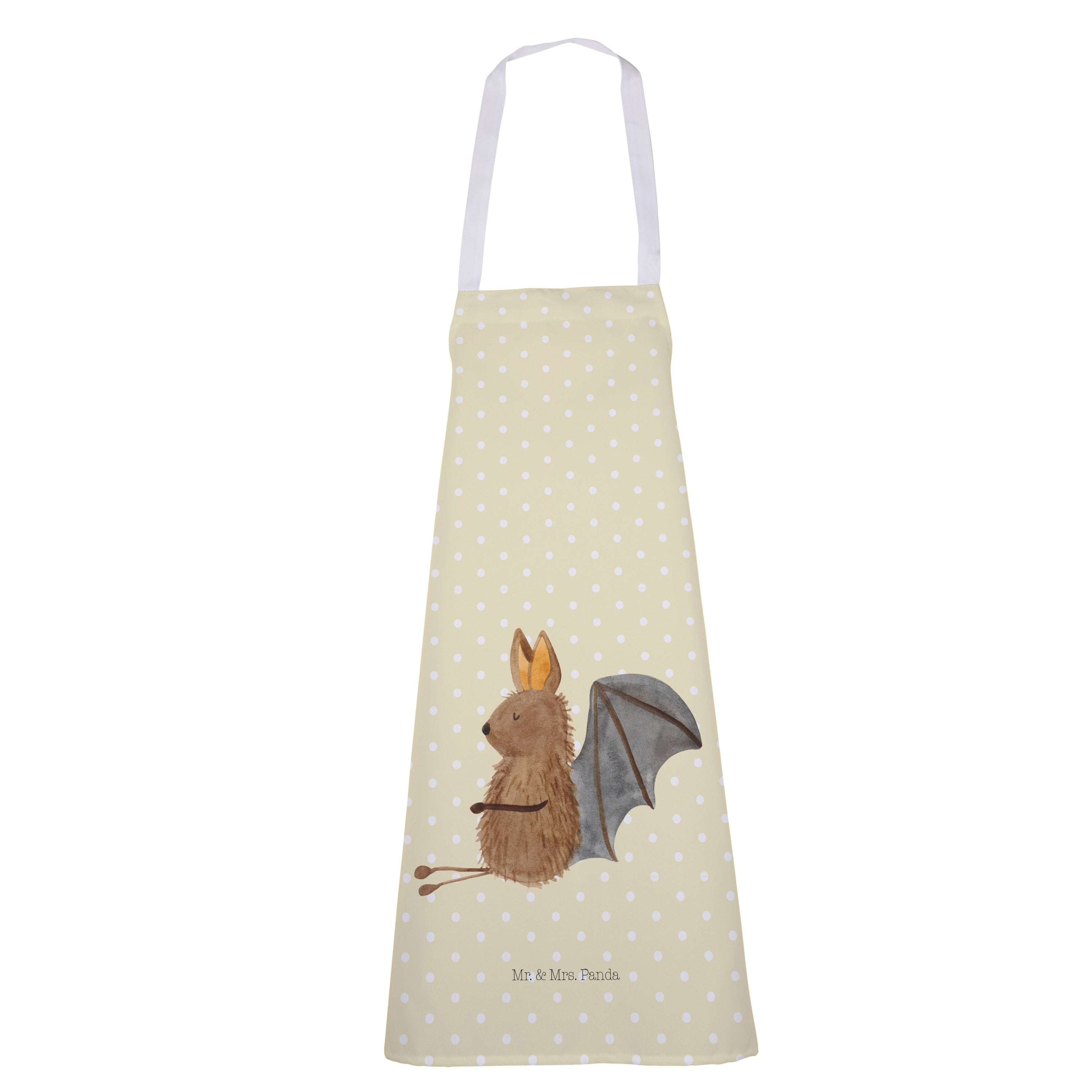 Kochschürze Fledermaus sitzend - mit Spruch - Gelb Pastell