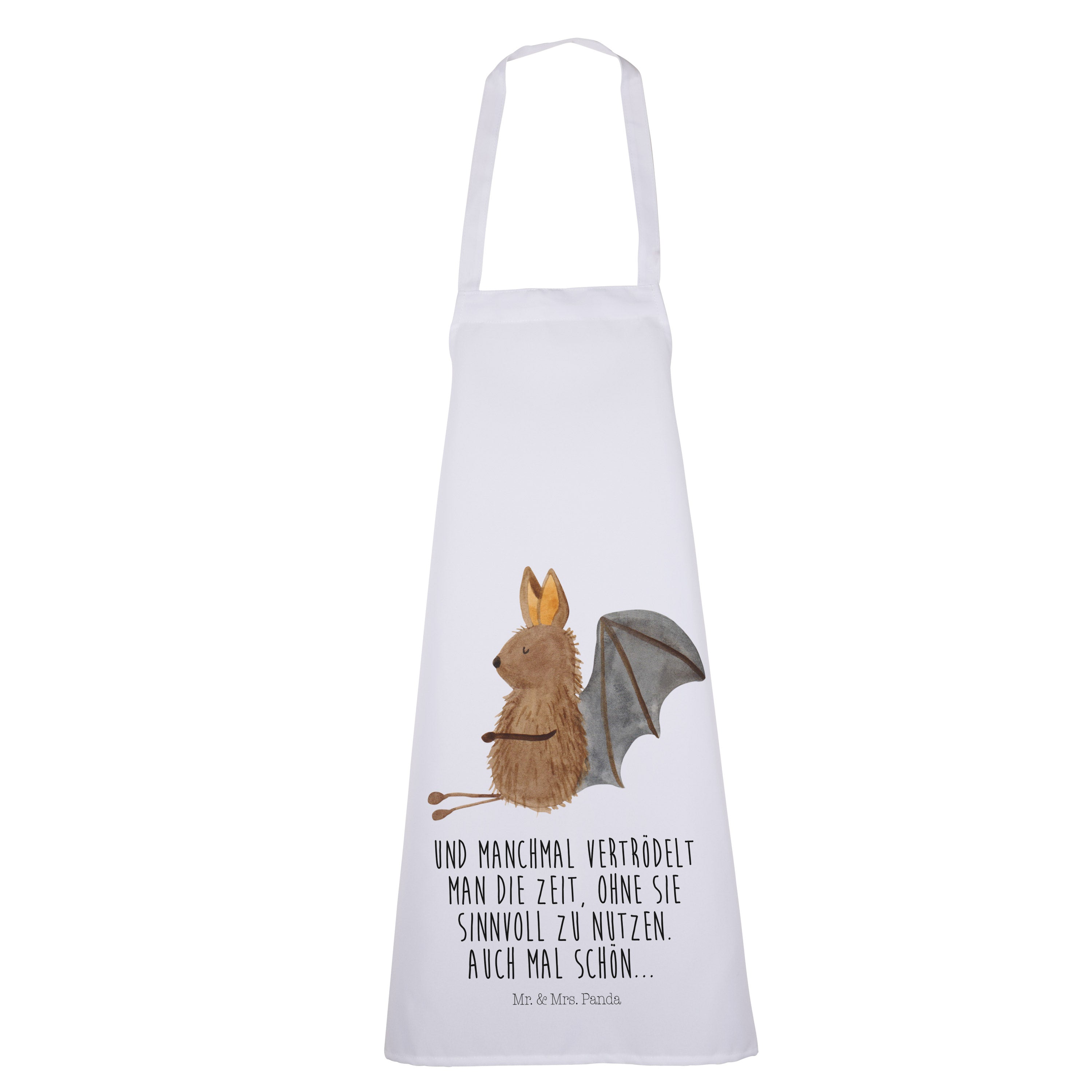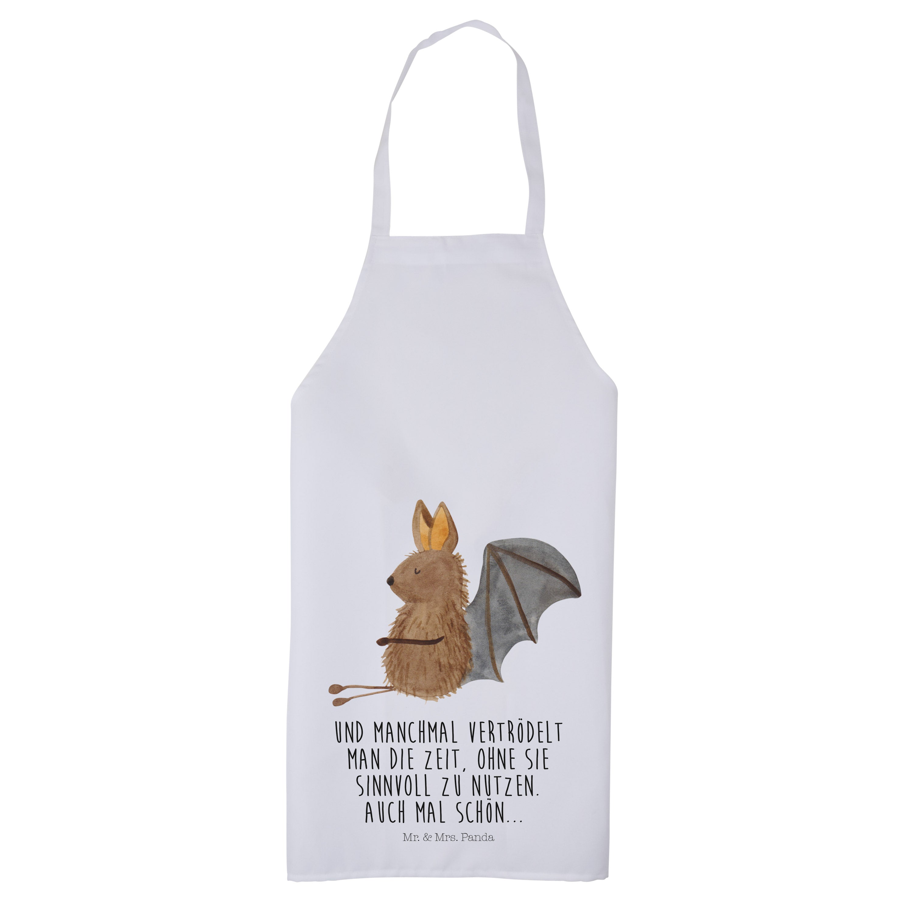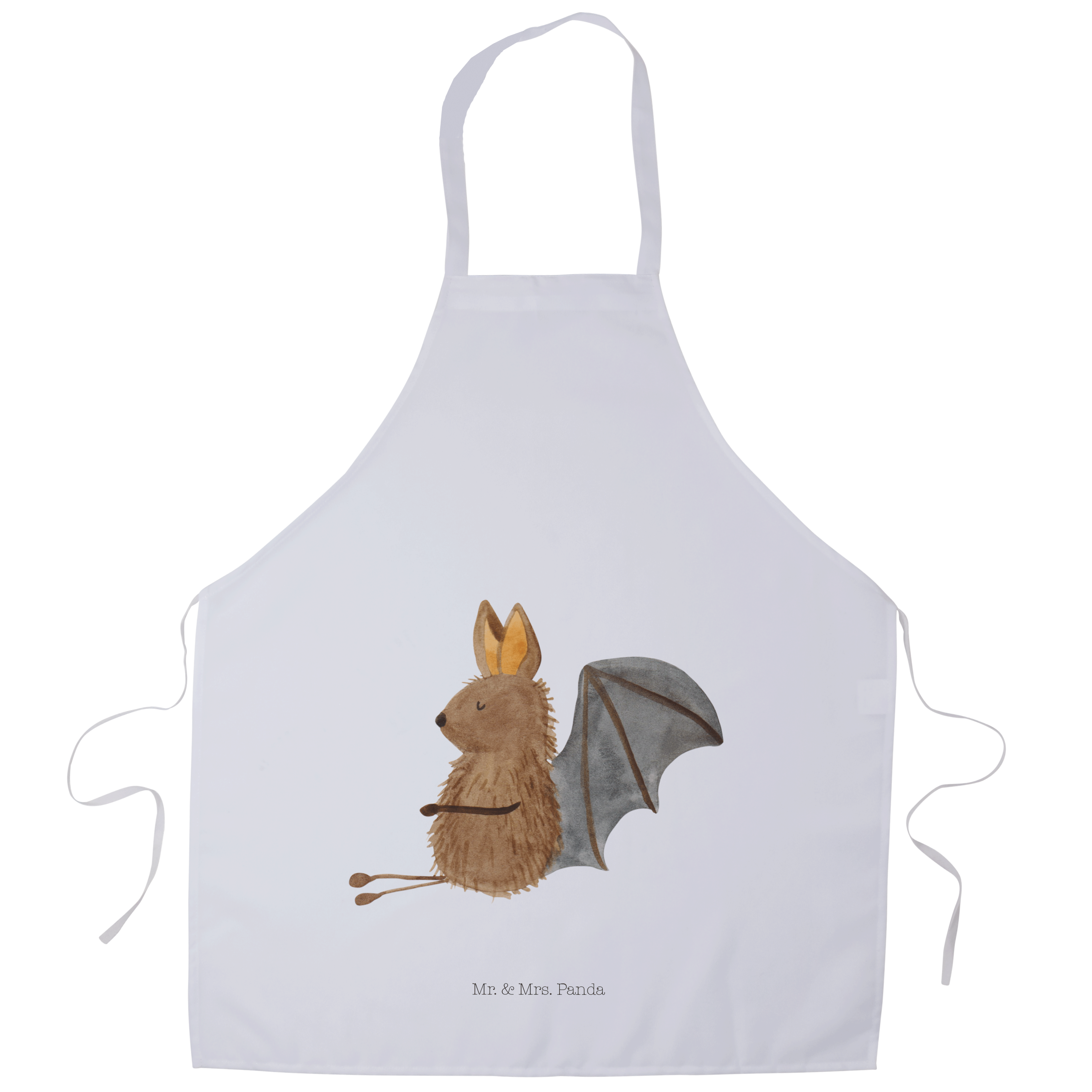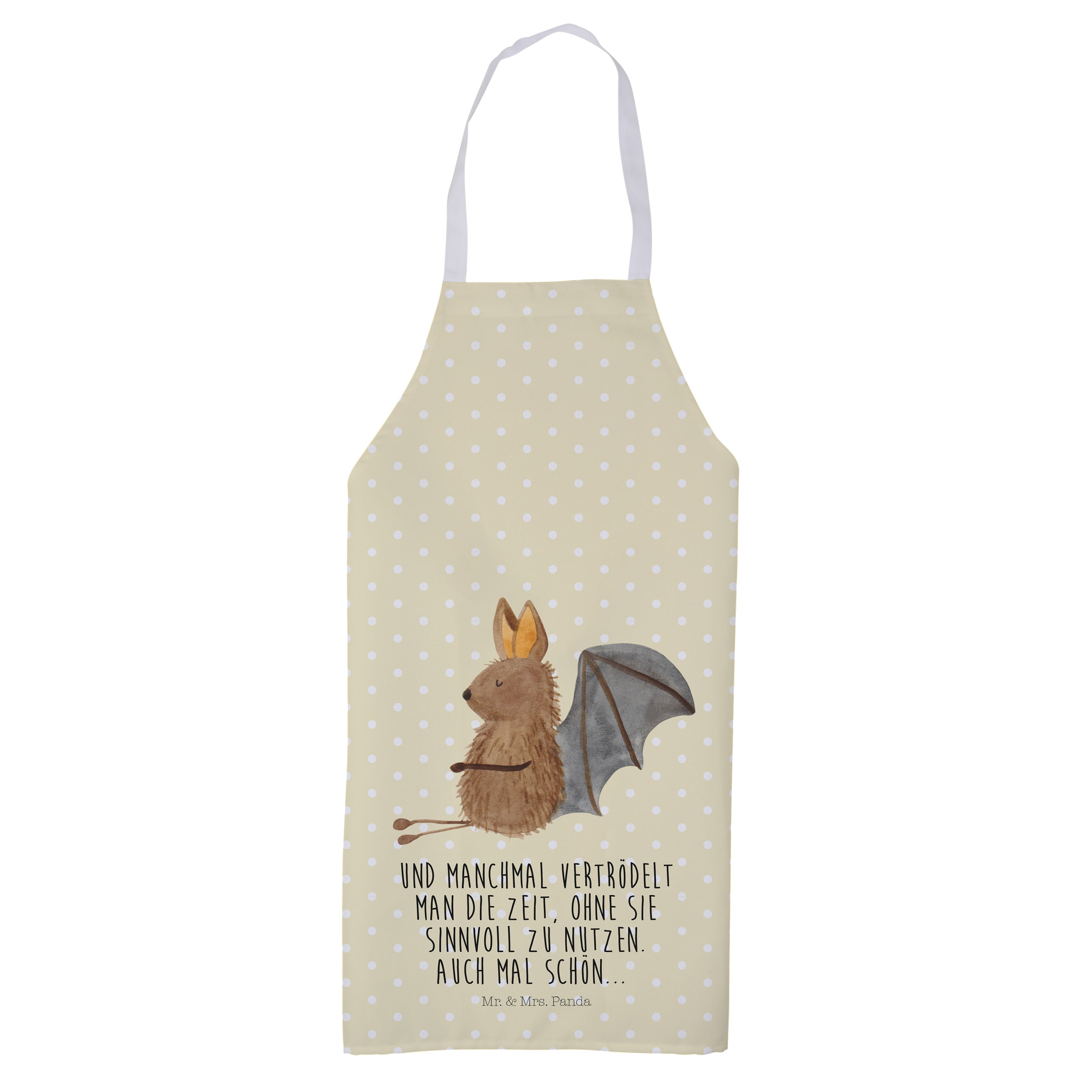Kochschürze Fledermaus sitzend - mit Spruch - Gelb Pastell