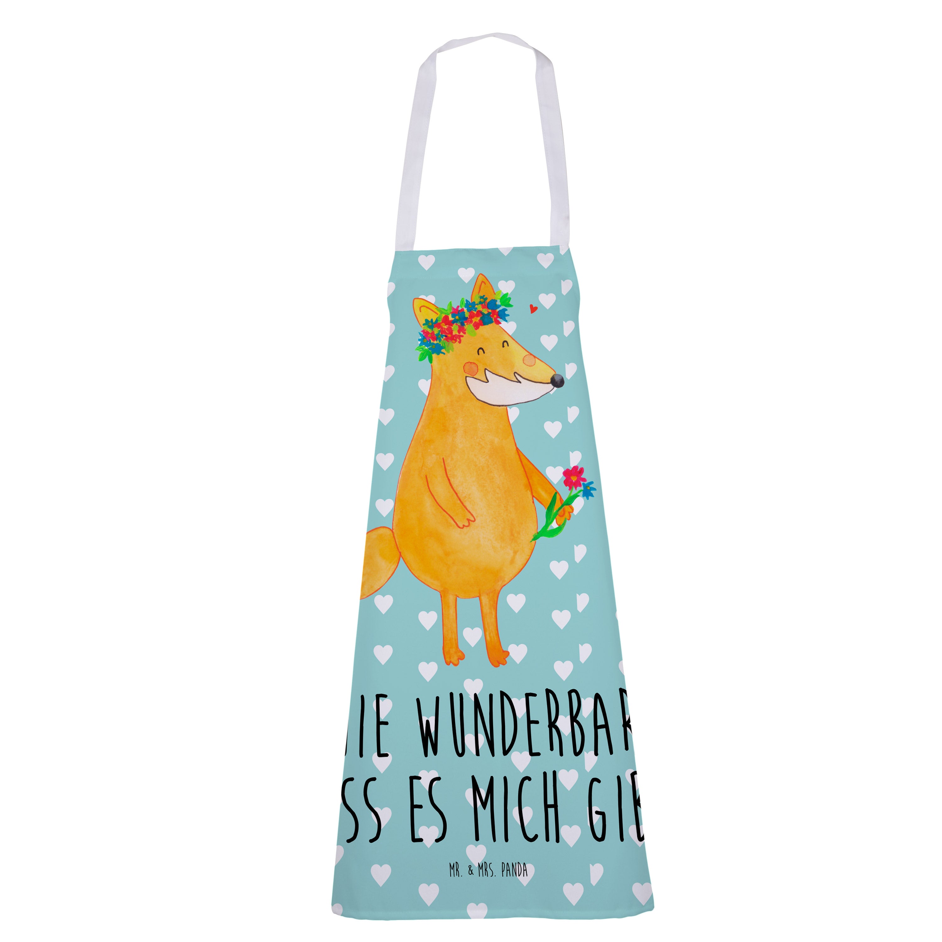 Kochschürze Fuchs Blumenliebe - mit Spruch - Türkis Pastell