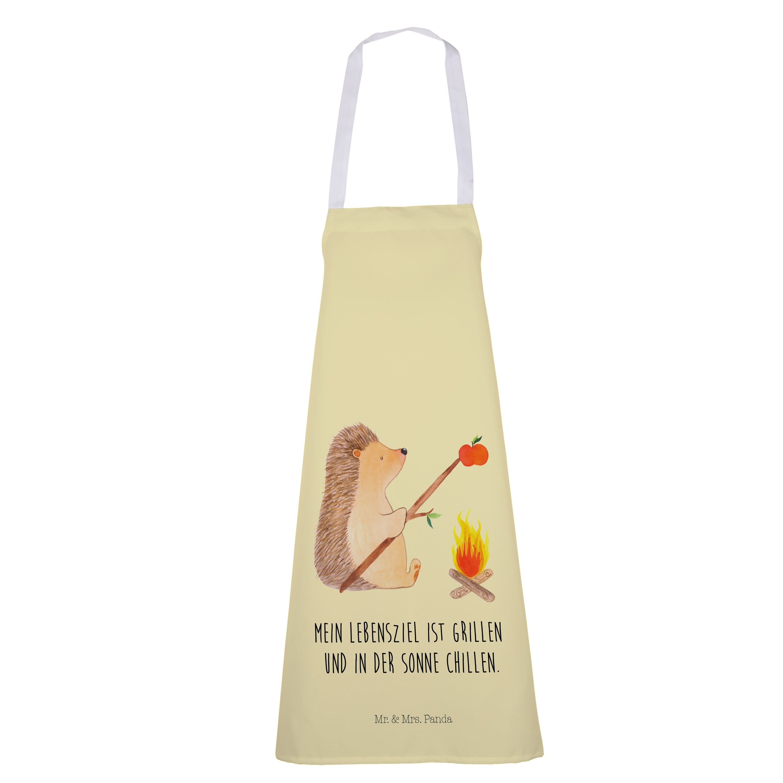 Kochschürze Igel grillt - mit Spruch - Gelb Pastell