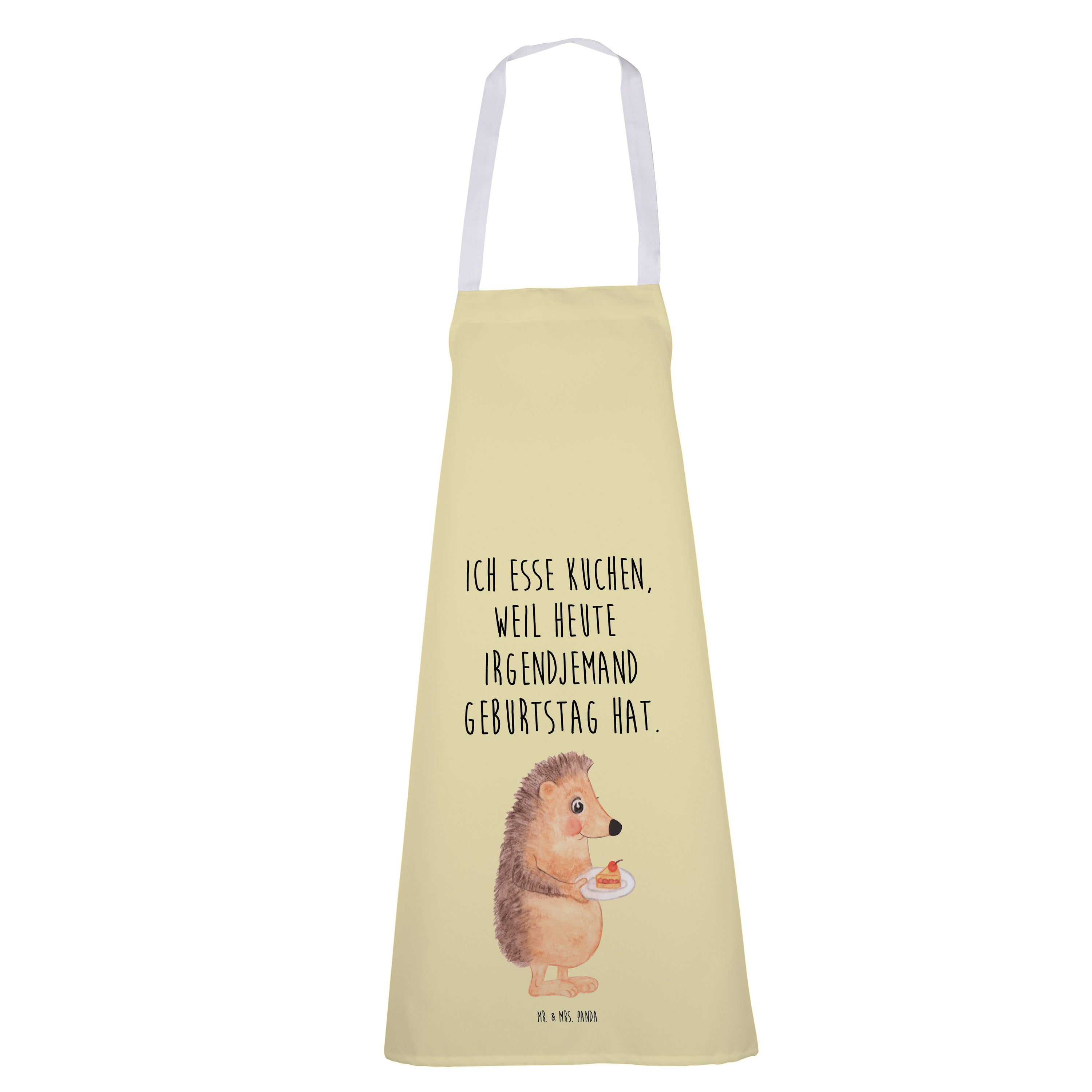 Kochschürze Igel mit Kuchenstück - mit Spruch - Gelb Pastell