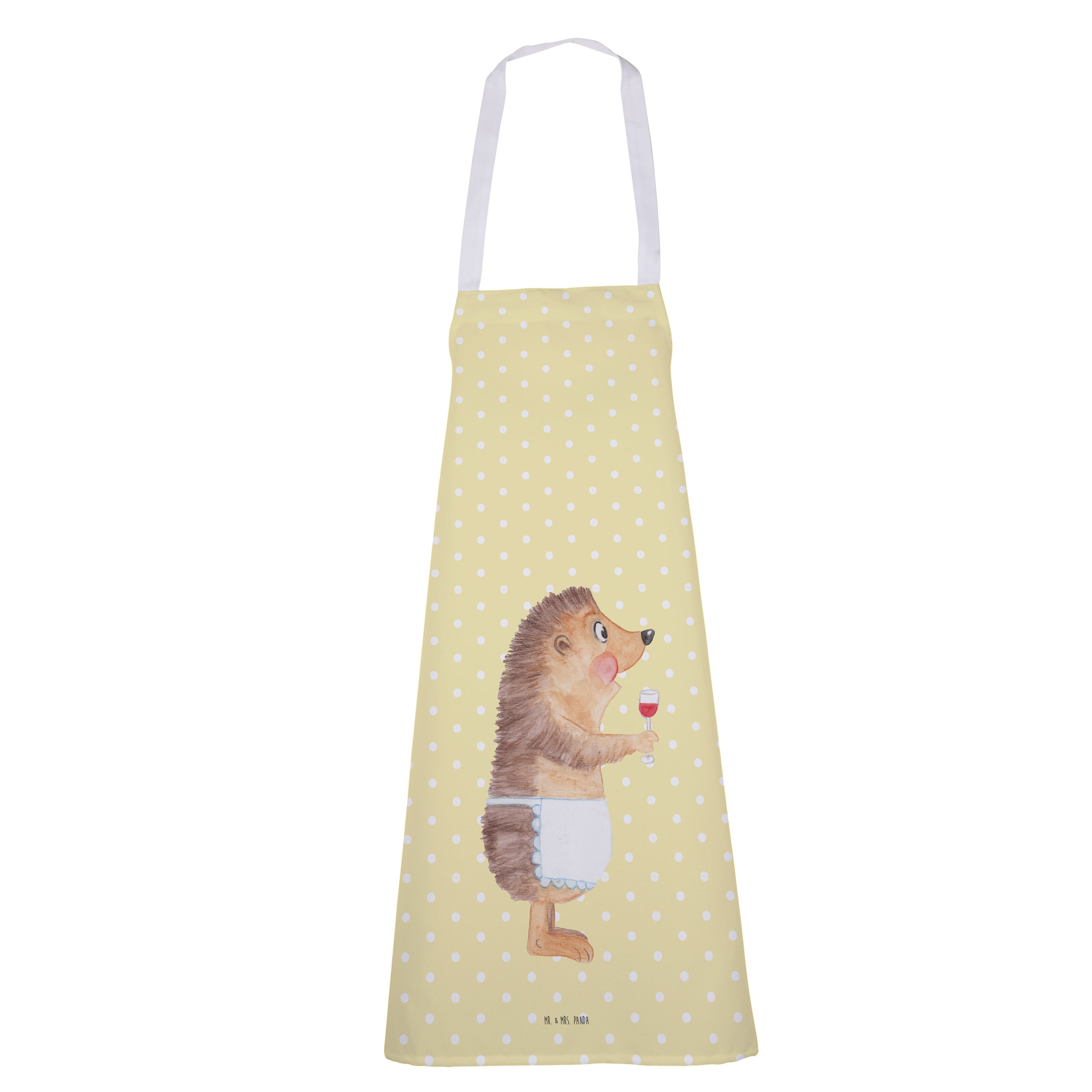 Kochschürze Igel mit Wein - mit Spruch - Gelb Pastell