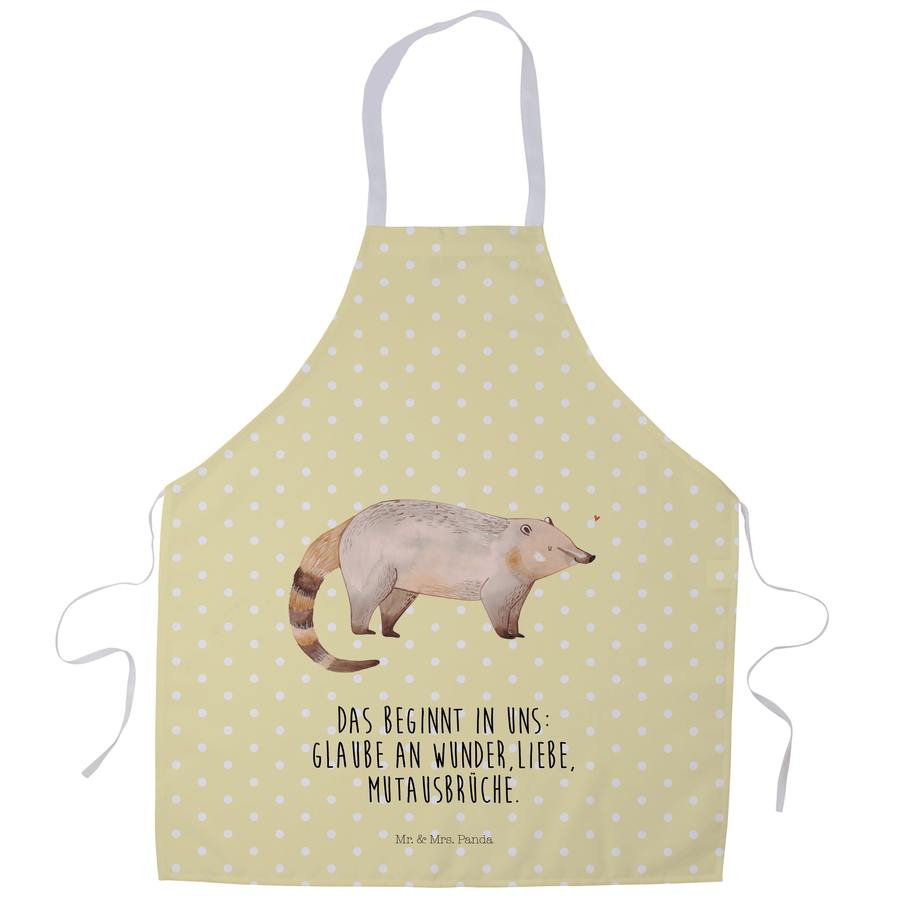 Kochschürze Nasenbär - mit Spruch - Gelb Pastell
