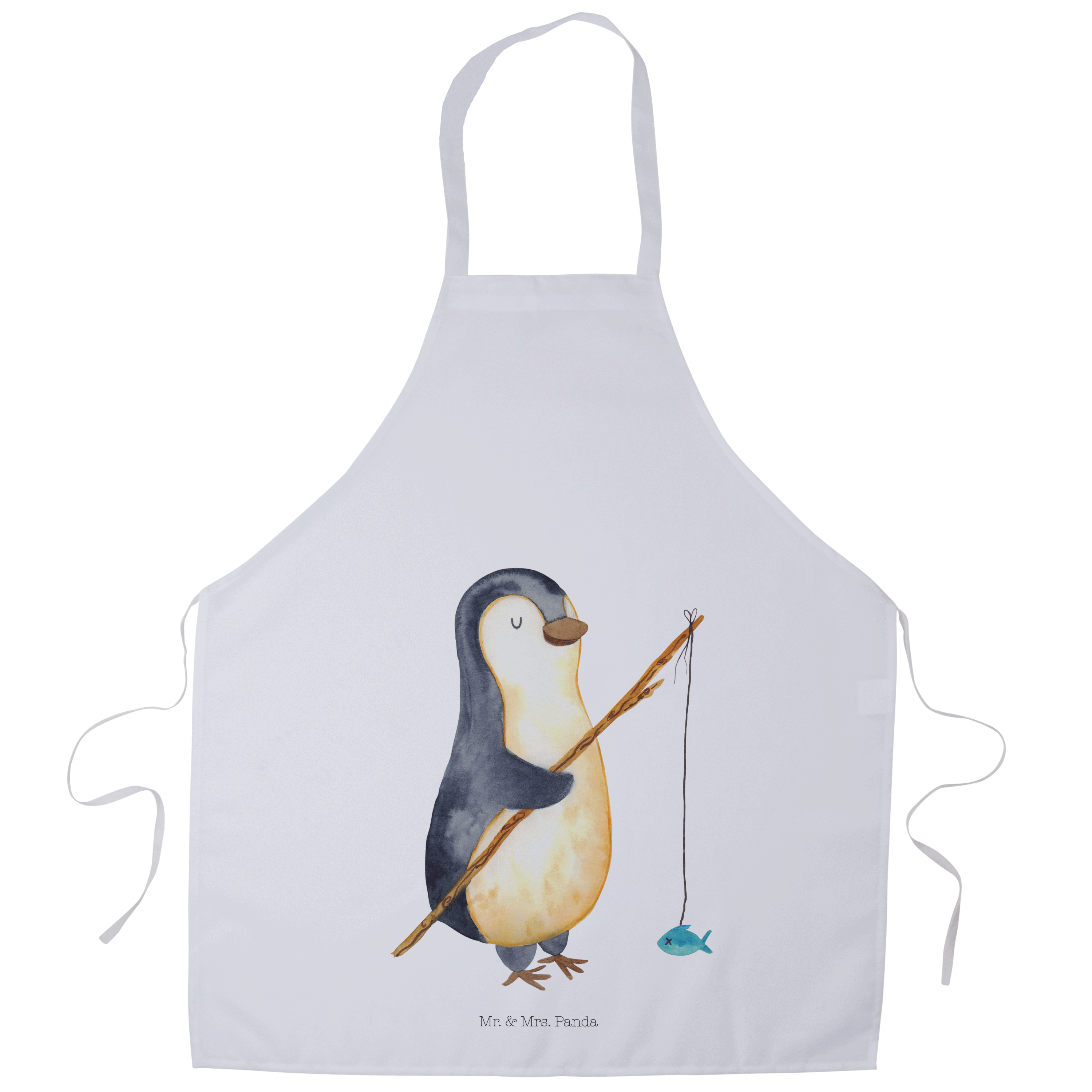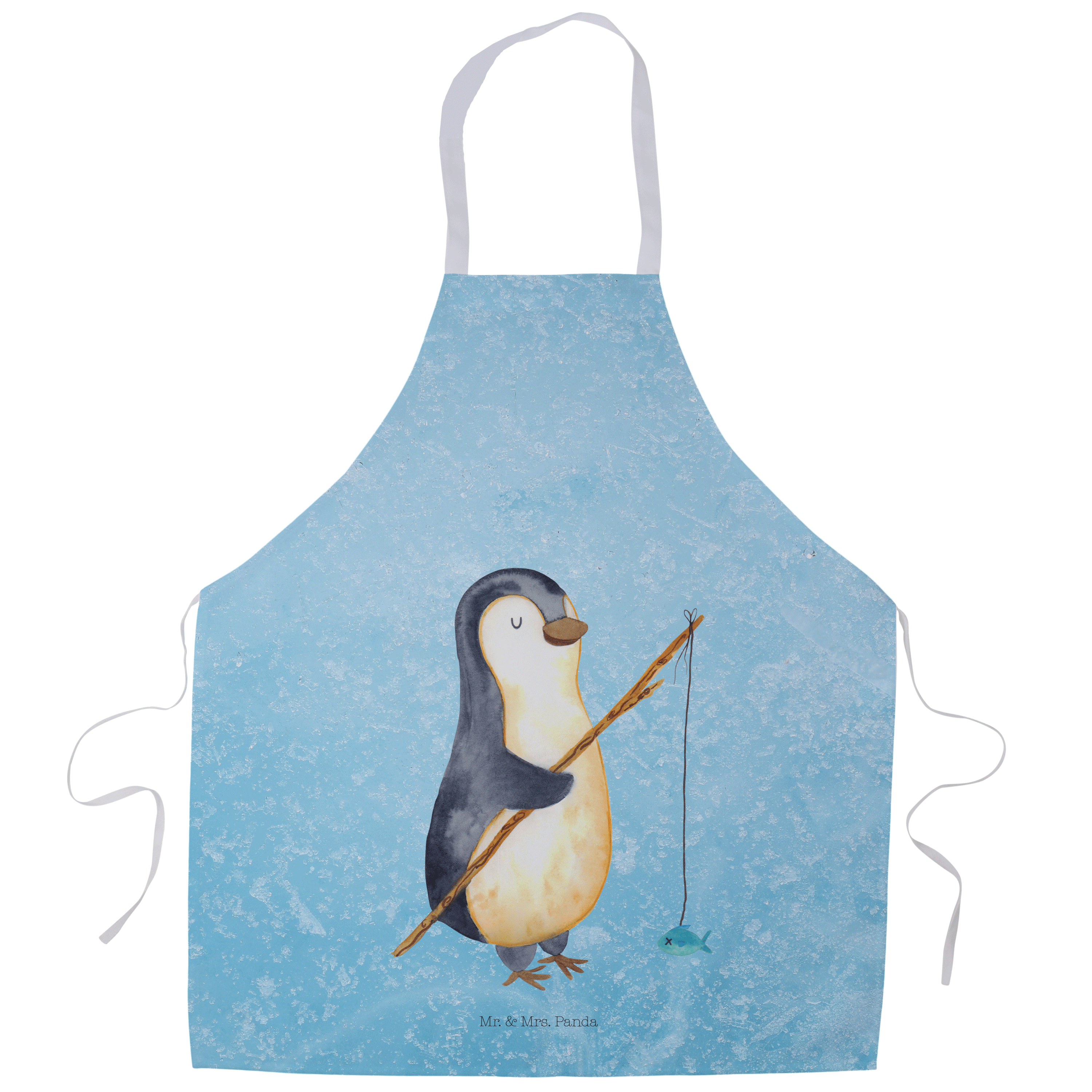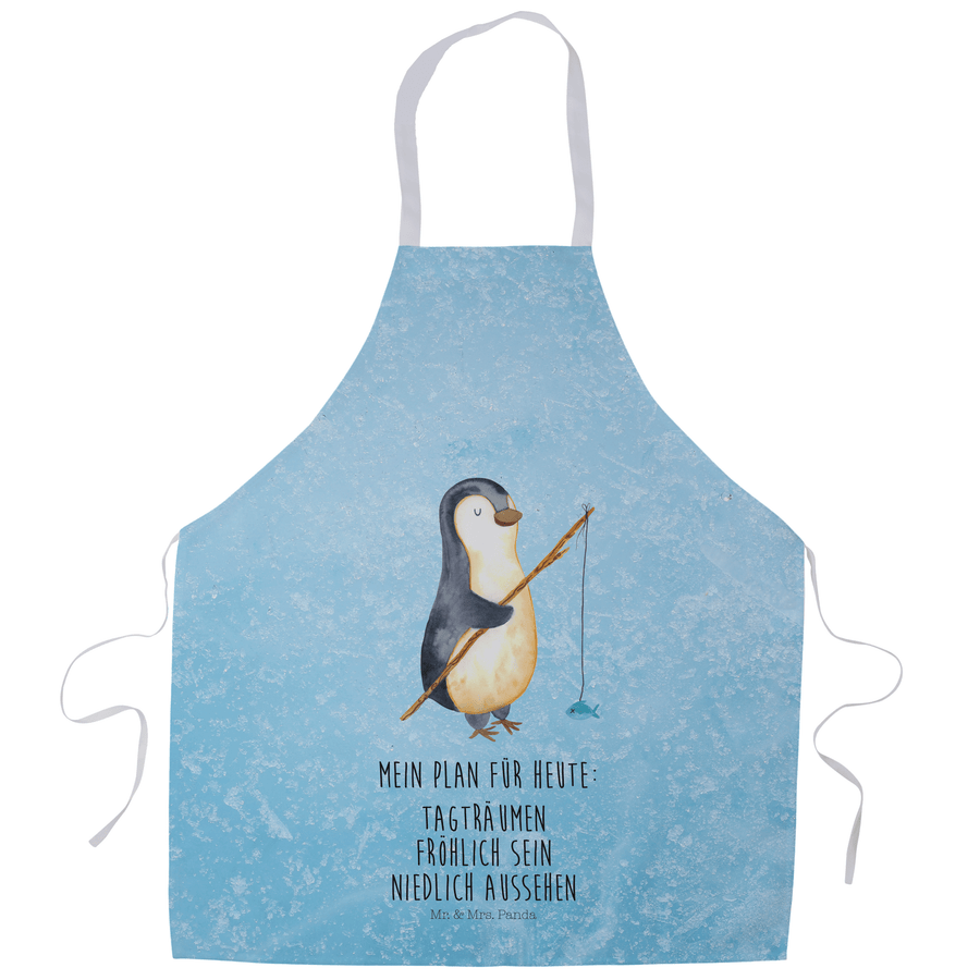 Kochschürze Pinguin Angler - mit Spruch - Eisblau