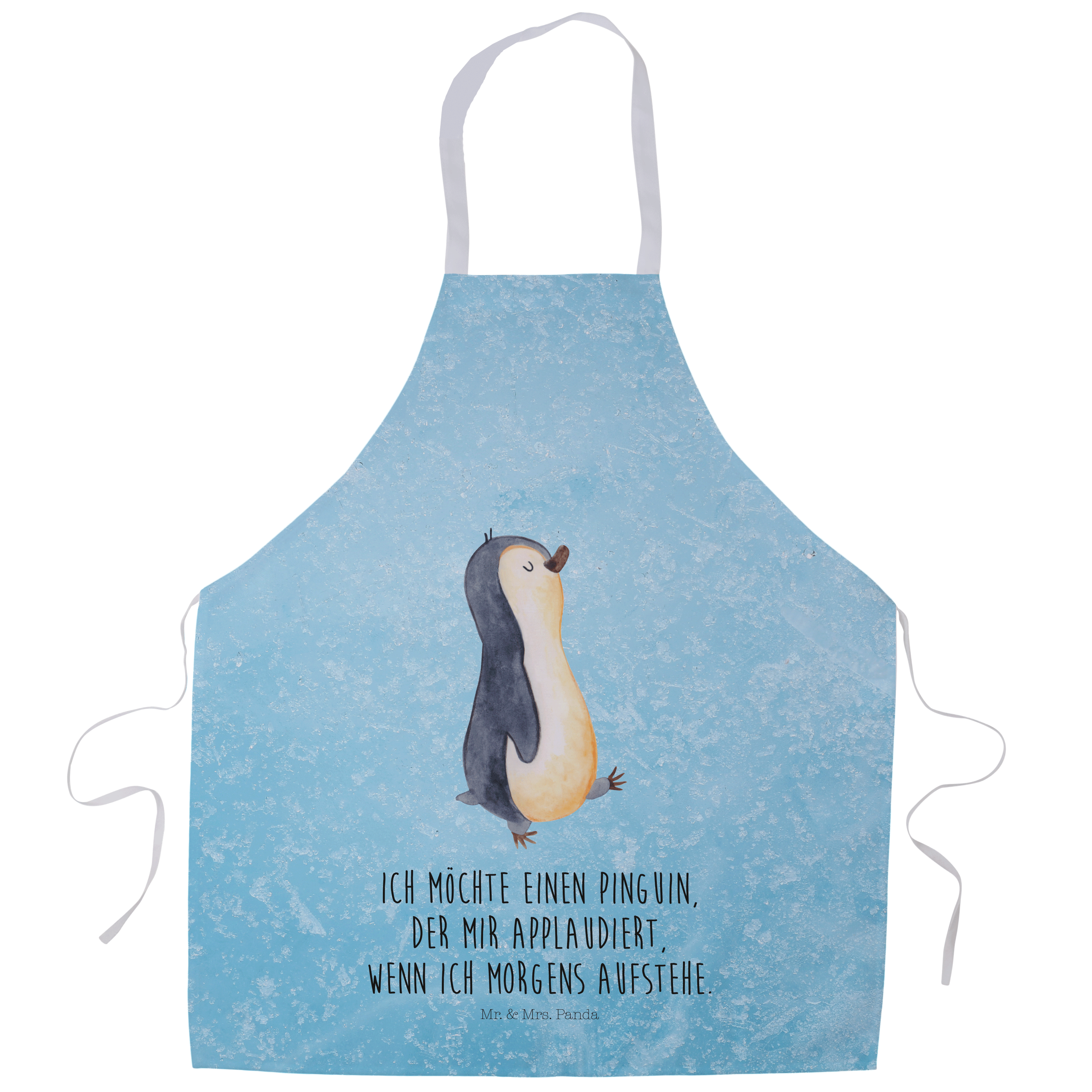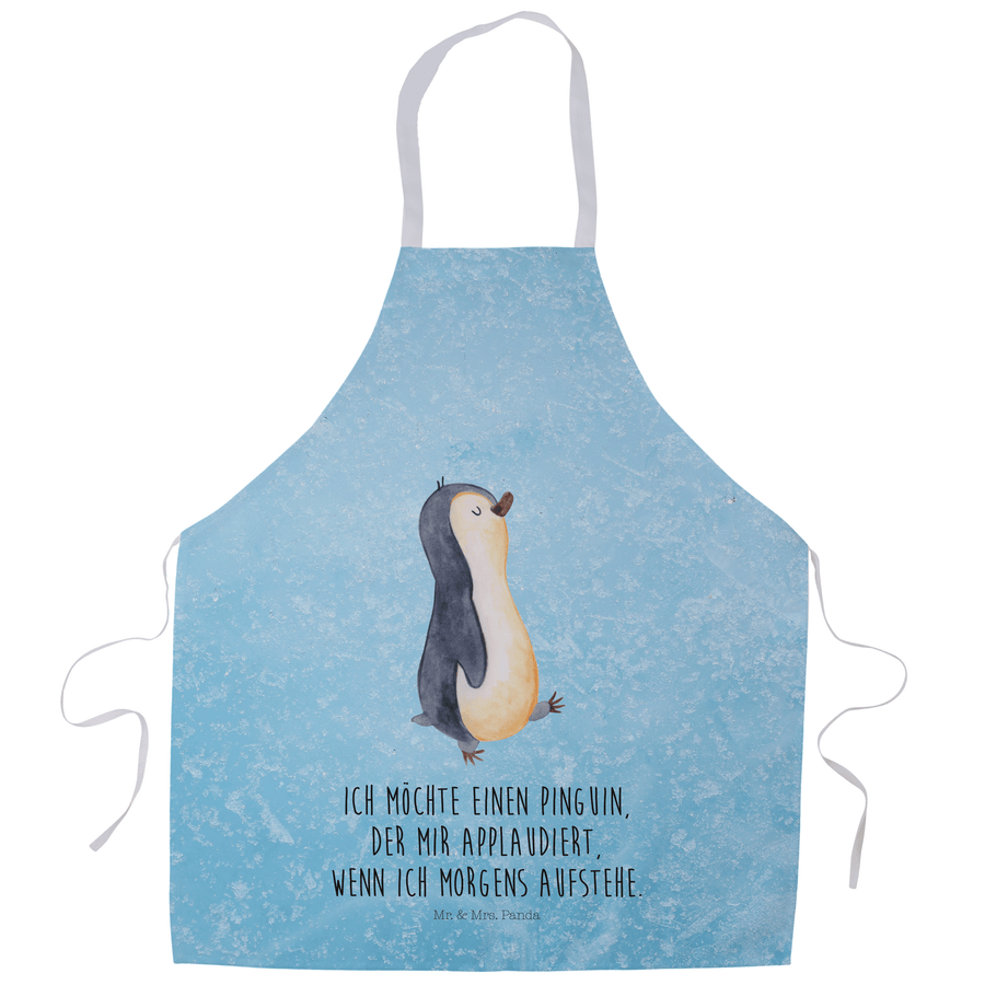Kochschürze Pinguin marschierend - mit Spruch - Eisblau