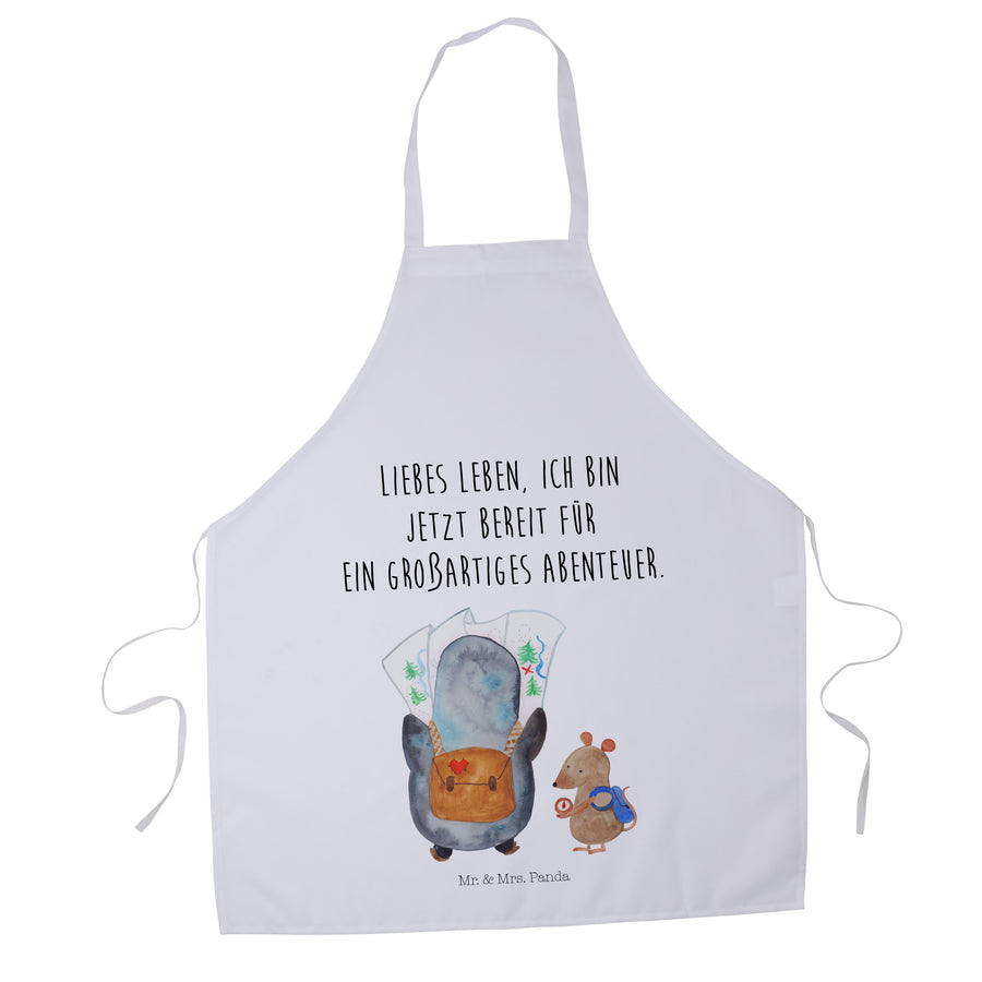 Kochschürze Pinguin & Maus Wanderer - mit Spruch - Weiß