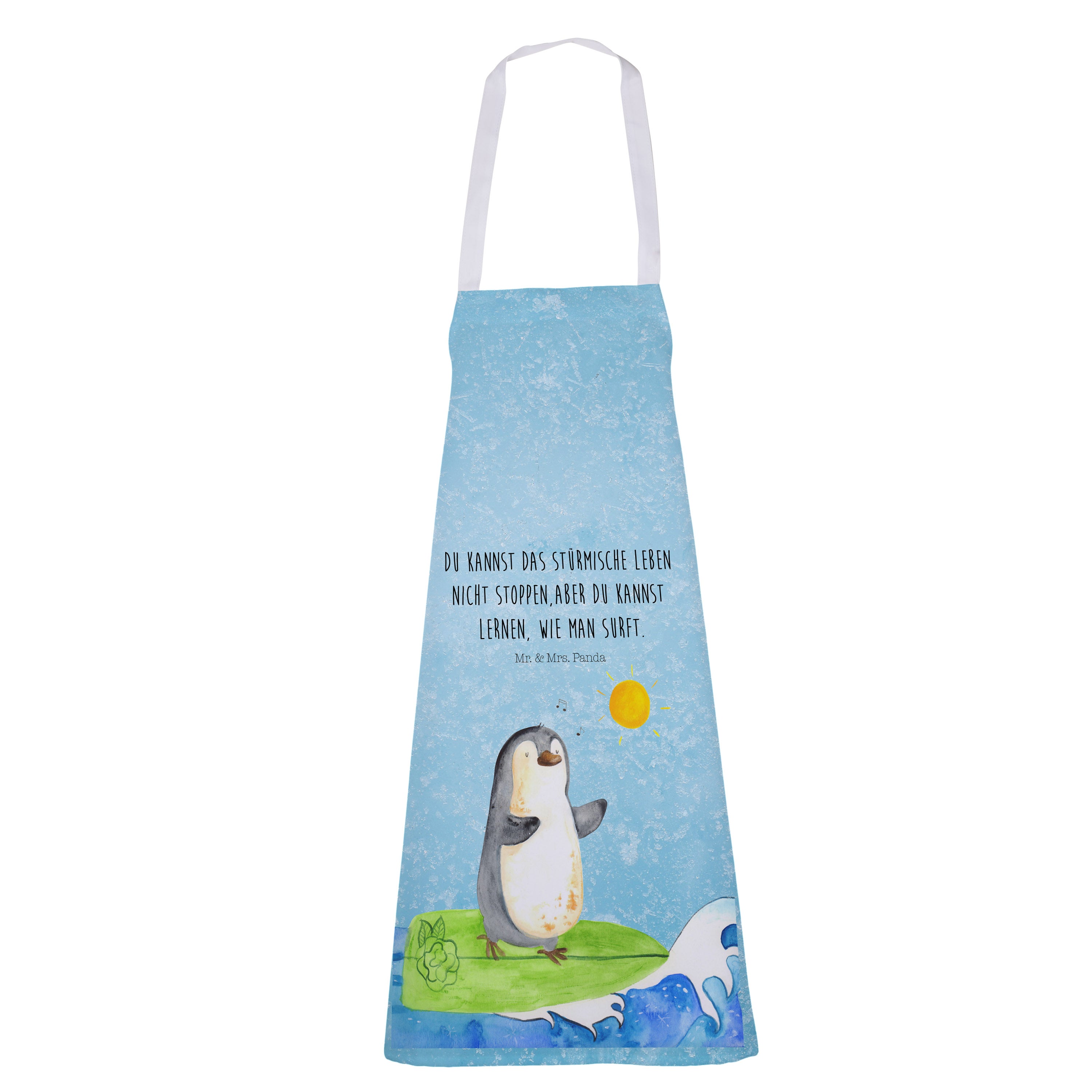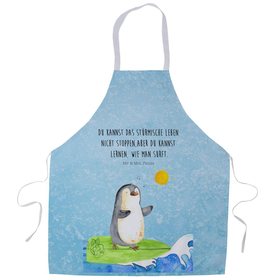 Kochschürze Pinguin Surfer - mit Spruch - Eisblau