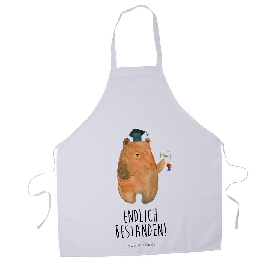 Kochschürze Prüfungsbär - mit Spruch - Weiß