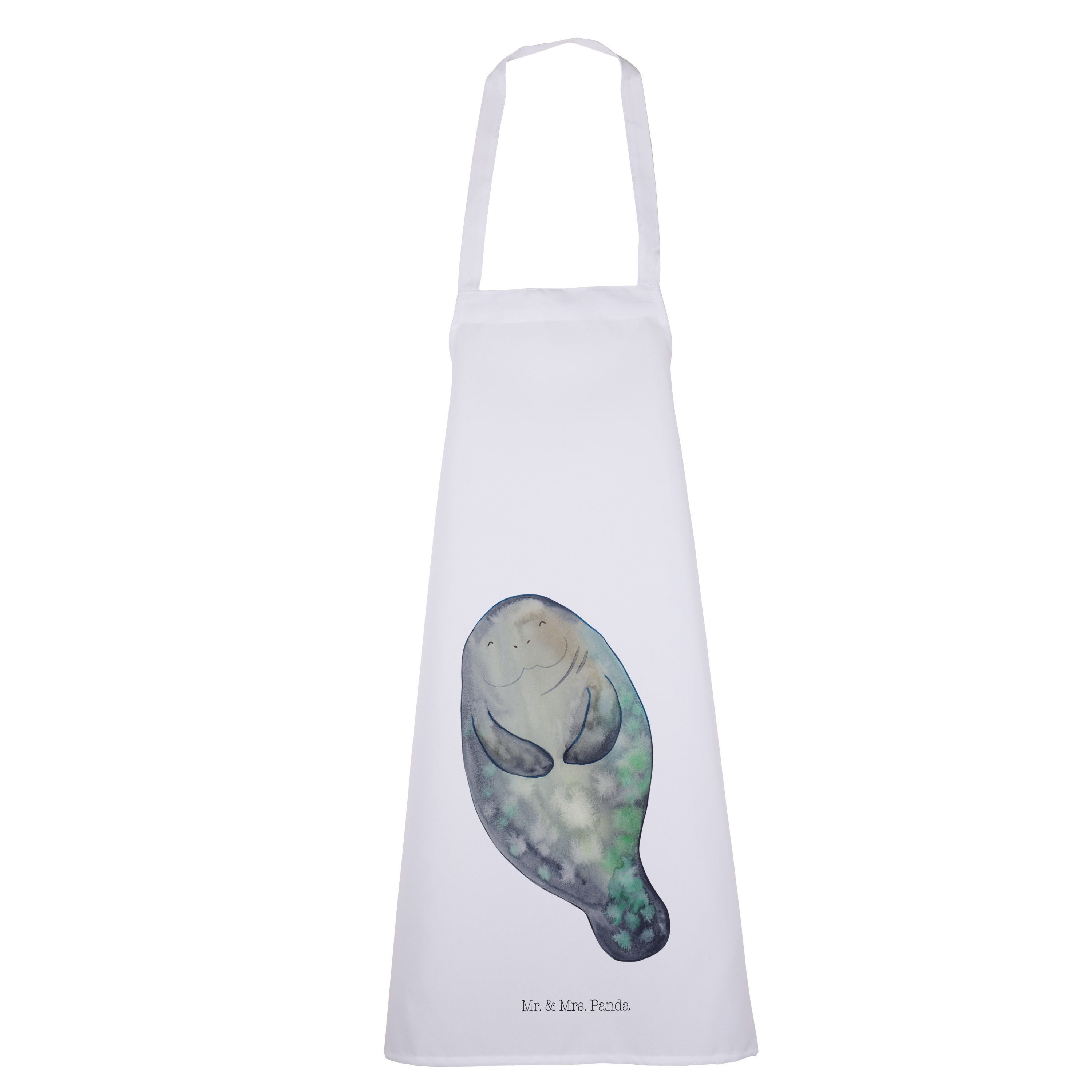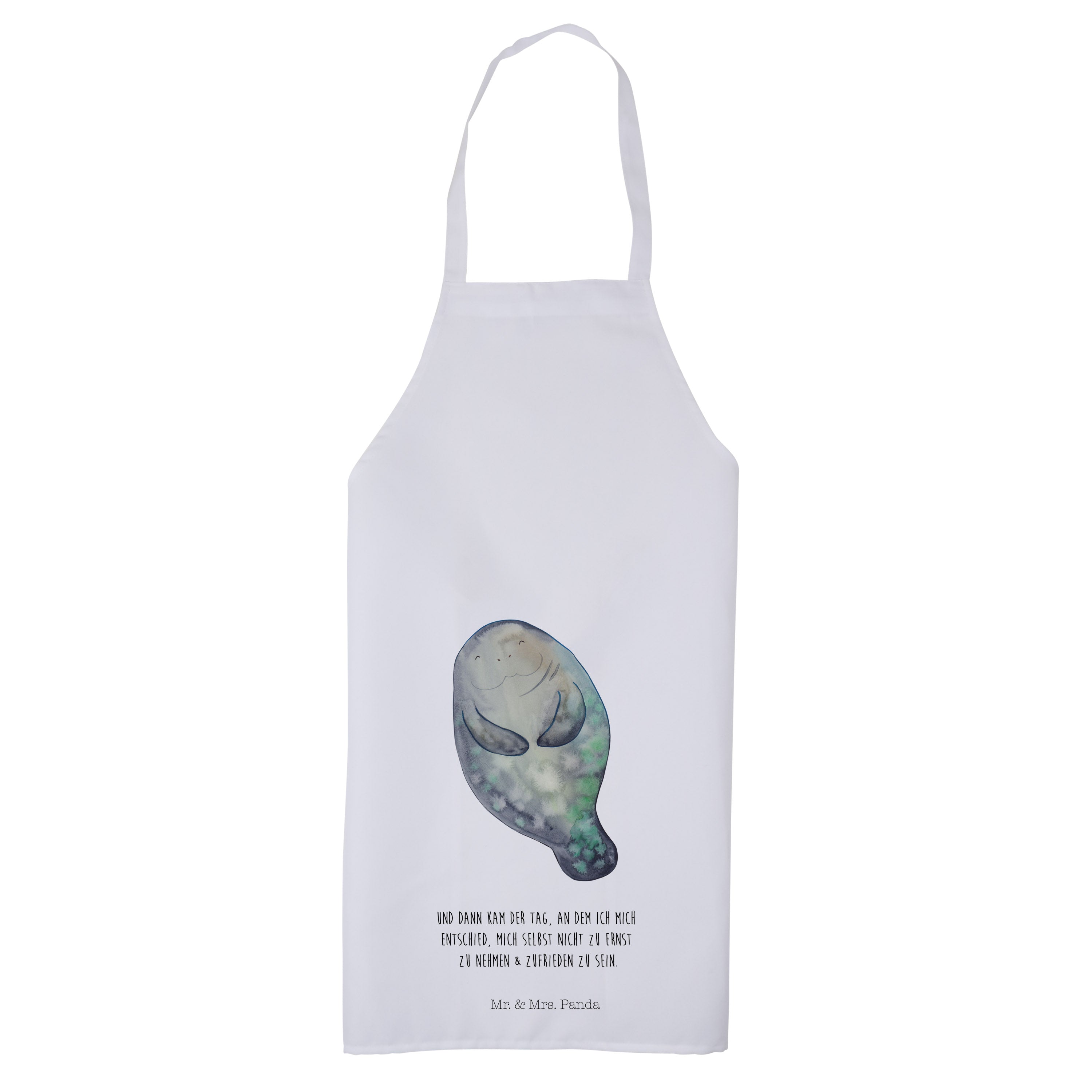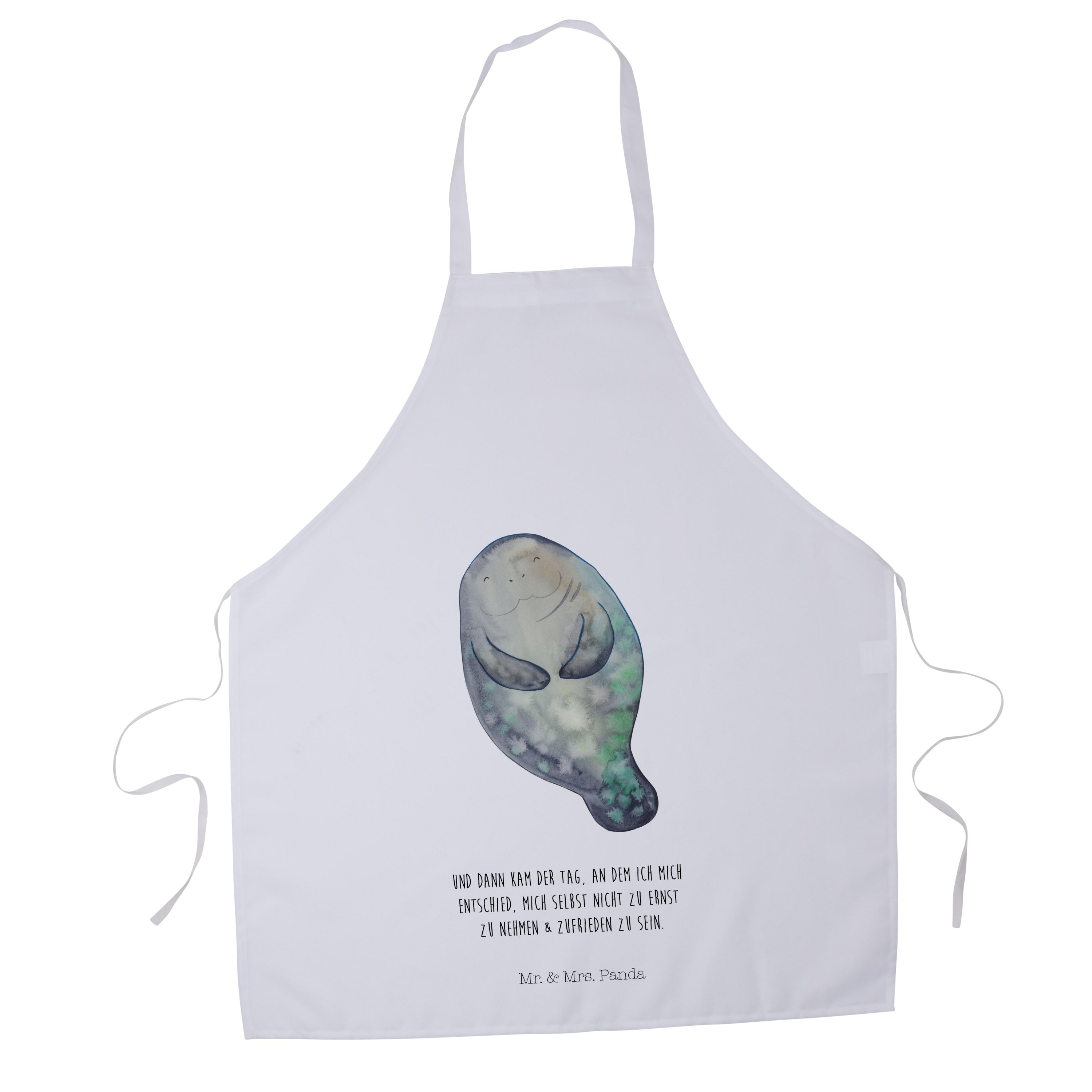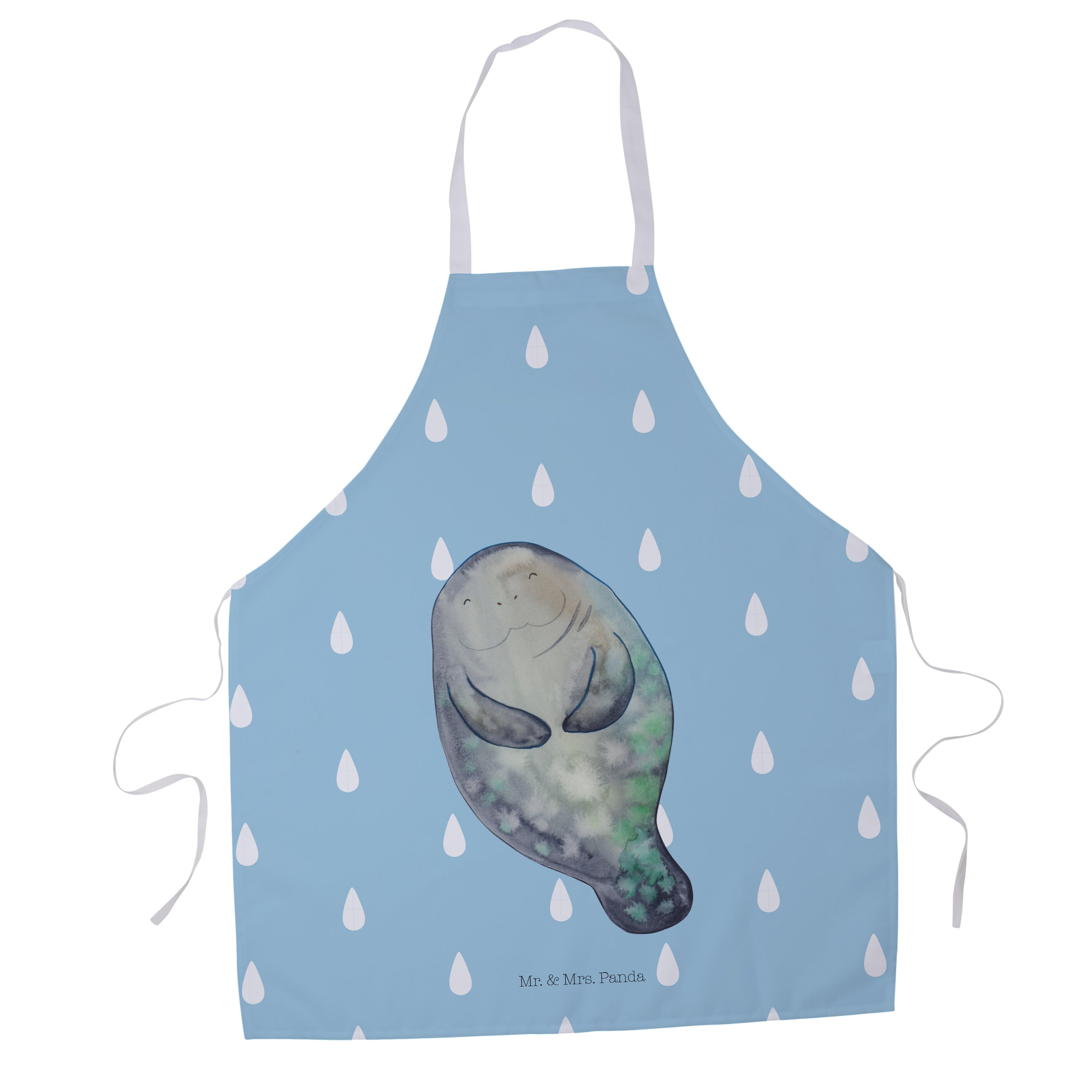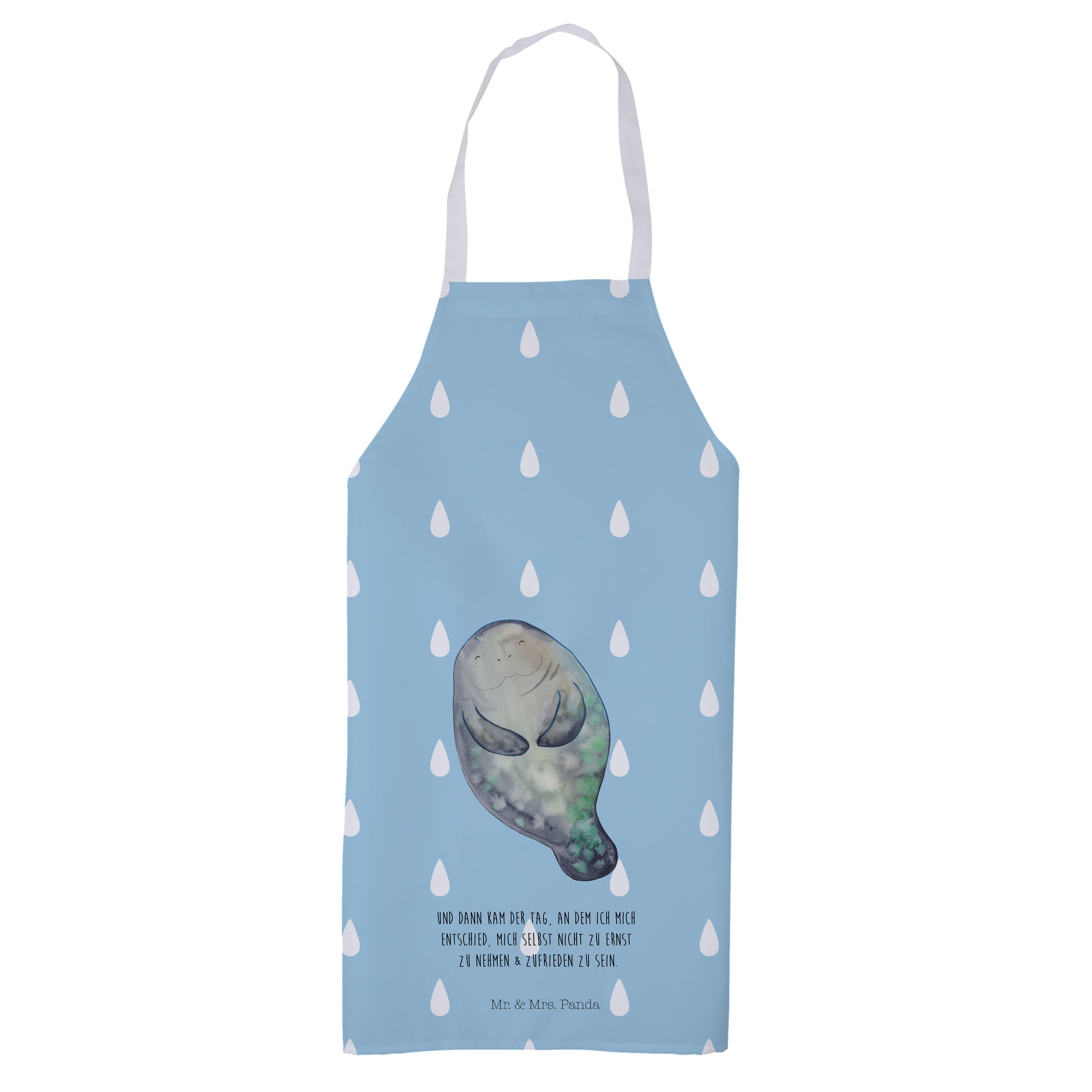 Kochschürze Seekuh happy - mit Spruch - Blau Pastell