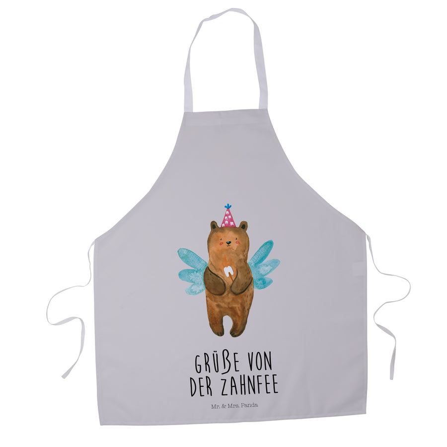 Kochschürze Zahnfee Bär - mit Spruch - Grau Pastell