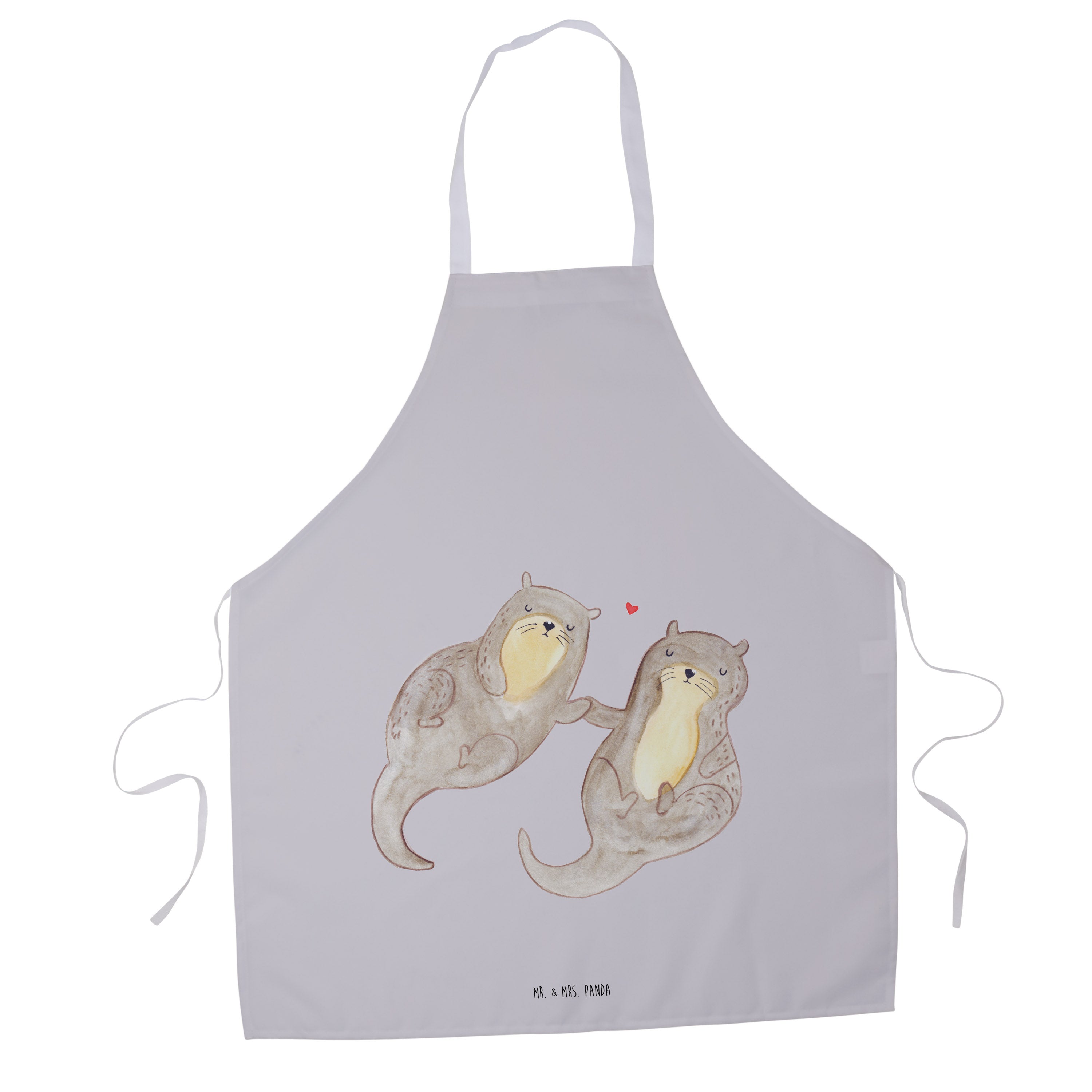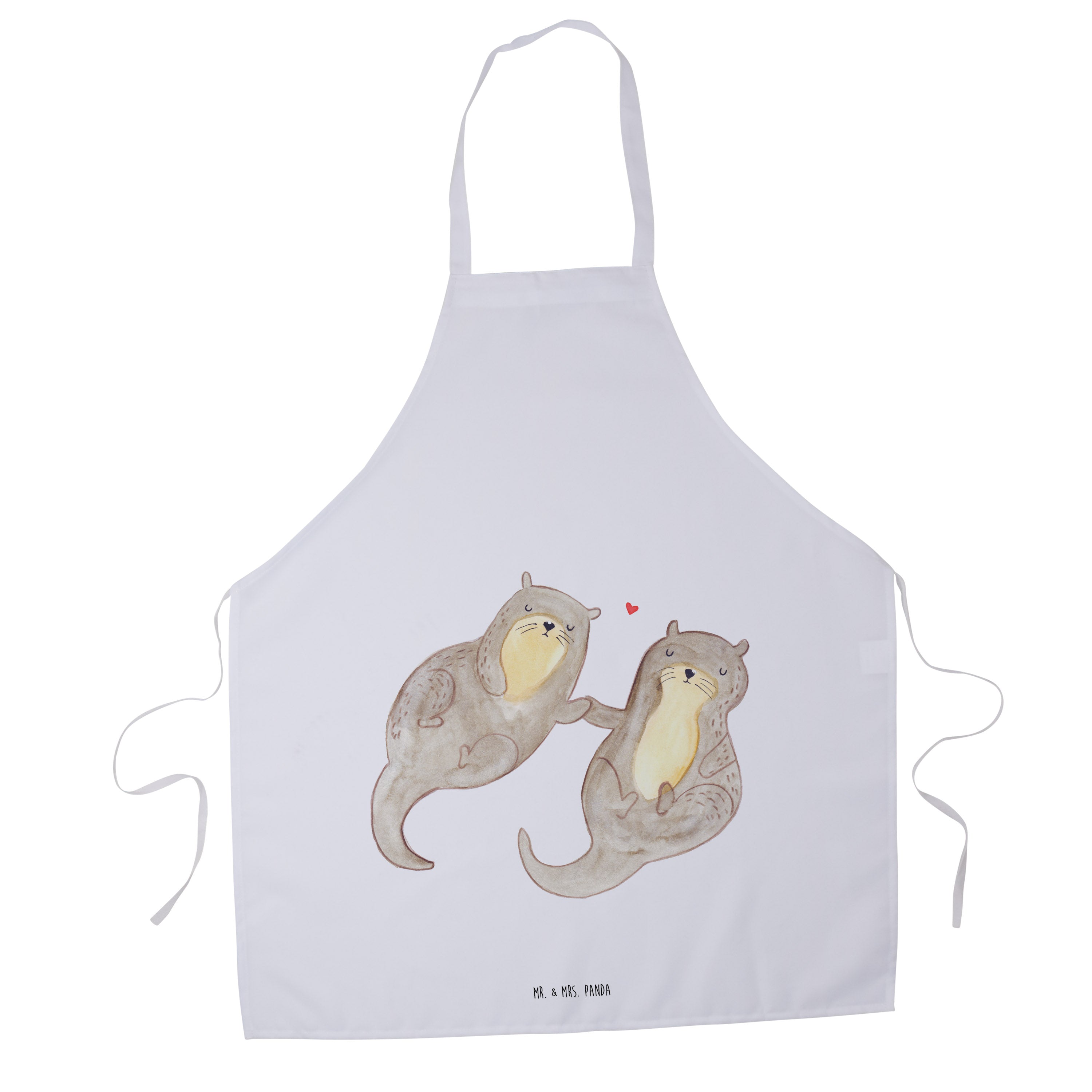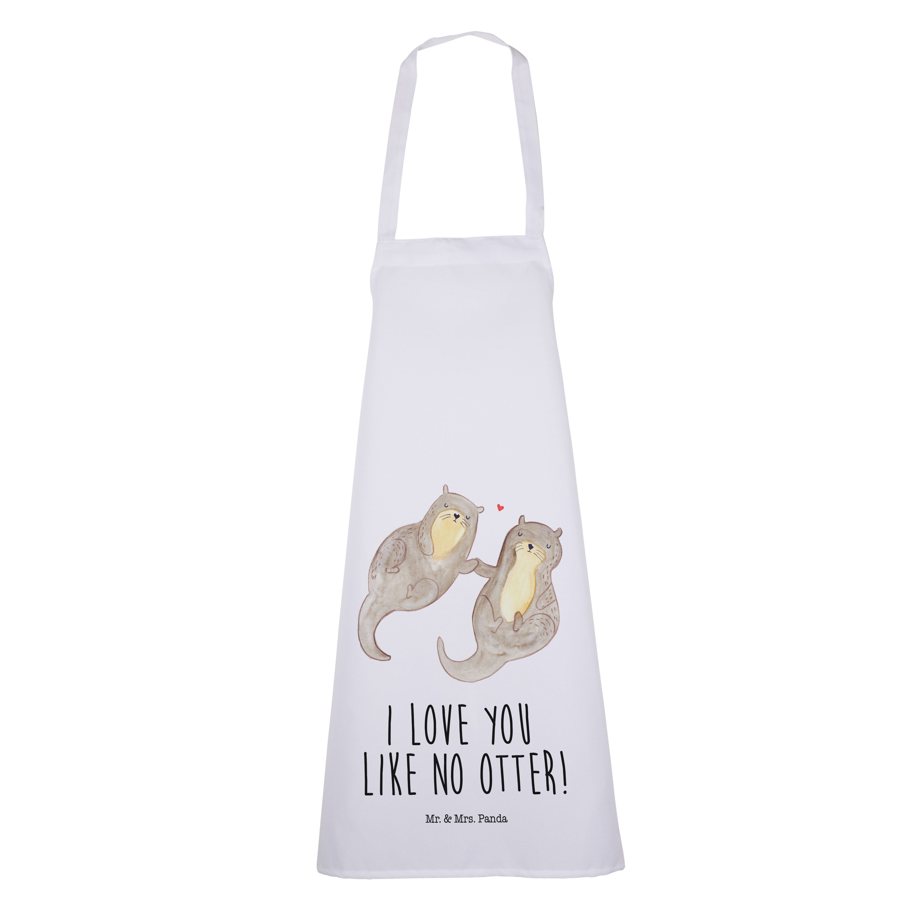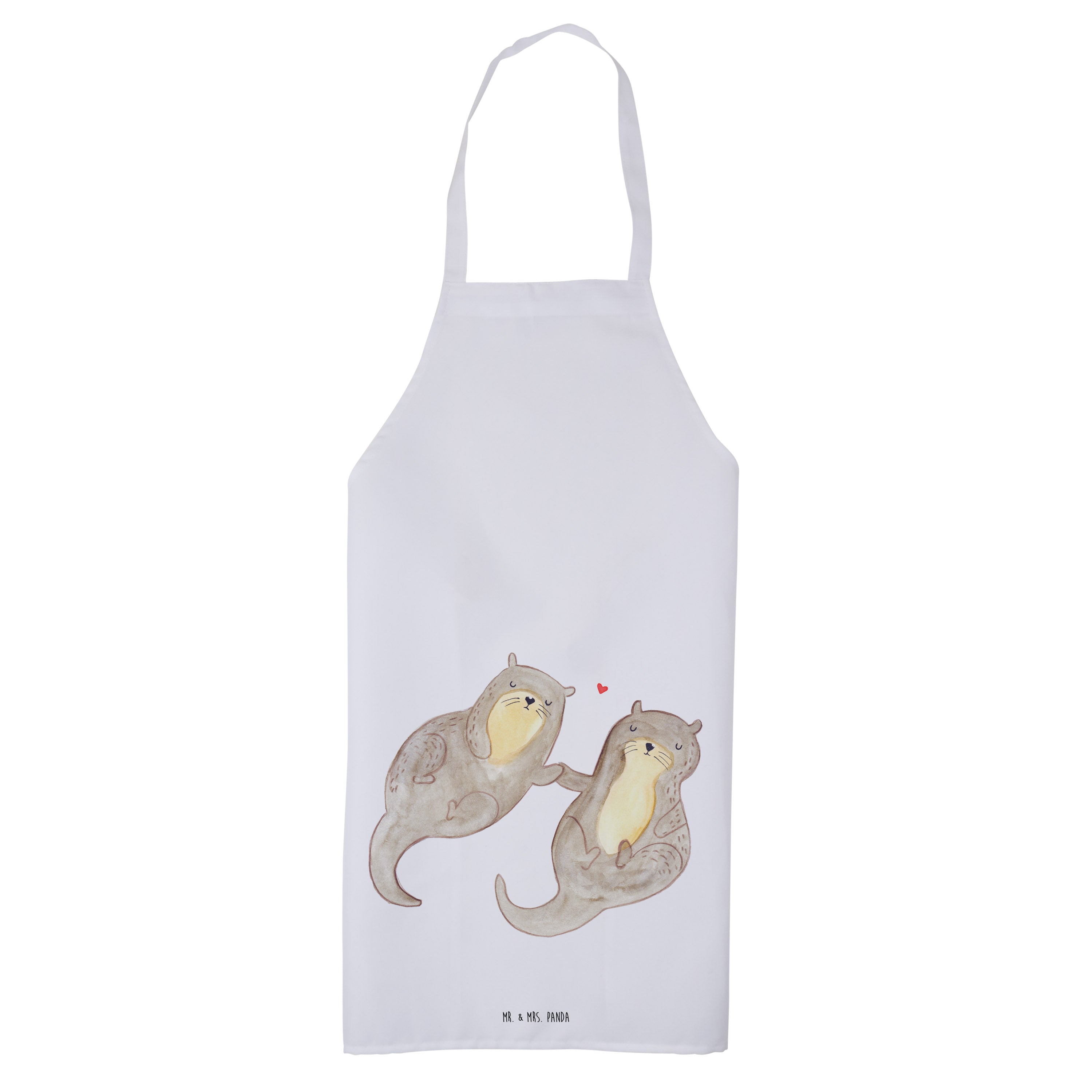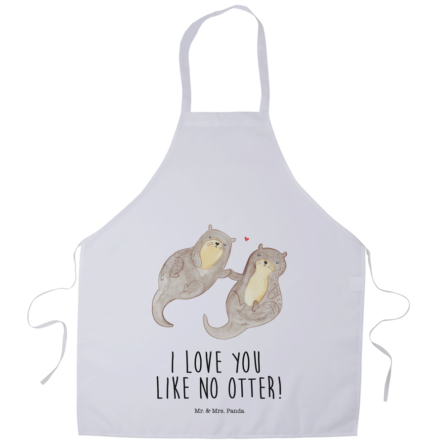 Kochschürze Otter händchenhaltend - mit Spruch - Weiß